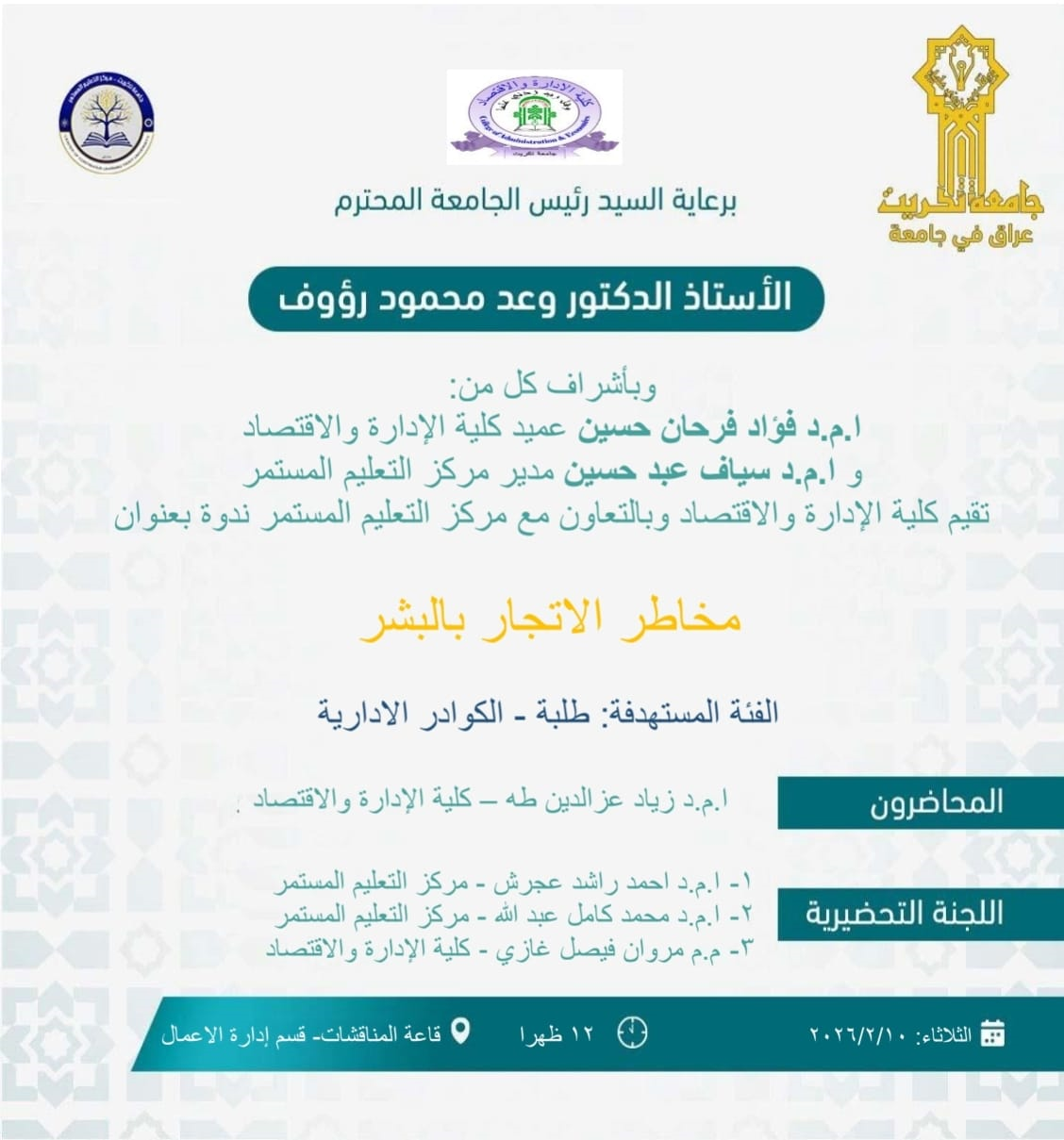 - الإسناد العلمي والإداري لجميع مؤسسات الدولة والقطاع الخاص بالاستفادة من المركز الاستشاري للكلية في المحافظة، مركزين قبول من يرغب بتطوير إمكاناته العلمية بالدراسات المسائية.