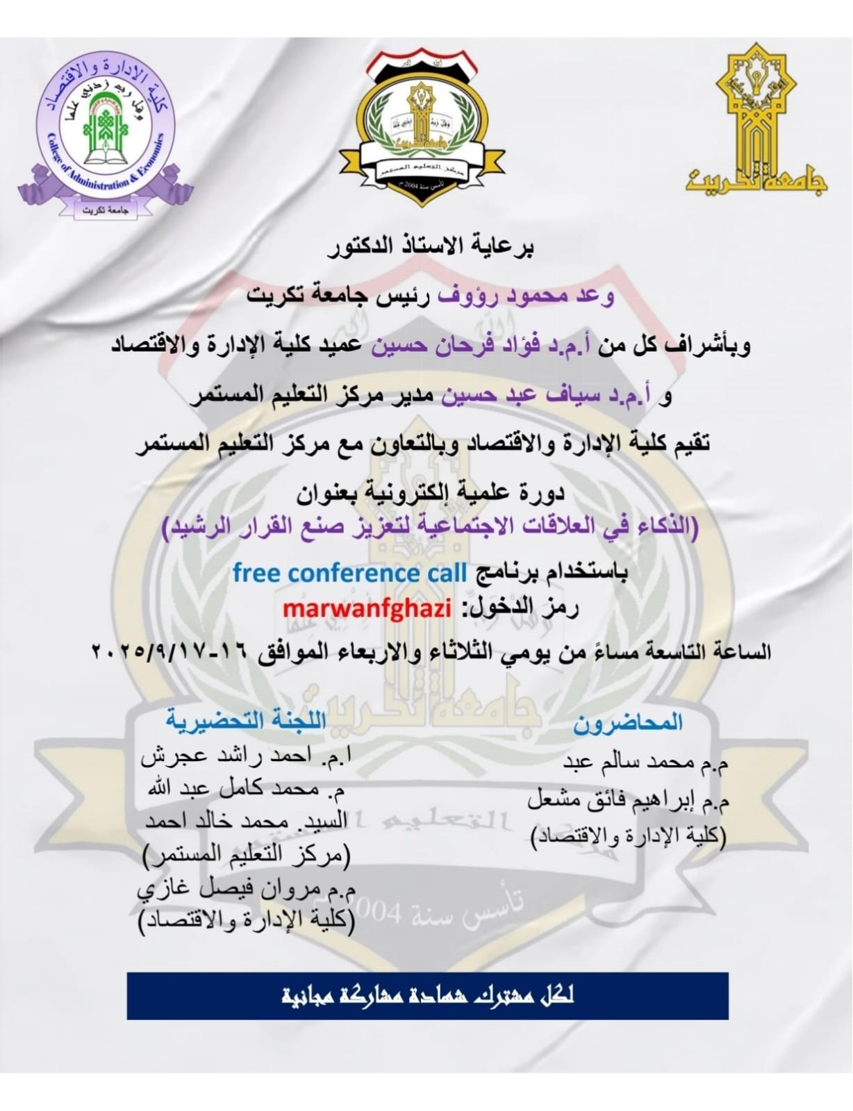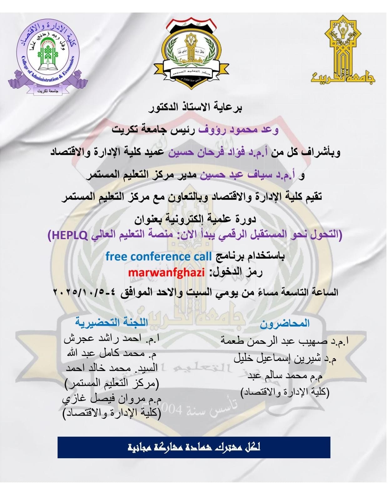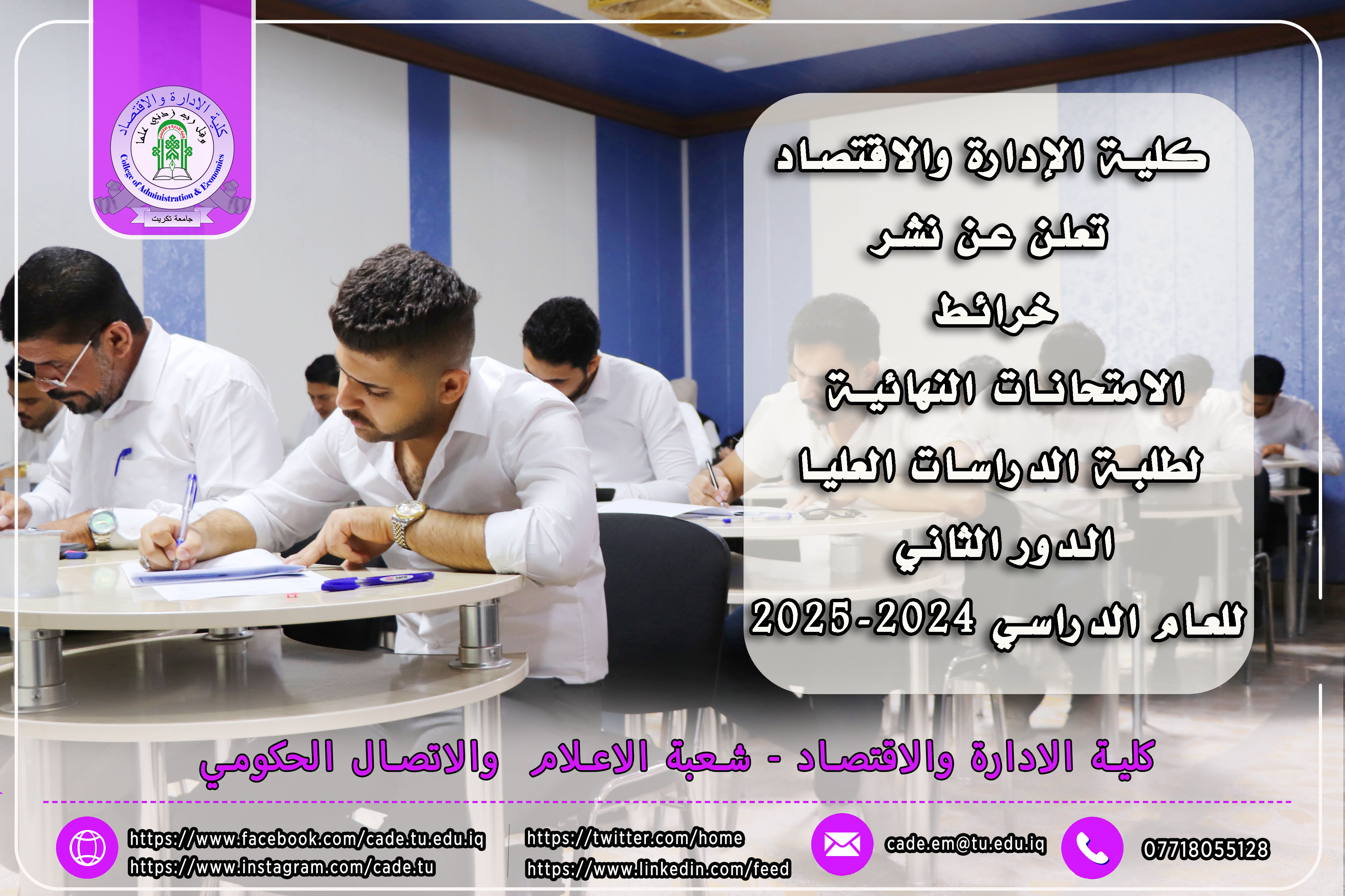 أسست كلية الإدارة والاقتصاد / جامعة تكريت في عام 2000 ، وقد ضمت الكلية في بداية تأسيسها على قسمين علميين فقط هما (قسم إدارة الإعمال , قسم الاقتصاد) وبلغ عدد الطلبة المقبولين في سنة التأسيس (388) طالبا وطالبة، وتضم حالياً ستة اقسام علمية للدراسات الأولية هي (قسم المحاسبة، قسم إدارة الاعمال، قسم الإدارة العامة، قسم المالية والمصرفية، قسم الاقتصاد وقسم إدارة التسويق) وتسعة برامج للدراسات العليا هي (دكتوراه محاسبة، دكتوراه إدارة الاعمال، دكتوراه اقتصاد، ماجستير محاسبة، ماجستير إدارة الاعمال، ماجستير مالية ومصرفية، ماجستير اقتصاد، دبلوم عالي في التخطيط الاستراتيجي معادل للماجستير/ امدة سنتان، دبلوم عالي في التخطيط الاستراتيجي/ سنة واحدة).s