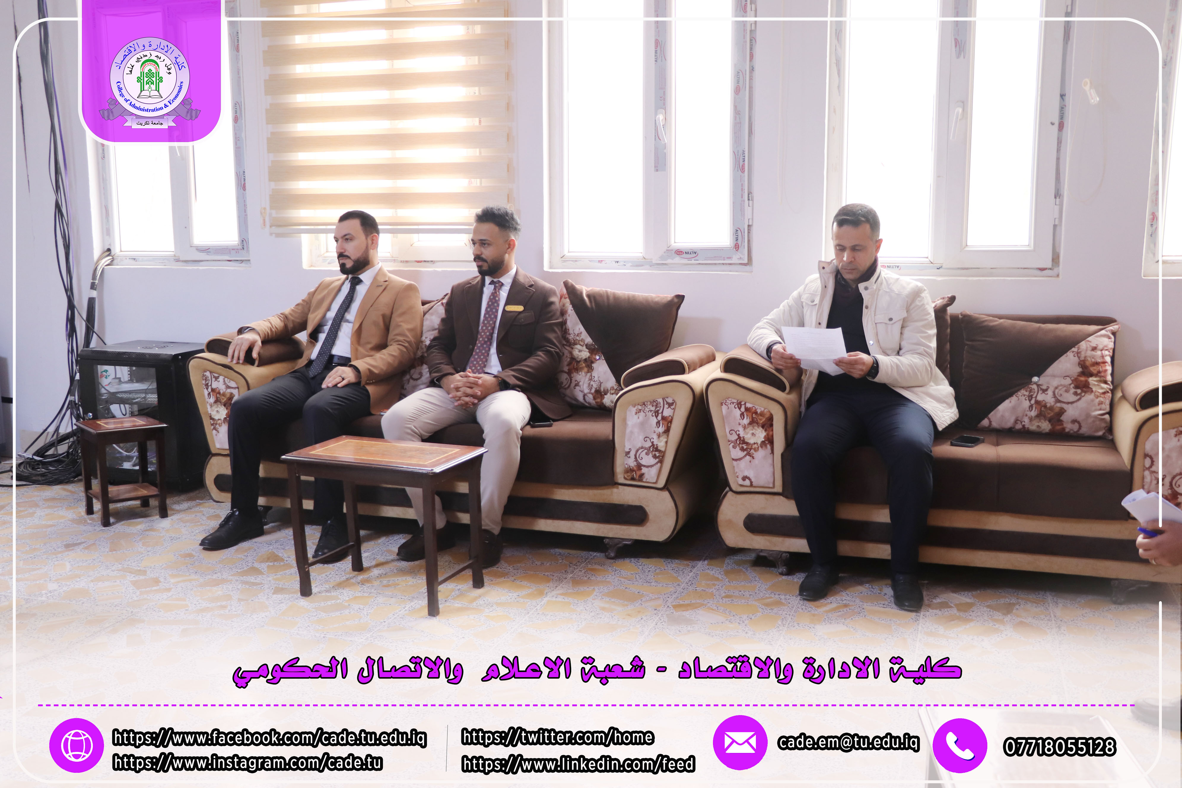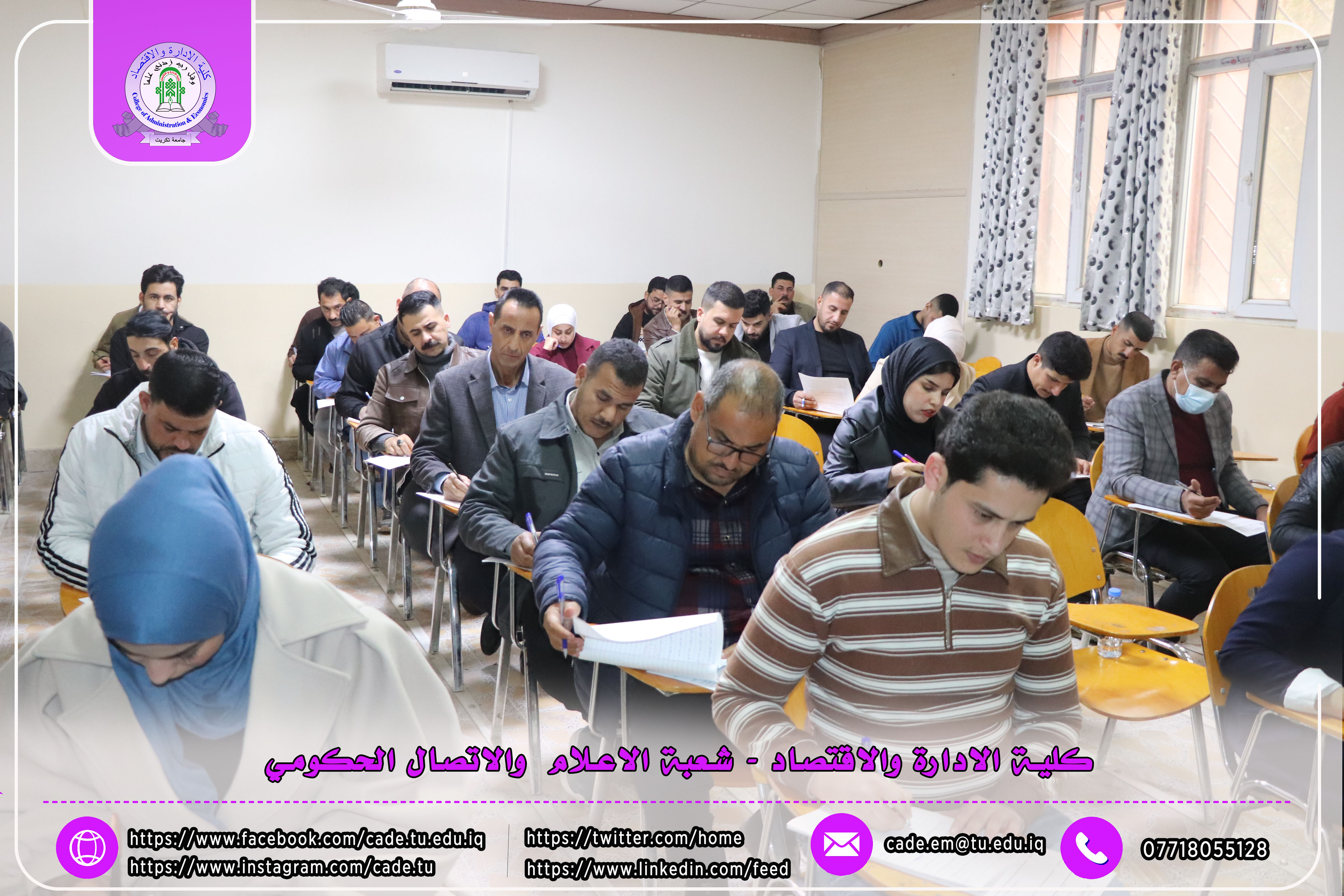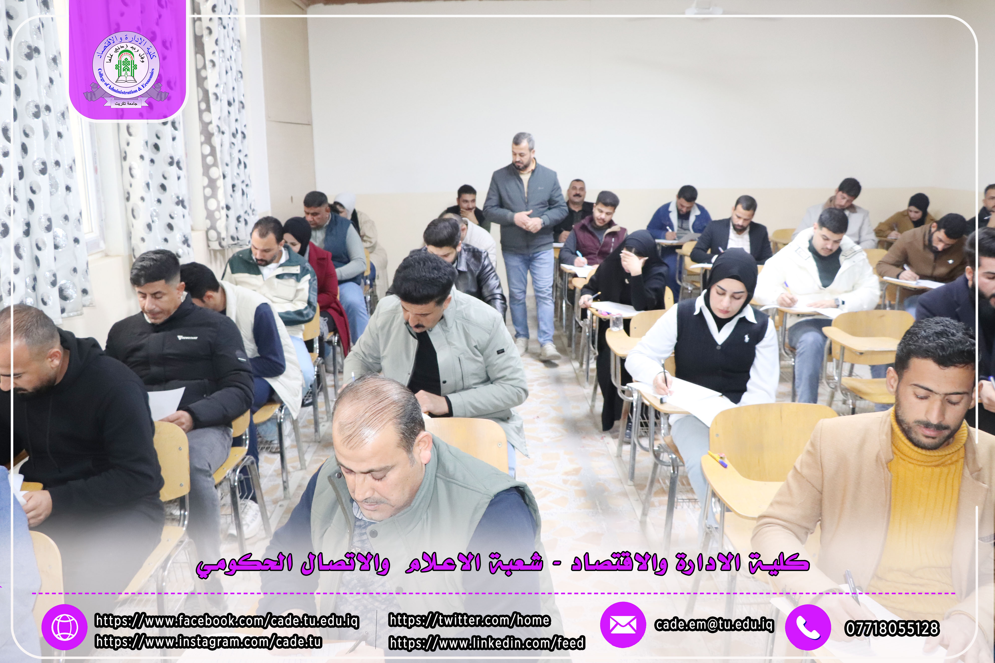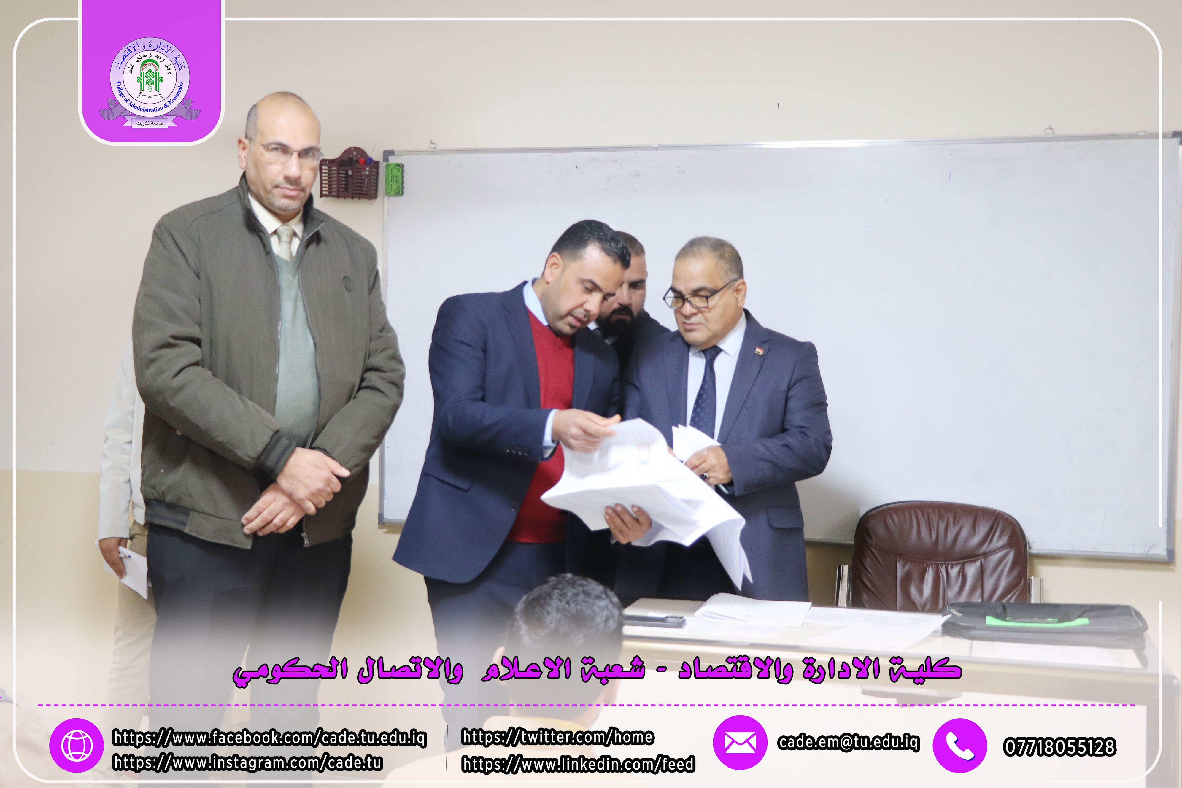 ضمن سلسلة الزيارات والجولات التفقدية التي تجريها رئاسة جامعة تكريت لمتابعة سير الامتحانات النهائية في كليات الجامعة، زار الأستاذ الدكتور حسن حسين إبراهيم، مساعد رئيس الجامعة للشؤون العلمية، كلية الإدارة والاقتصاد، وذلك يوم الأحد الموافق 2026/1/18.