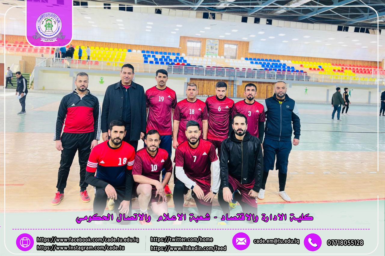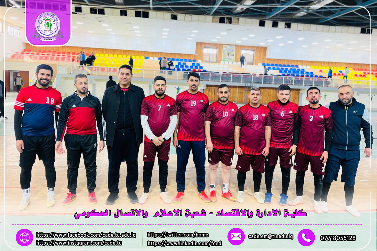 ضمن فعاليات بطولة كأس السيد رئيس جامعة تكريت لكرة قدم الصالات للتدريسيين، التي تنظمها شعبة النشاطات الطلابية في كلية التربية البدنية وعلوم الرياضة، للعام الدراسي 2025/2026 وعلى القاعات التدريبية في الكلية، واصل فريق تدريسيي كلية الإدارة والاقتصاد عروضه المميزة محققًا فوزًا جديدًا ومستحقًا.