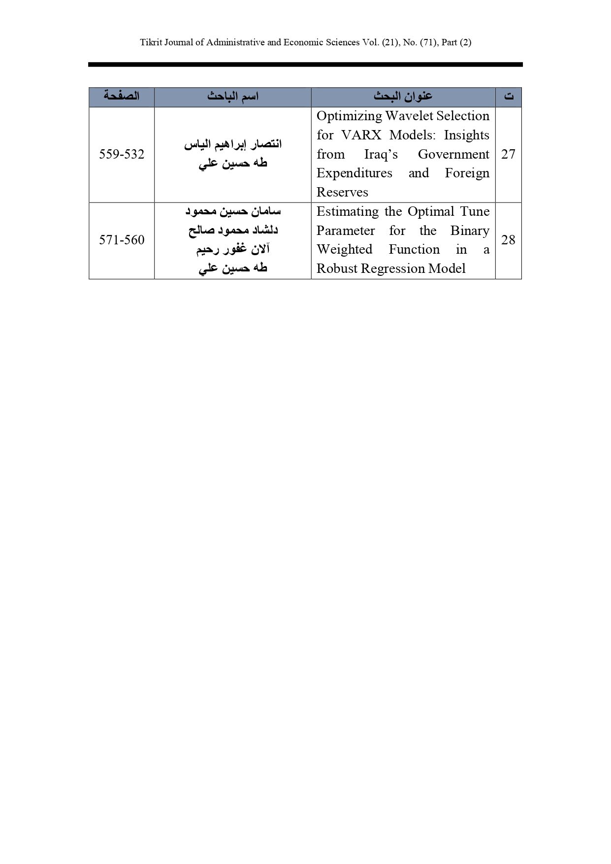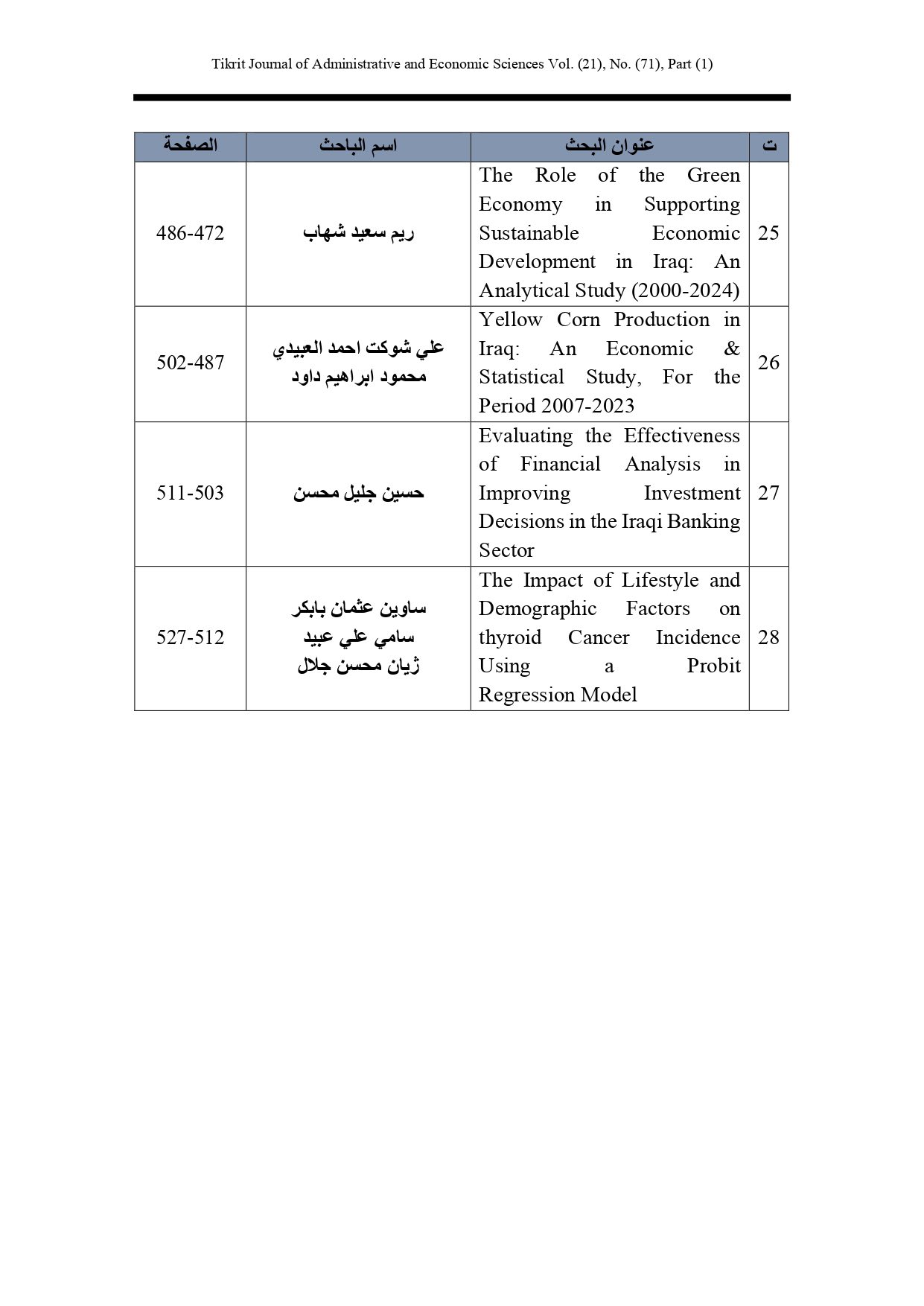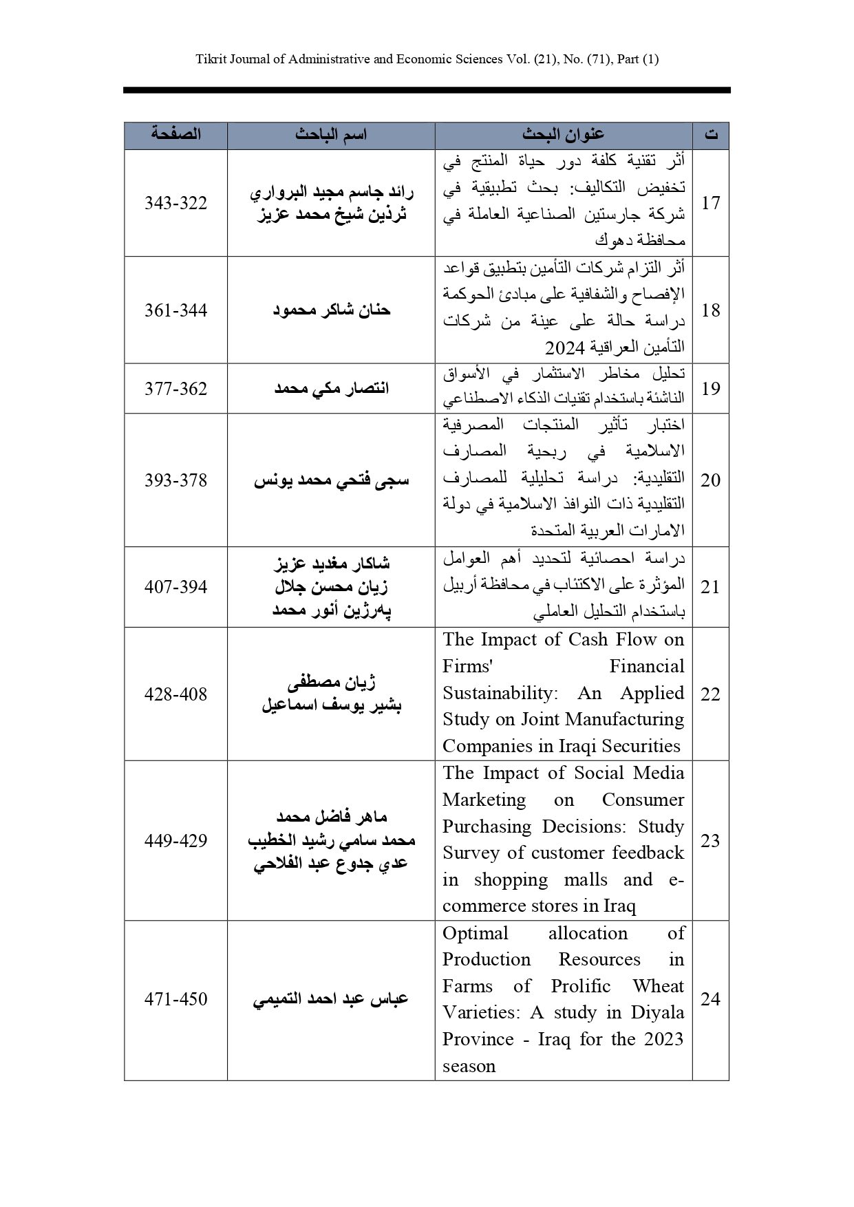 يسر عمادة الإدارة والاقتصاد / هيئة تحرير مجلة تكريت للعلوم الإدارية والاقتصادية أن تعلن عن صدور العدد (71) من المجلة، بجزئيه الأول والثاني.