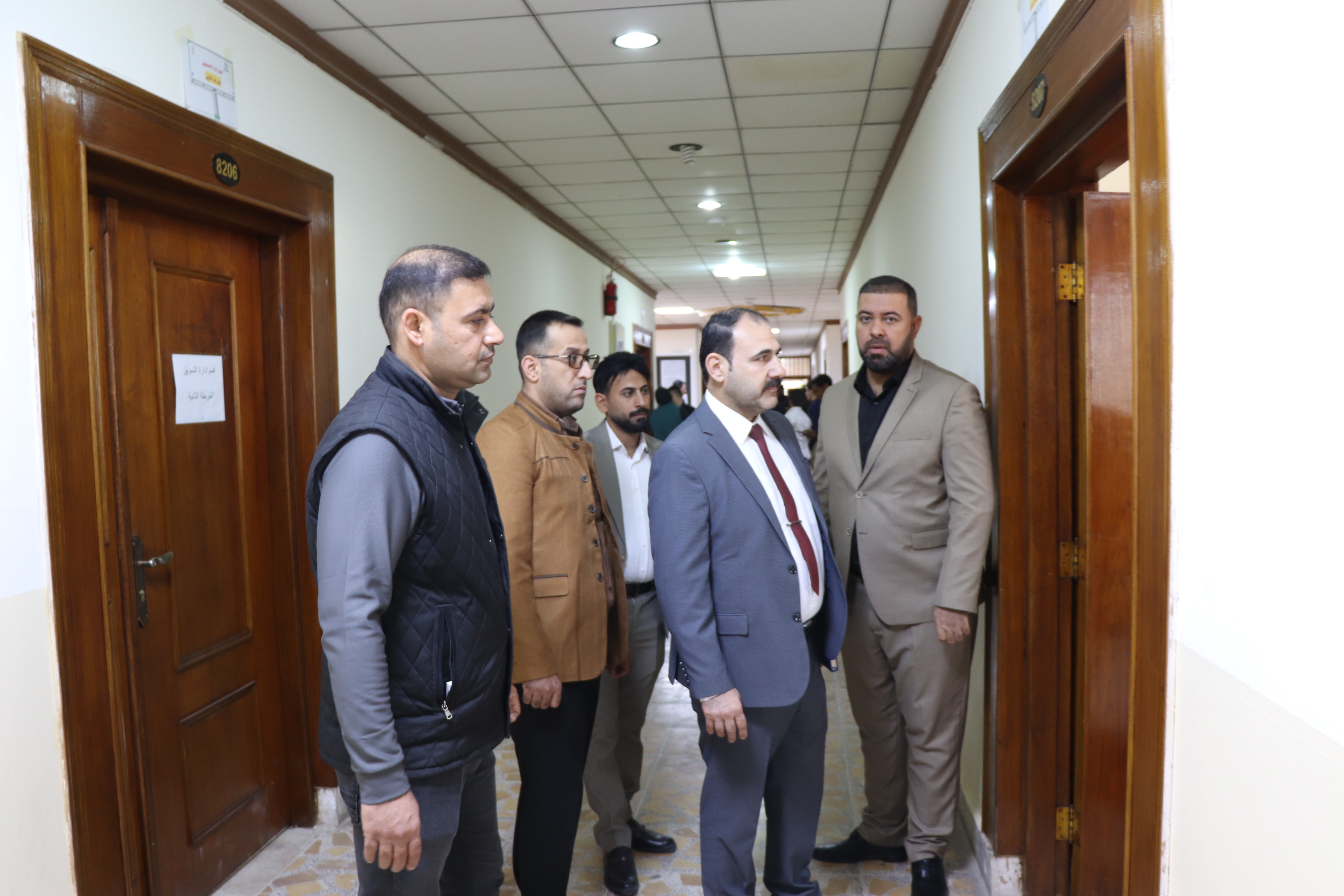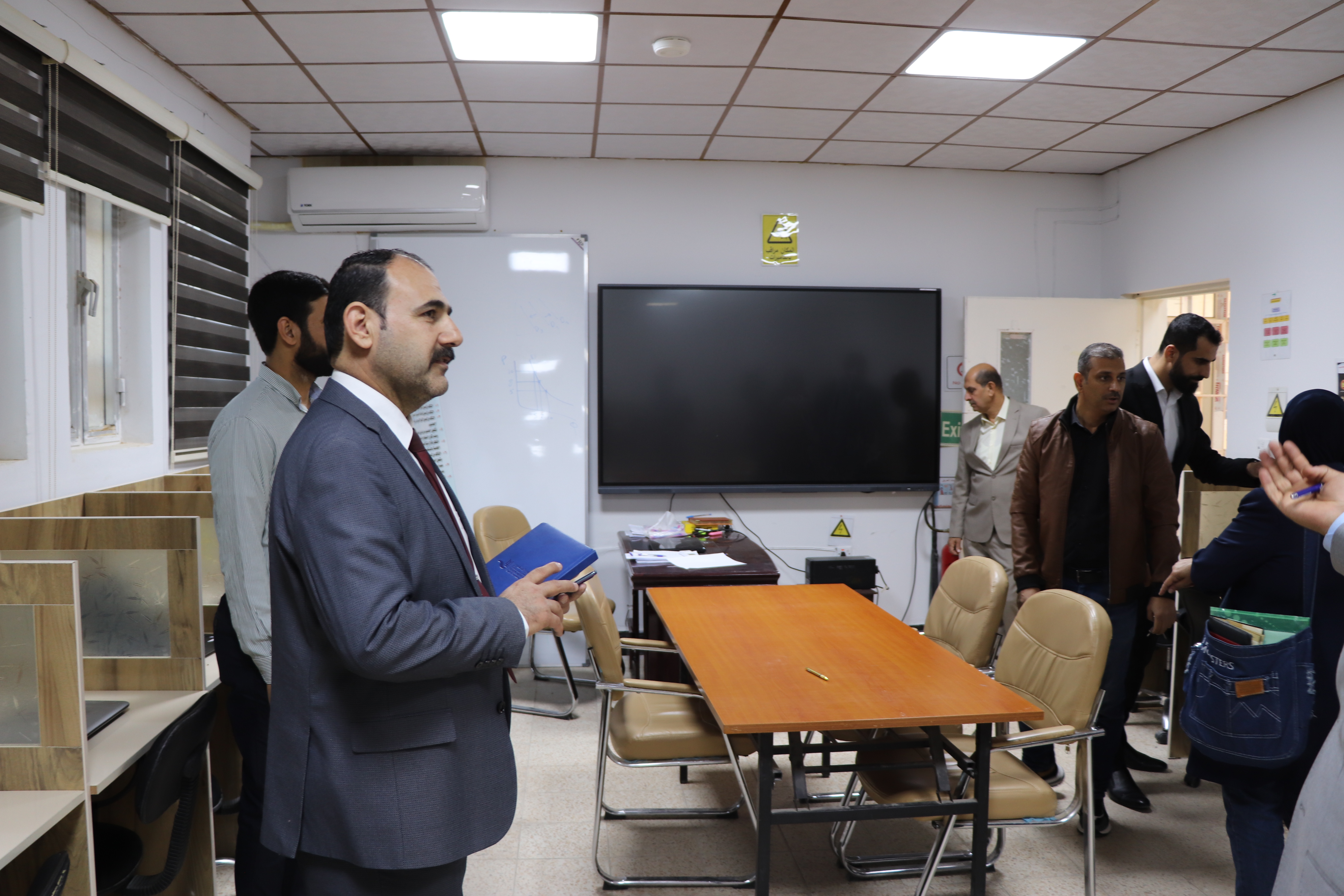 ترأس اللجنة الوزارية م.م. أحمد محمد سليم، ورافقه أربعة من أعضاء اللجنة الذين باشروا بجولة ميدانية داخل الكلية شملت الأقسام العلمية والقاعات الدراسية واللجان الامتحانية والمكاتب الإدارية التابعة لكل قسم، بالإضافة إلى الاطلاع على الواقع الفني والإداري والأكاديمي في الأقسام المستحدثة لضمان تحقيق معايير الاستحداث المعتمدة.