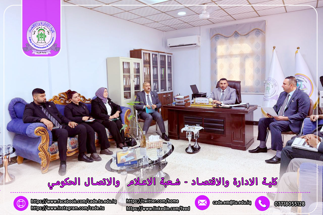 "الاتجاهات الحديثة في الرقمنة الإدارية والمالية وفق منظور الشمول المالي للبنك المركزي العراقي"، والمزمع إقامته للمدة 17–18 /12 /2025، وبالتعاون مع البنك المركزي العراقي، إضافة إلى تقريب وجهات النظر بشأن الأنشطة والفعاليات المزمع تنفيذها خلال أيام المؤتمر.