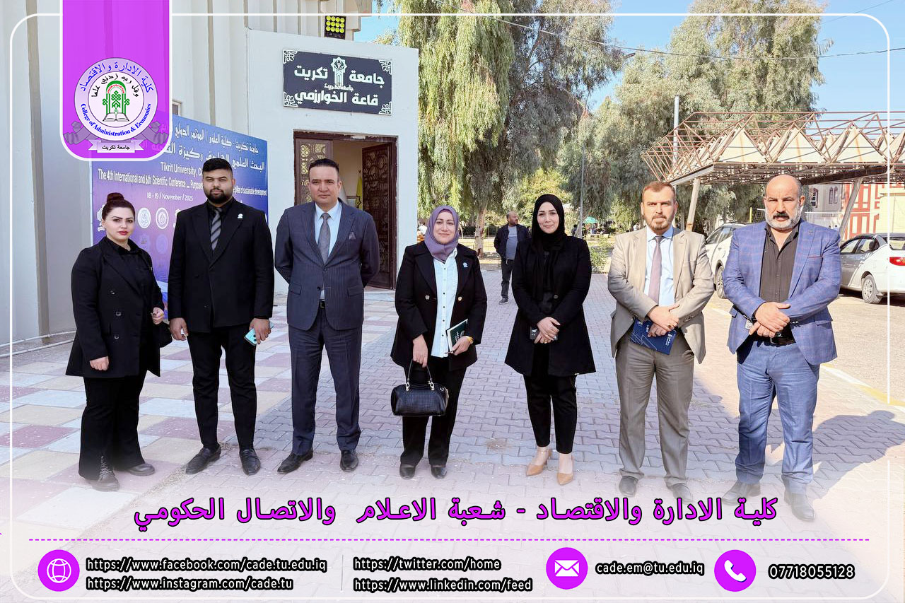 في إطار تعزيز أواصر التعاون العلمي والمؤسسي بين جامعة تكريت والمؤسسات المالية الوطنية، واستعداداً لانطلاق مؤتمرها العلمي الدولي السابع، استقبلت كلية الإدارة والاقتصاد وفداً من البنك المركزي العراقي – فرع الموصل، وذلك يوم الخميس الموافق 2025/11/27.