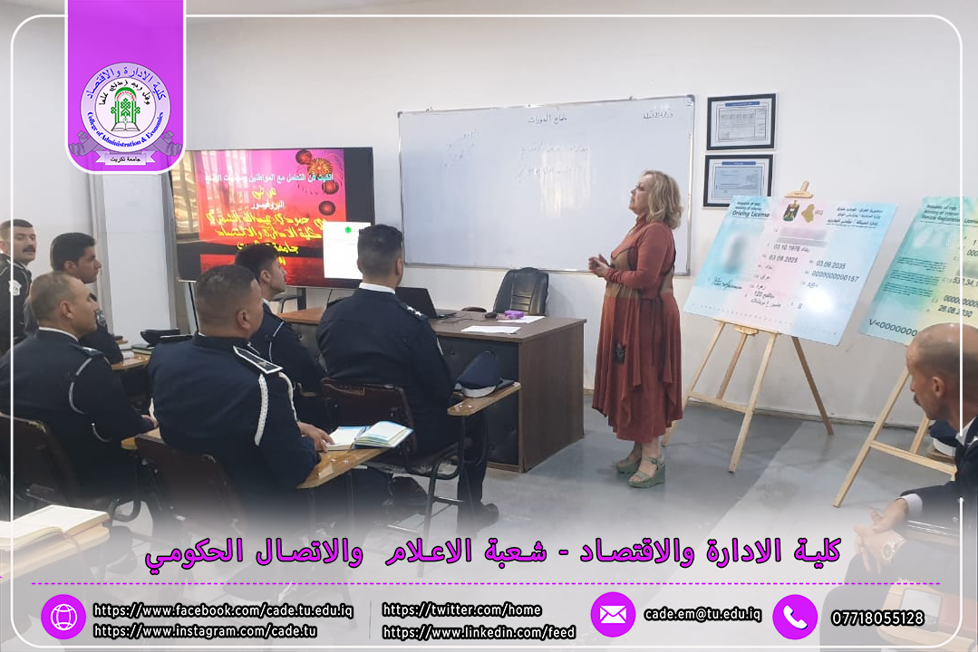 في إطار استمرارية التعاون العلمي والتدريبي بين جامعة تكريت ومؤسسات الدولة، وحرص الجامعة على دعم البرامج التطويرية لموظفي القطاع العام، قدّمت الأستاذة مي حمودي عبد الله التدريسية في كلية الإدارة والاقتصاد – جامعة تكريت، محاضرة ثانية ضمن برنامج التدريب المقام في وزارة الداخلية / معهد المرور العام، وذلك يوم الأحد الموافق 7/12/2025.