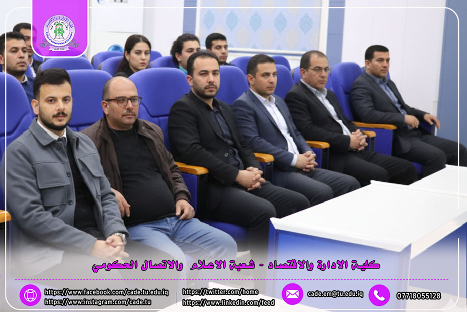 برعاية الأستاذ الدكتور وعد محمود رؤوف، رئيس جامعة تكريت، وبإشراف الأستاذ المساعد الدكتور فؤاد فرحان حسين، عميد كلية الإدارة والاقتصاد، نظمت وحدة التأهيل والتوظيف والمتابعة في الكلية دورة علمية حضورية بعنوان "التدقيق الداخلي لمختبرات الحاسوب وضمان جودة الأنظمة التقنية"، وذلك يوم الخميس الموافق 20 / 3 / 2025، على قاعة الدكتور محمد بدع.