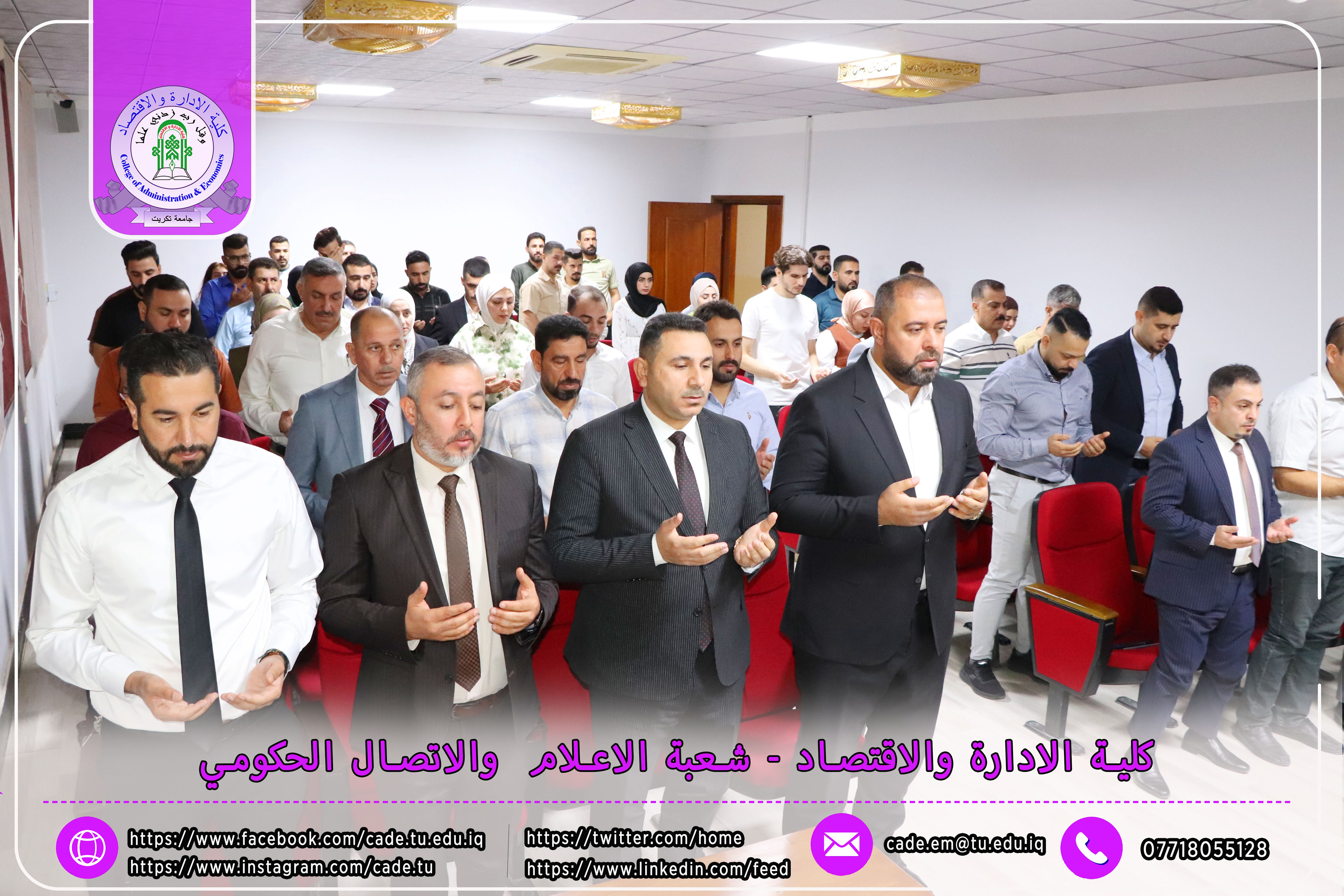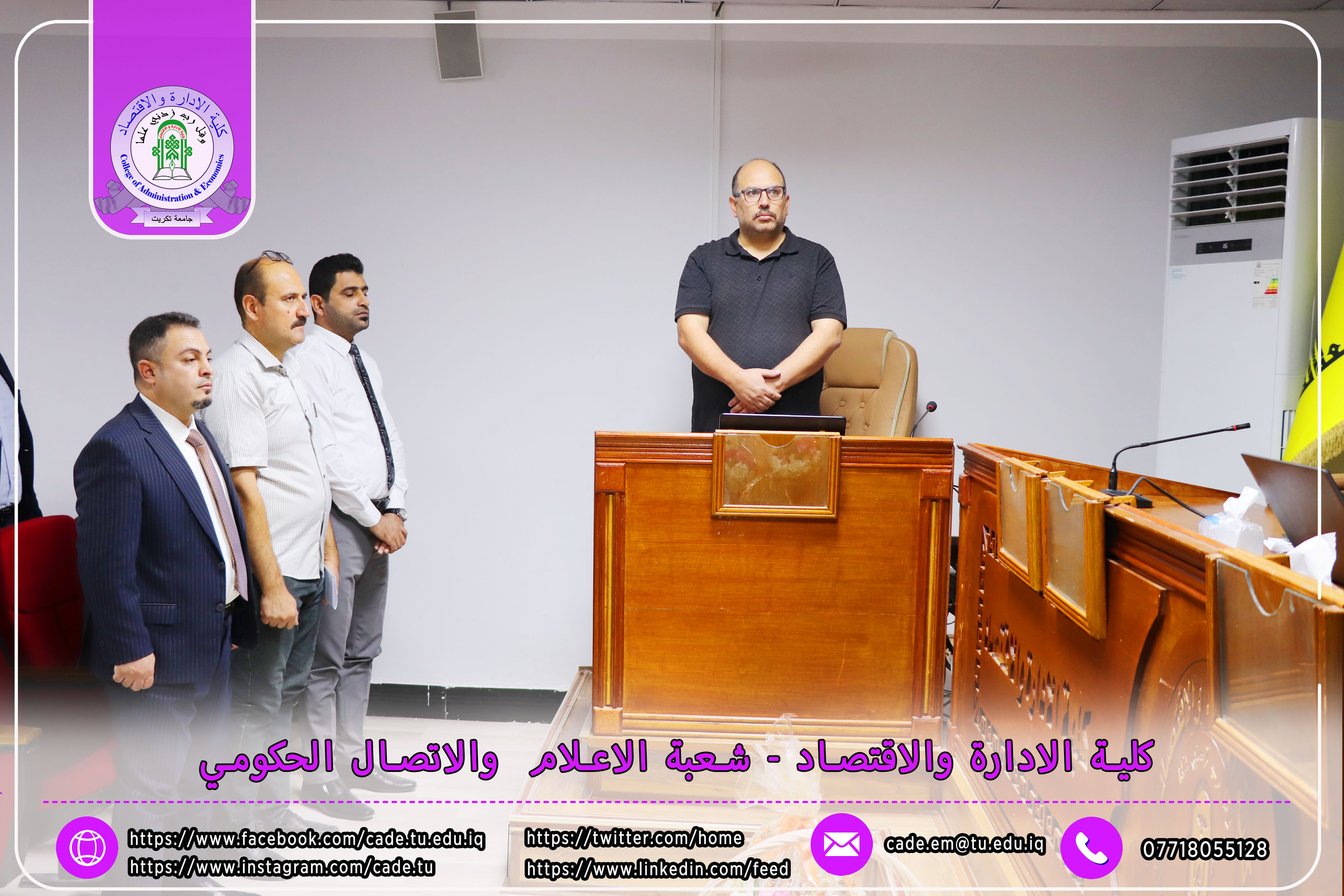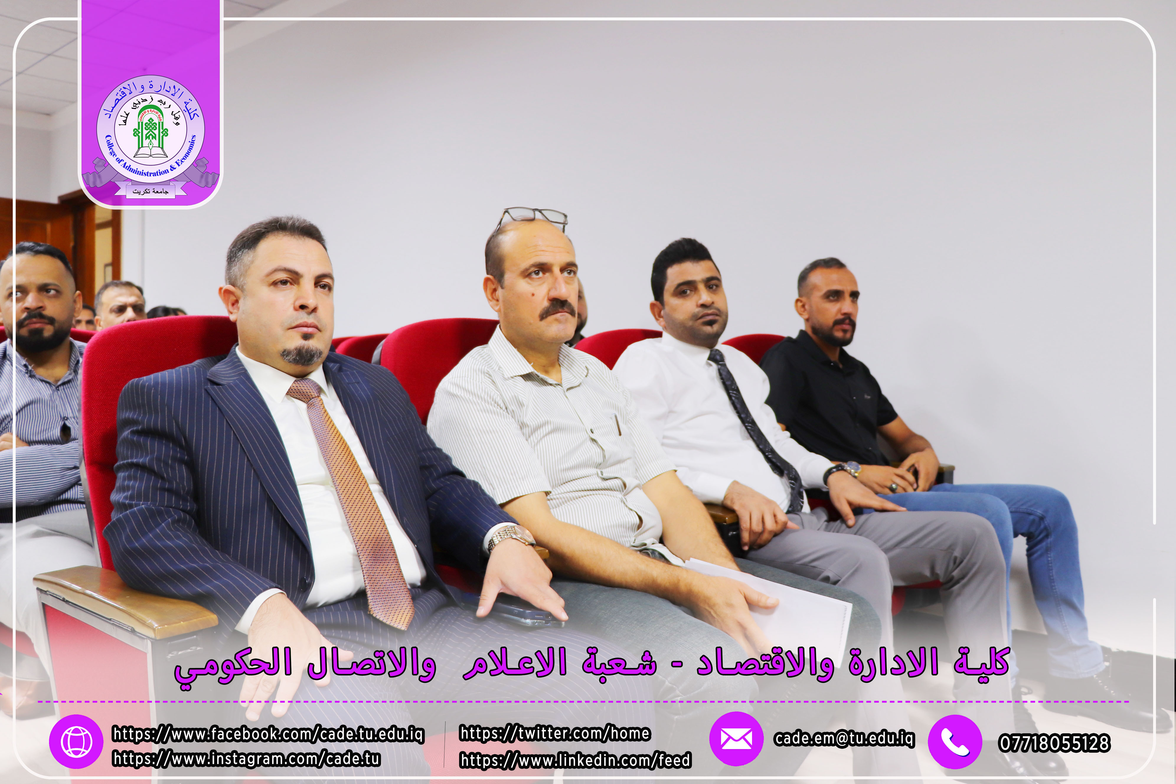 استنادا الى توجيهات وزارة التعليم العالي والبحث العلمي/ دائرة الدراسات والتخطيط والمتابعة/ قسم الاستراتيجيات والسياسات العامة. وانطلاقًا من دورها الريادي في دعم السياسات الوطنية وترسيخ قيم المسؤولية المجتمعية، نظّمت كلية الإدارة والاقتصاد في جامعة تكريت ندوة تعريفية موسعة بعنوان "متابعة وتفعيل استراتيجية الأمن الوطني العراقي (العراق أولاً) 2025–2030"، وذلك يوم الأربعاء الموافق 24 /9/ 2025 على قاعة قسم ادارة الاعمال. وجاءت هذه الندوة برعاية السيد رئيس جامعة تكريت الأستاذ الدكتور وعد محمود رؤوف، وبإشراف عميد الكلية الأستاذ المساعد الدكتور فؤاد فرحان حسين.