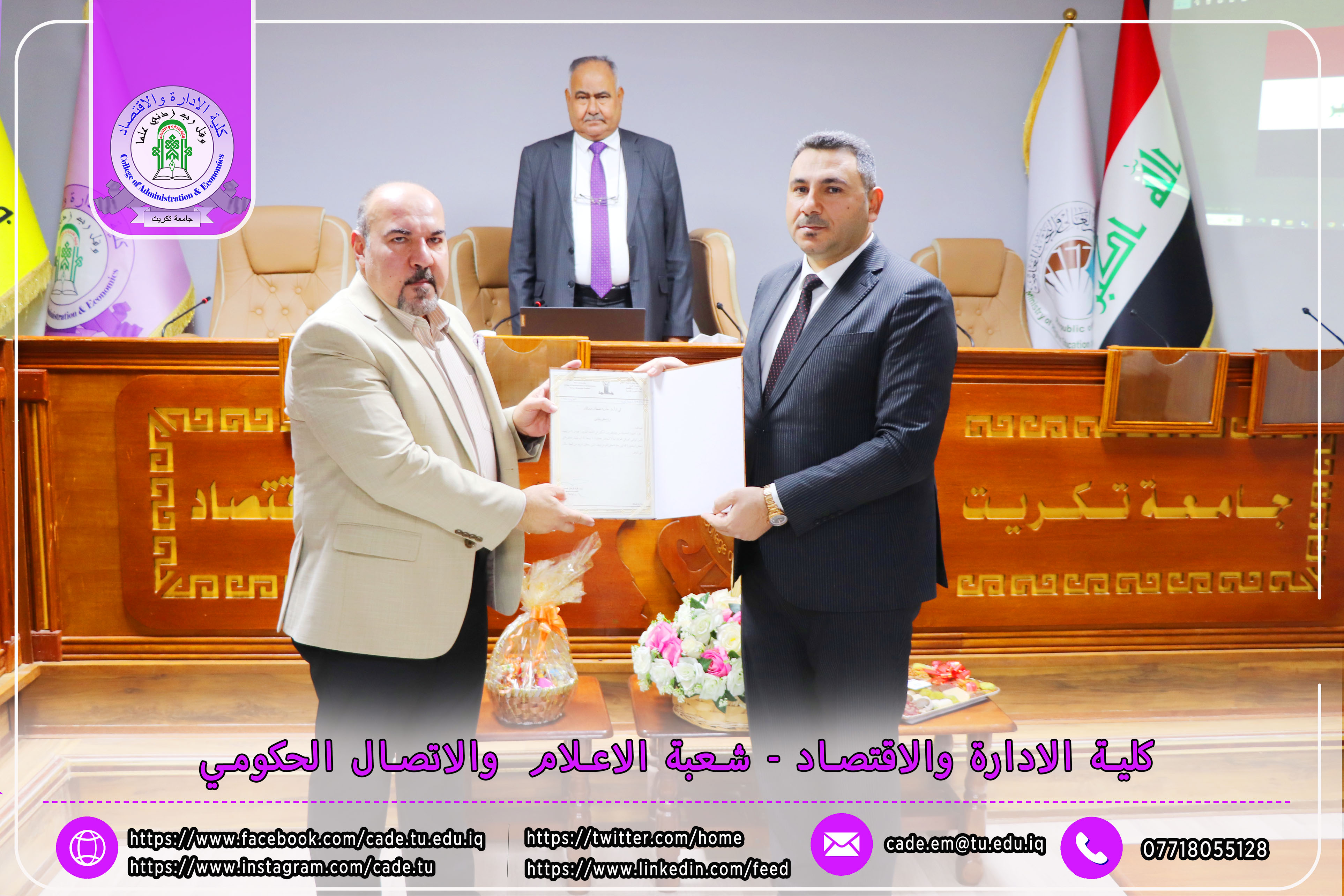 وفي ختام الندوة، قام السيد عميد الكلية أ.م.د. فؤاد فرحان حسين بتكريم الأستاذ الدكتور حارث قحطان عبد الله بكتاب شكر وتقدير، تقديرًا لمشاركته القيمة وإسهاماته العلمية. وقد أعرب د. حارث عن اعتزازه بهذه المبادرة مثمنًا الجهود المبذولة من قبل الجامعة والكلية في خدمة القضايا الوطنية.