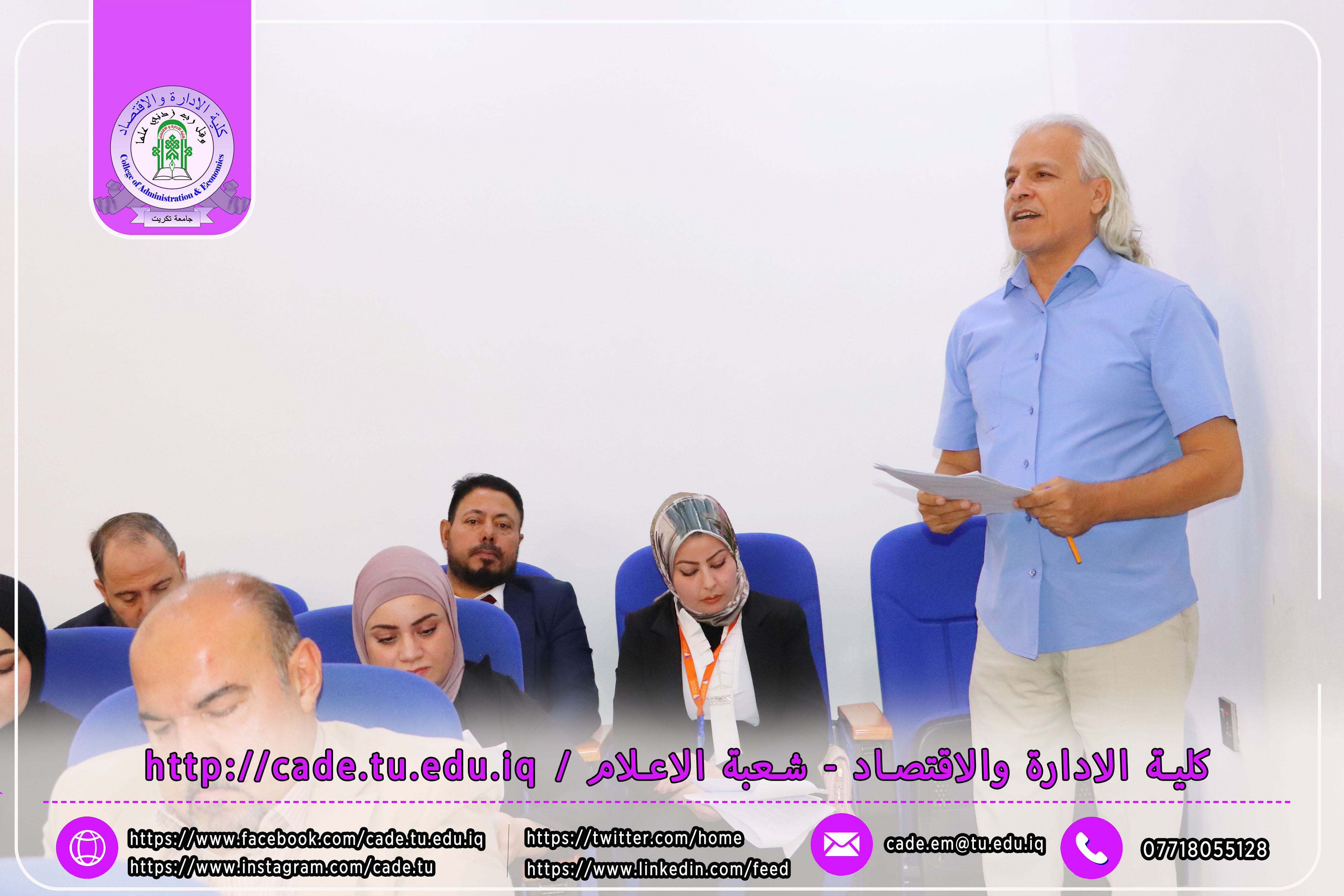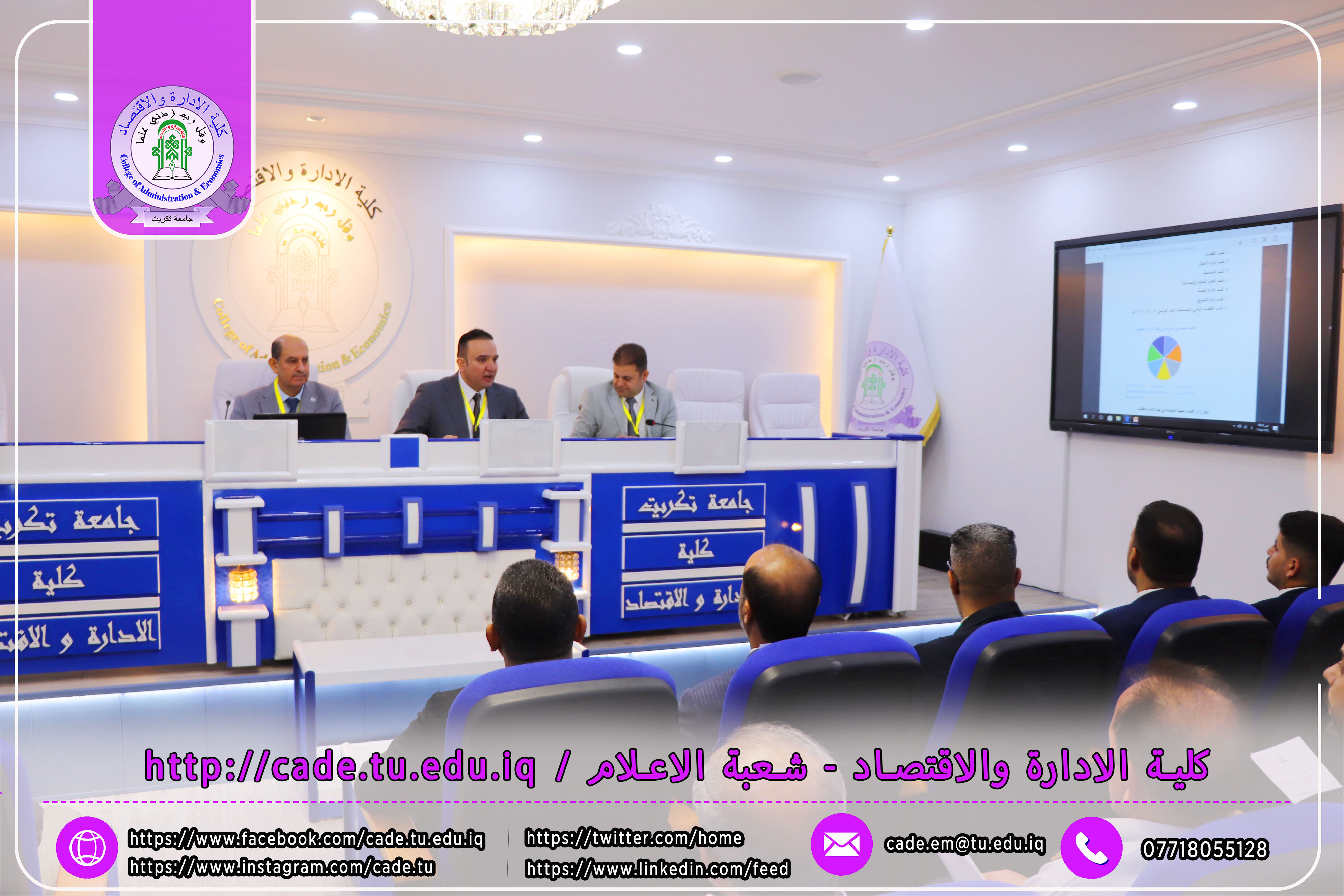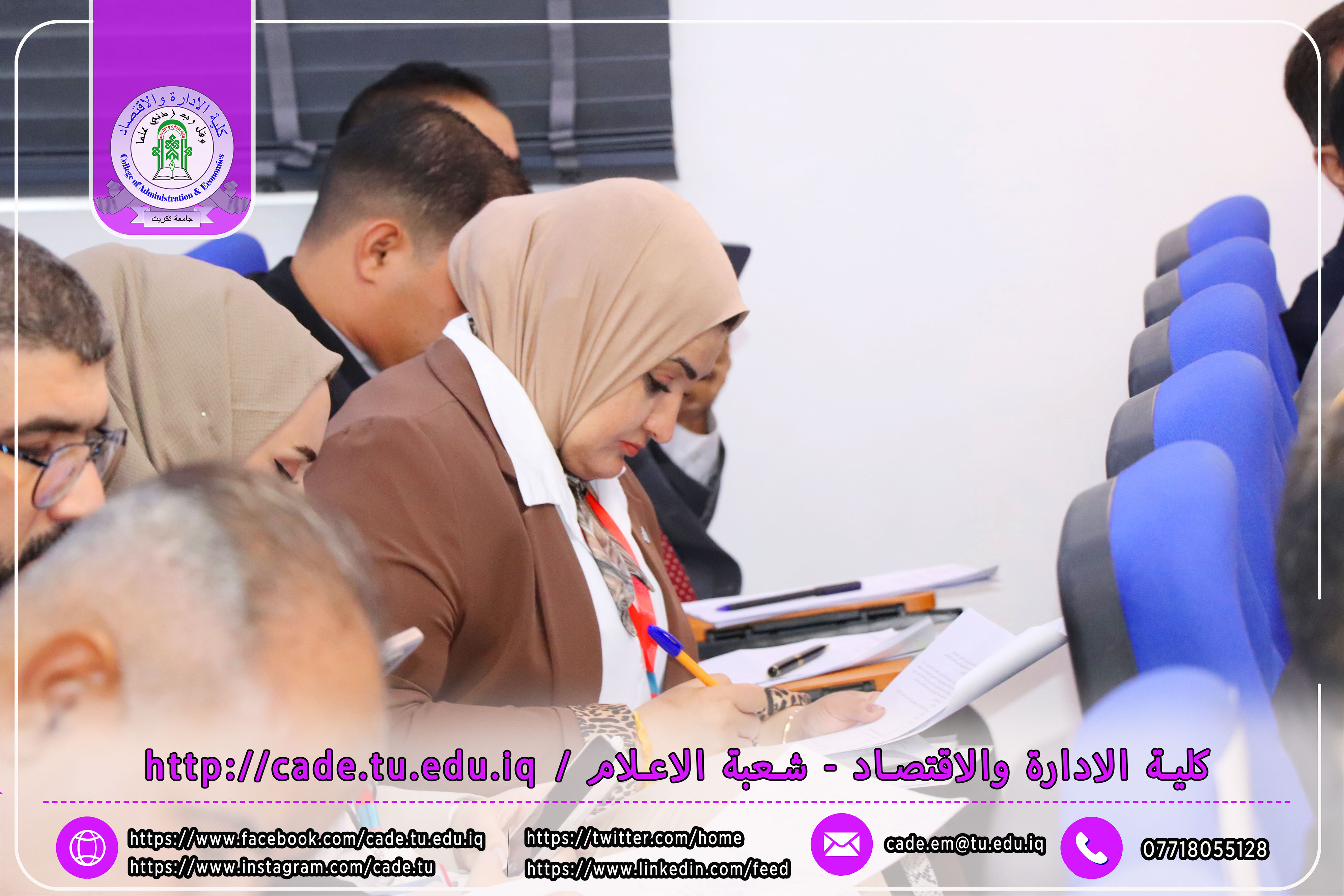 برعاية الأستاذ الدكتور وعد محمود رؤوف، رئيس جامعة تكريت، وبإشراف الأستاذ المساعد الدكتور فؤاد فرحان حسين، عميد كلية الإدارة والاقتصاد، نظمت عمادة كلية الإدارة والاقتصاد / وحدة التأهيل والتوظيف والمتابعة، يوم الأربعاء الموافق 24 أيلول 2025، ورشة علمية بعنوان: