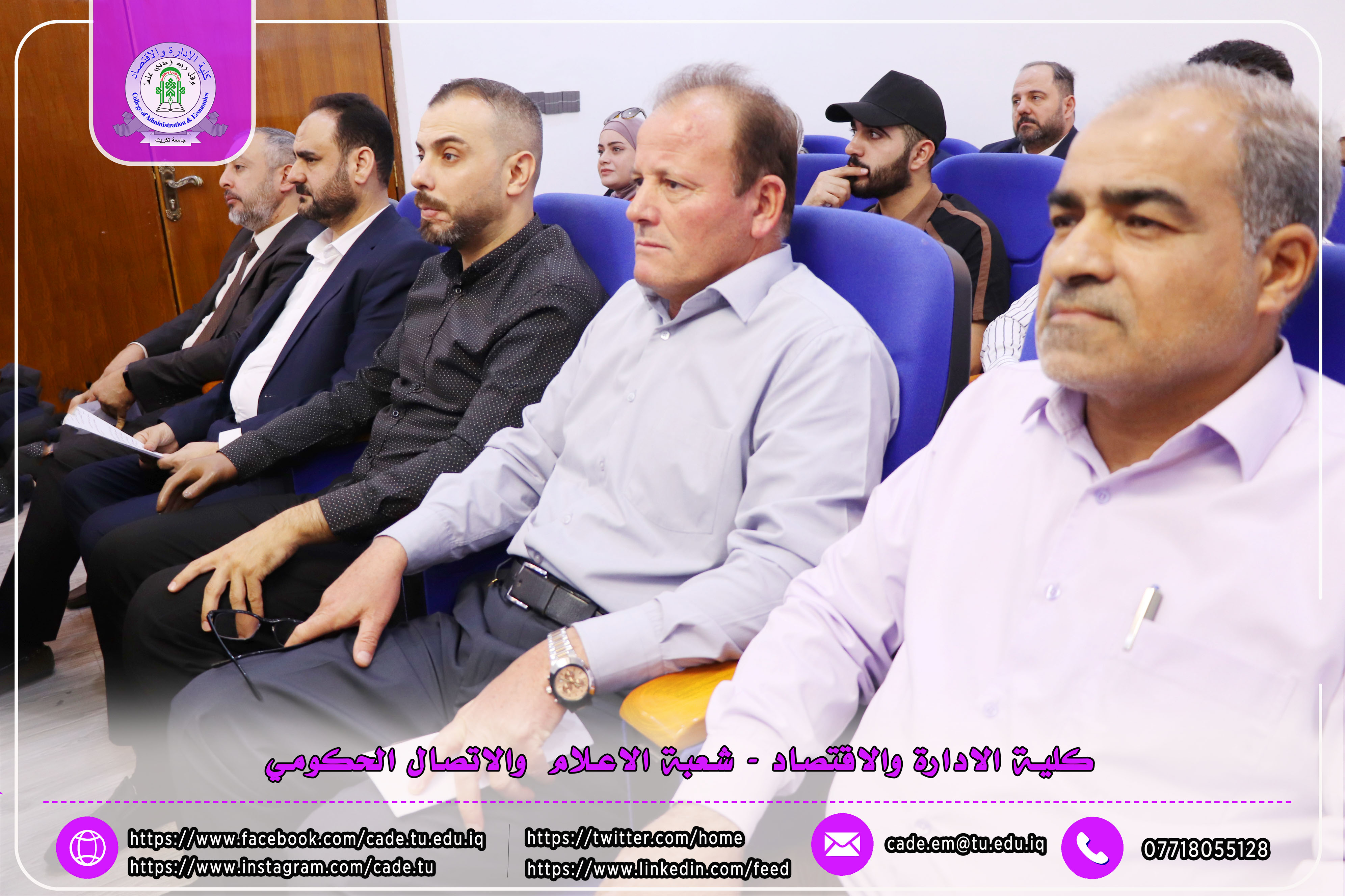 ( متطلبات سوق العمل وانعكاساتها على المهارات الإدارية والمالية والتقنية لخريجي كلية الإدارة والاقتصاد) وذلك على قاعة الدكتور محمد بدع.