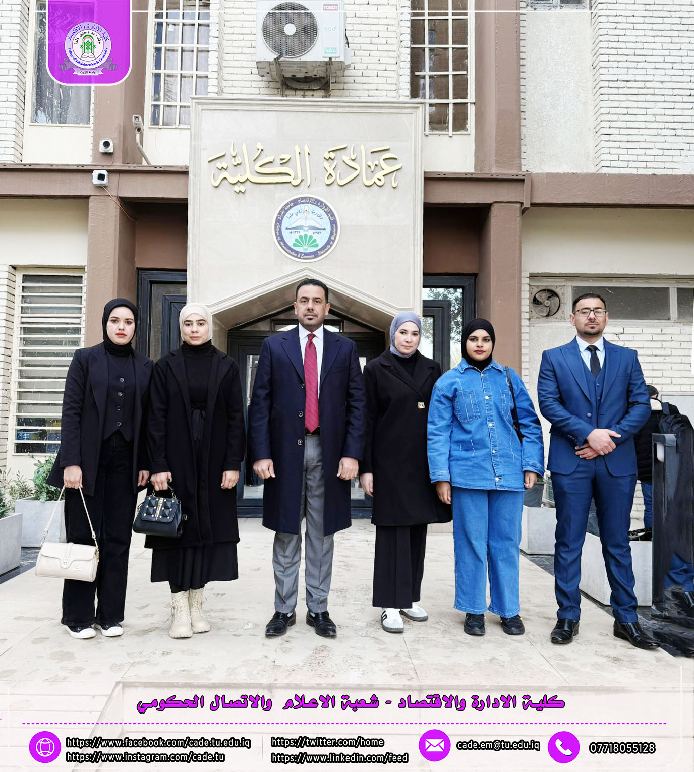 حيث شارك الطلبة الخريجون الثلاثة الأوائل في قسمي المحاسبة وإدارة الأعمال في كليتنا للعام الدراسي 2024–2025 في الامتحان المذكور، الذي أُجري في كلية الإدارة والاقتصاد / جامعة بغداد يوم الخميس الموافق 2026/1/22.