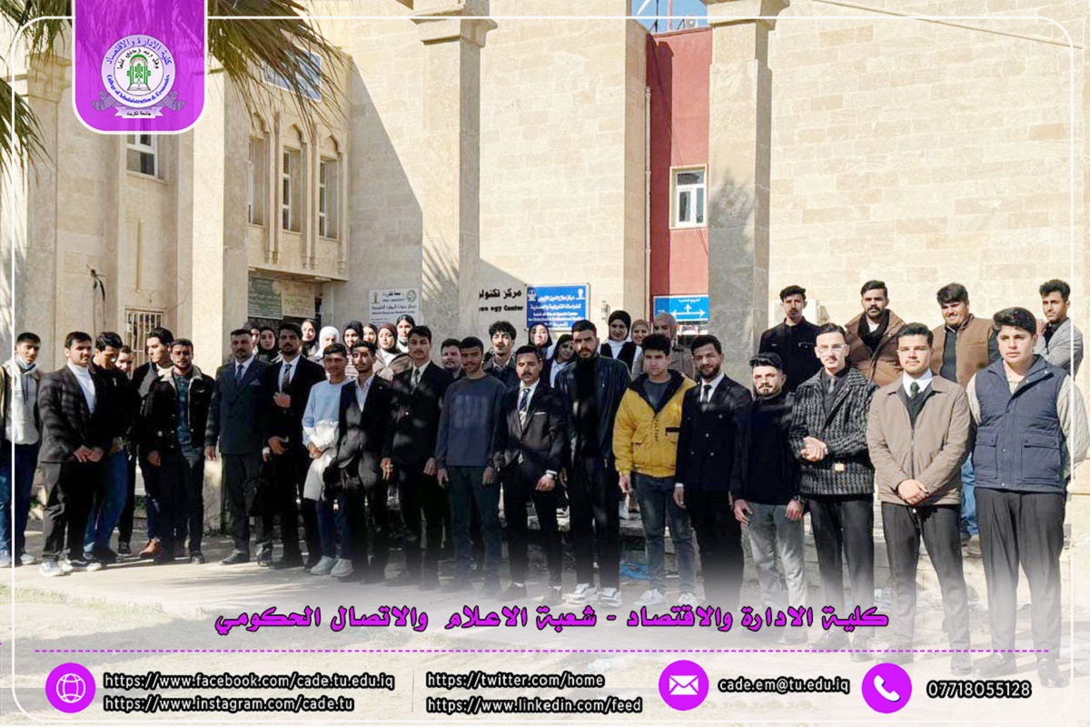 في إطار سعي كلية الإدارة والاقتصاد بجامعة تكريت إلى تعزيز الجانب التطبيقي وربط المعرفة النظرية بالواقع العملي، نظم قسم الاقتصاد الرقمي زيارة علمية إلى مركز تكنولوجيا المعلومات في جامعة تكريت، وذلك يوم الأحد الموافق 25/1/2026، بهدف الاطلاع على الواقع الخدمي للمركز وما يشهده من تطور تكنولوجي وتحولات رقمية متسارعة تواكب متطلبات البيئة العصرية الحديثة.