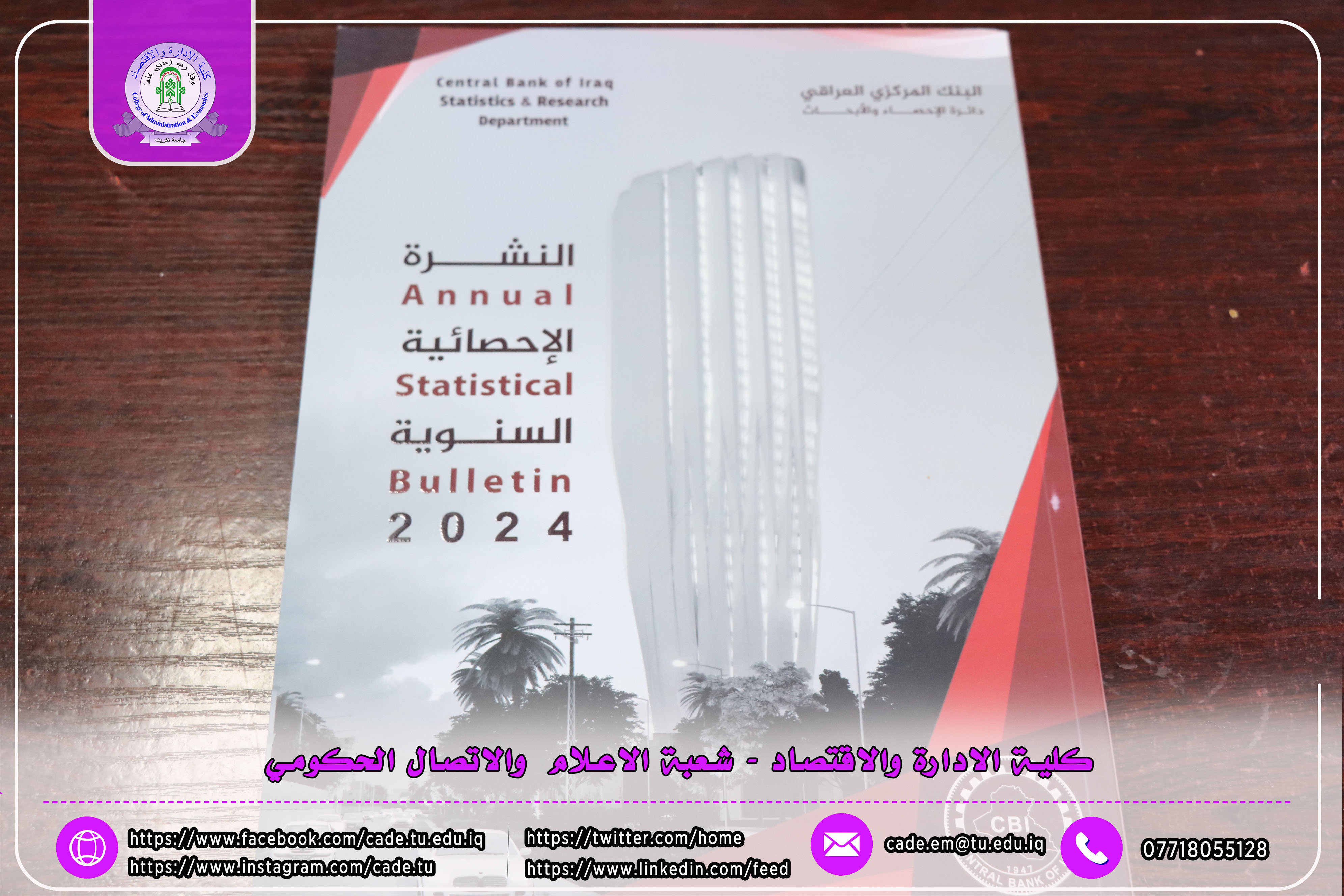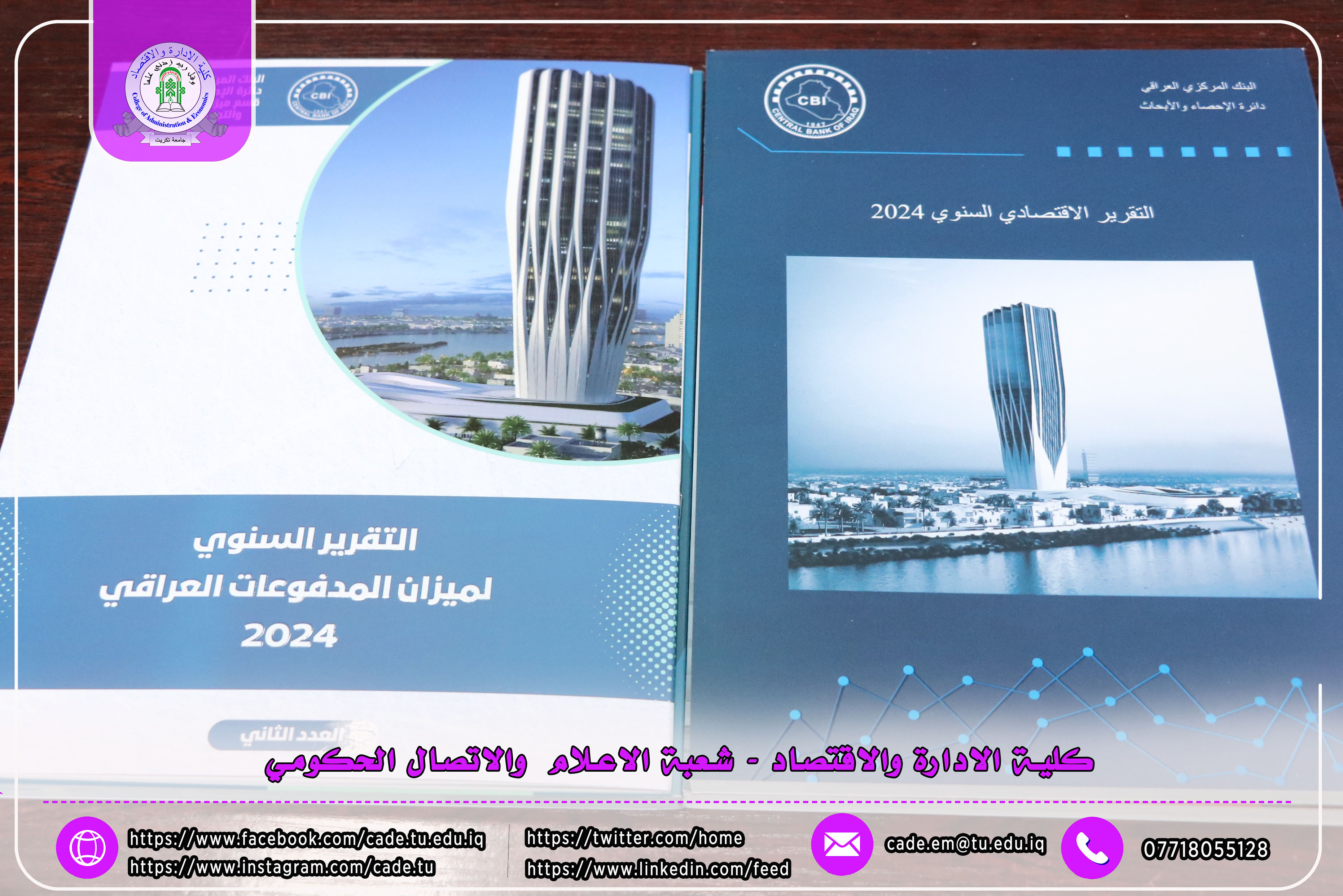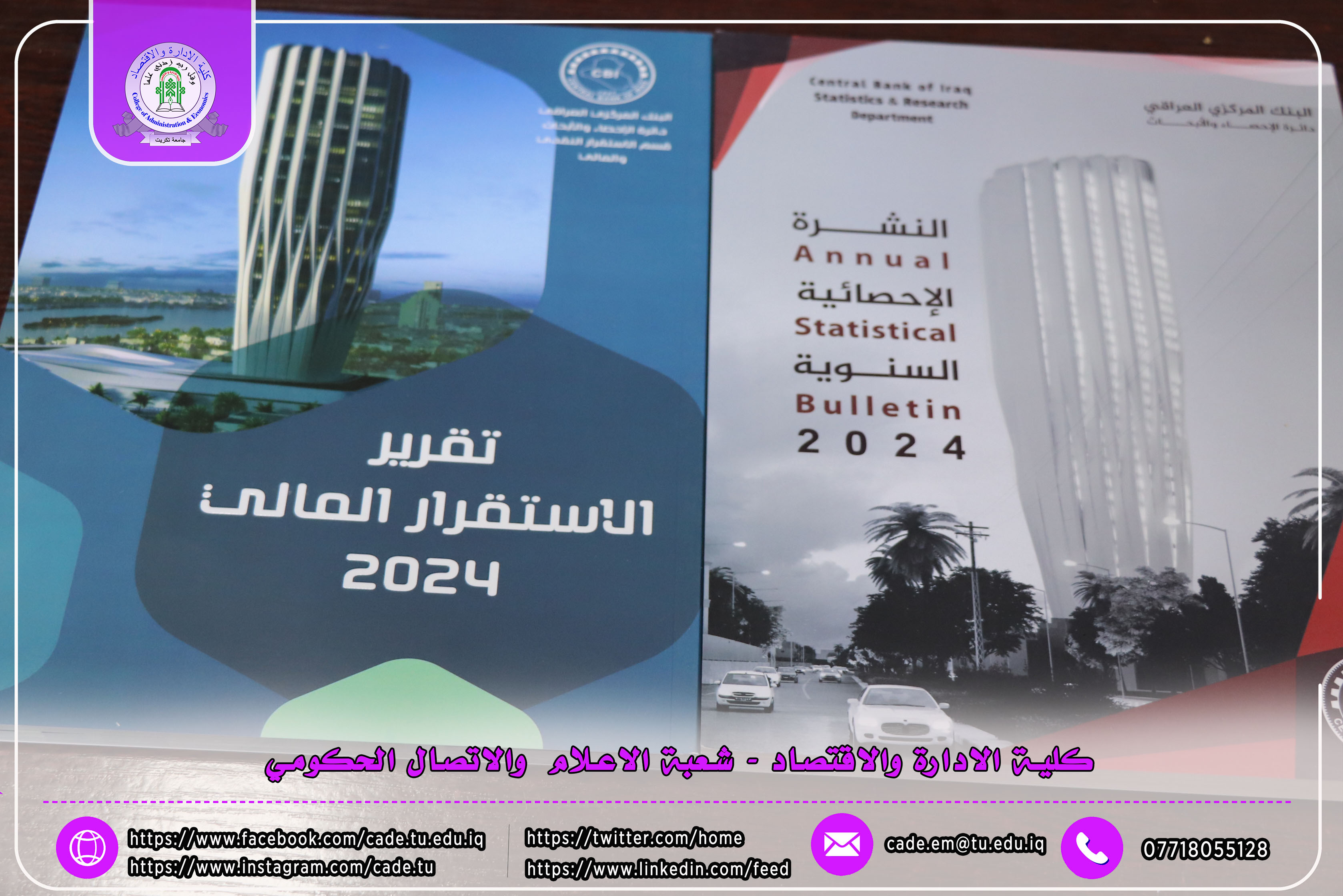 تسلّمت كلية الإدارة والاقتصاد مجموعة من الكتب والتقارير المتخصصة الصادرة عن البنك المركزي العراقي، والخاصة بالسياسة النقدية والمستجدات الاقتصادية لعامي 2024 و2025، وذلك في إطار تعزيز التعاون العلمي والمعرفي بين المؤسسات الأكاديمية والجهات الرسمية ذات العلاقة بالاقتصاد الوطني.