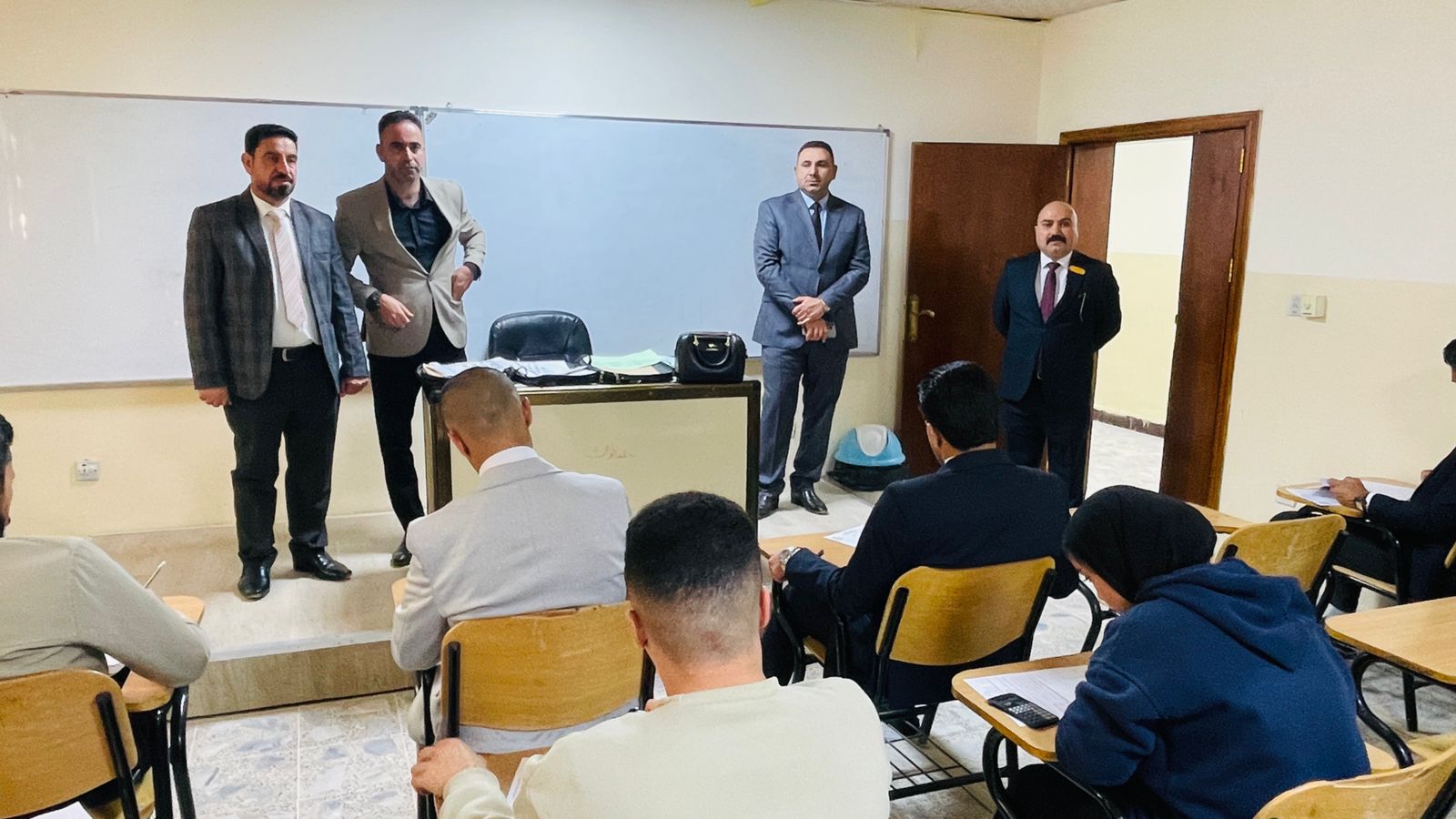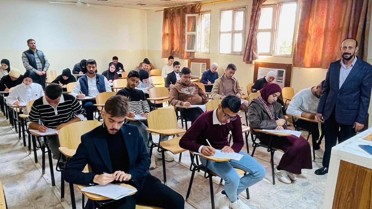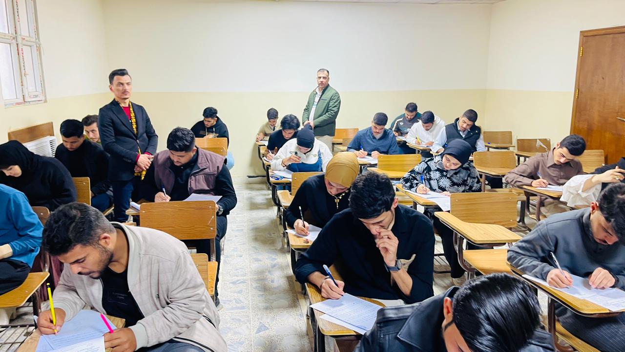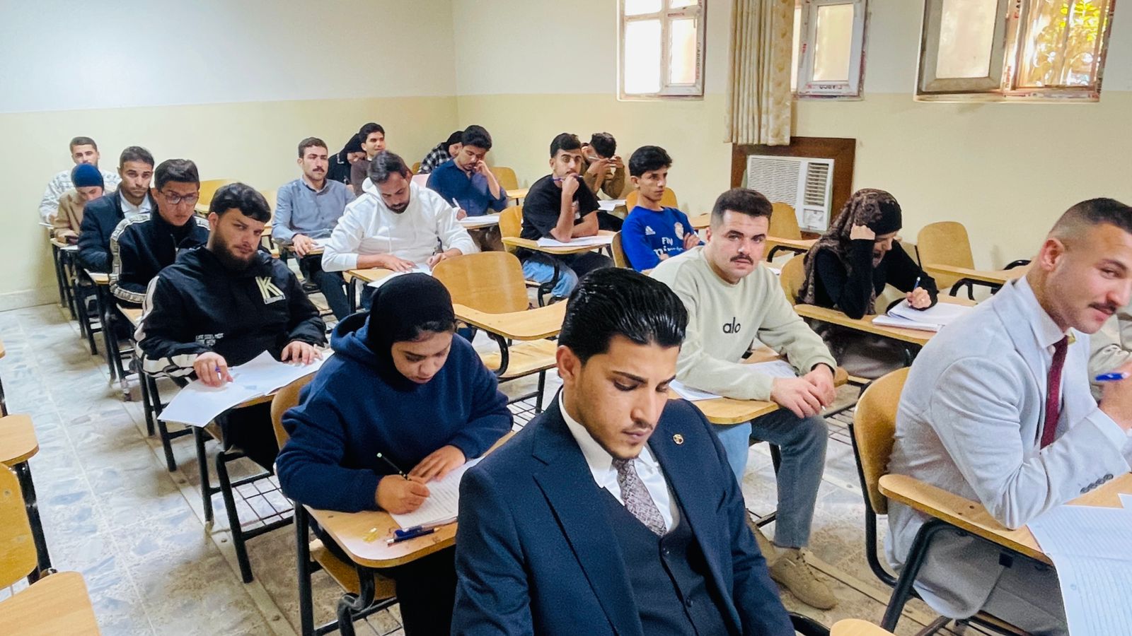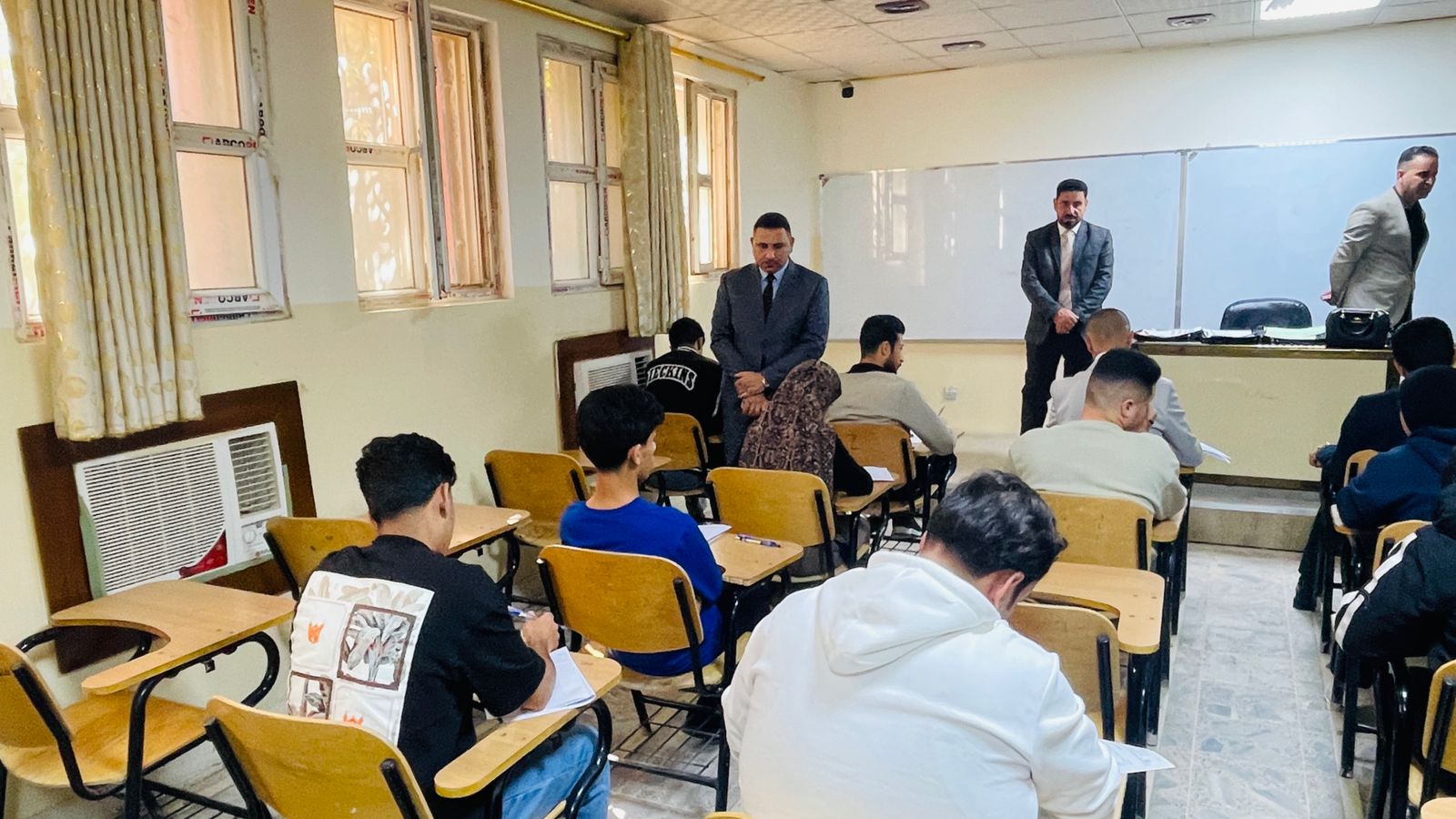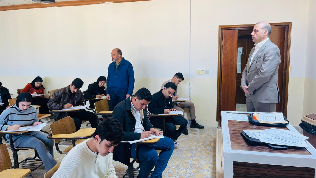وانطلقت الامتحانات مساء يوم الأحد الموافق 2026/2/15 وسط استعدادات تنظيمية وإدارية متكاملة، حيث أجرى عميد الكلية الأستاذ المساعد الدكتور فؤاد فرحان حسين جولة ميدانية تفقدية في القاعات الامتحانية برفقة معاون العميد للشؤون الإدارية الأستاذ المساعد الدكتور أحمد نوار نصيف، للاطلاع بشكل مباشر على سير الامتحانات ومستوى الانضباط والتنظيم، والتأكد من توفير الأجواء الملائمة التي تساعد الطلبة على أداء امتحاناتهم بانسيابية وطمأنينة.