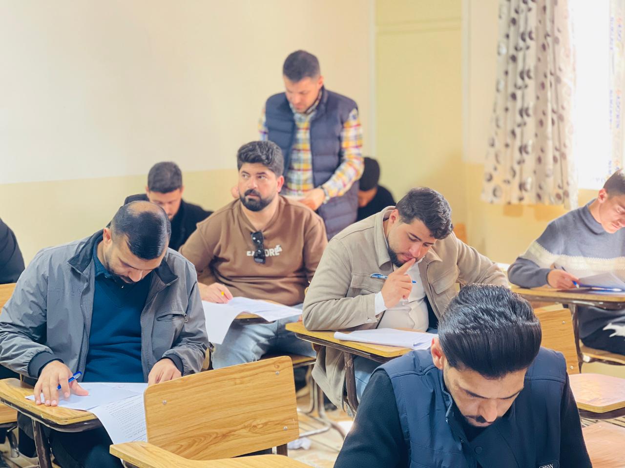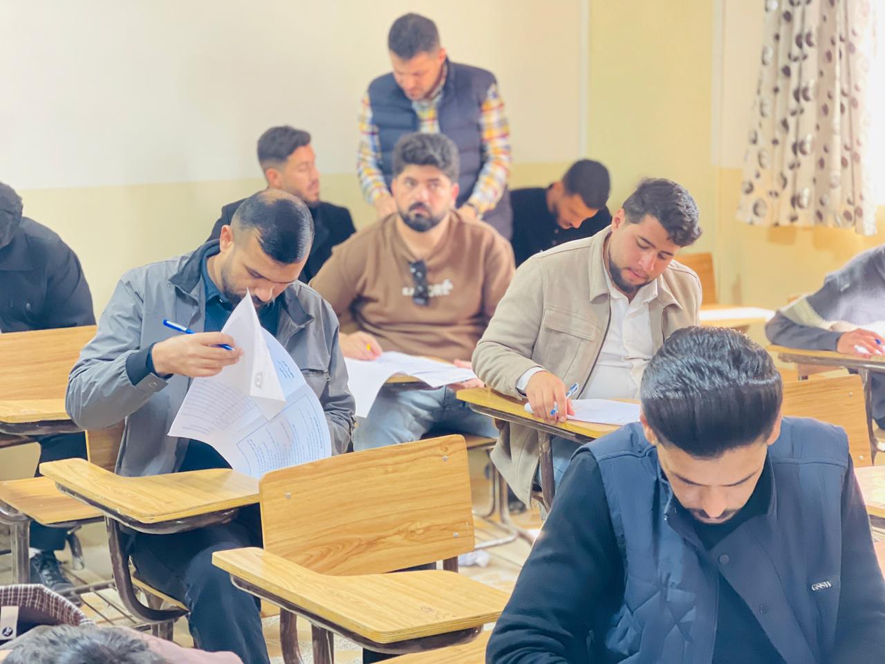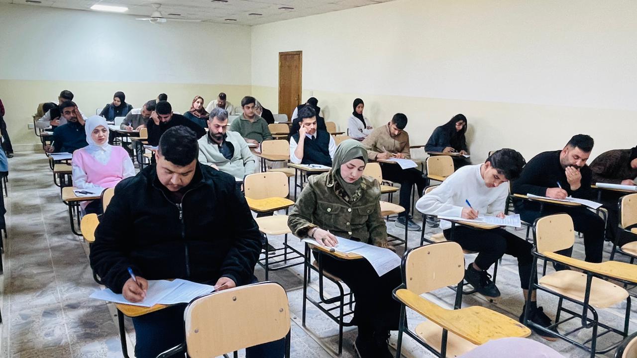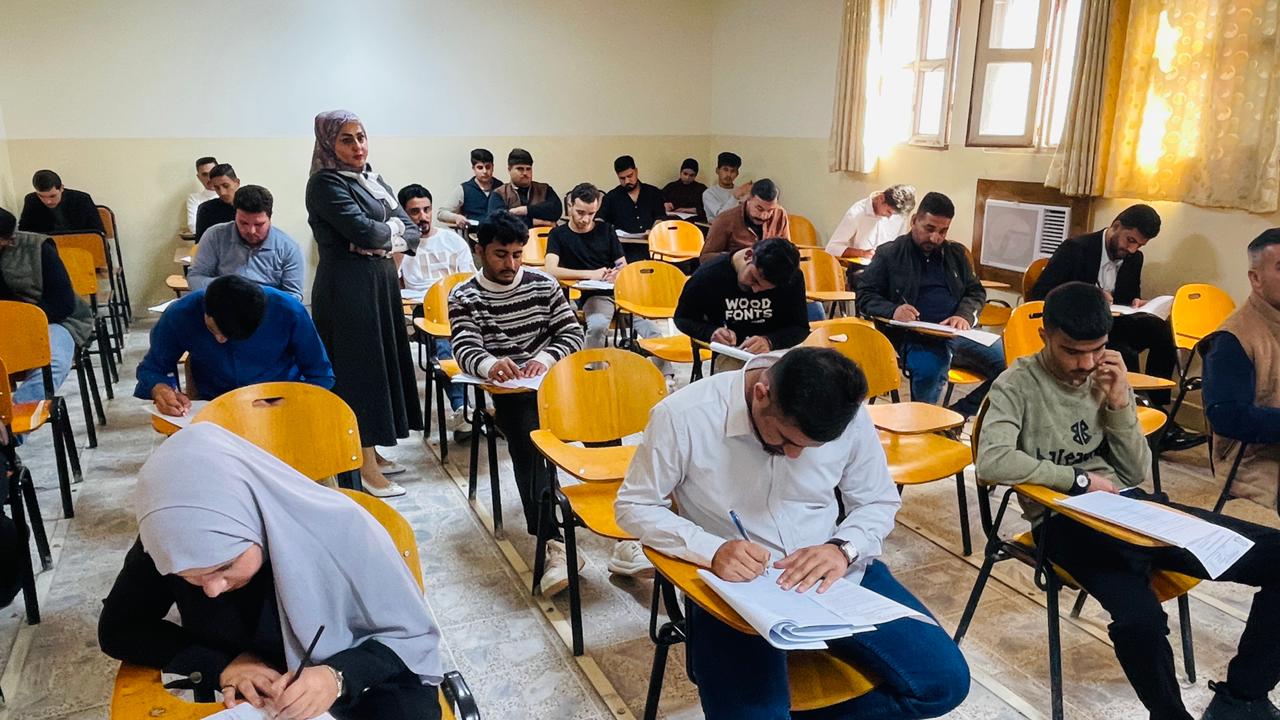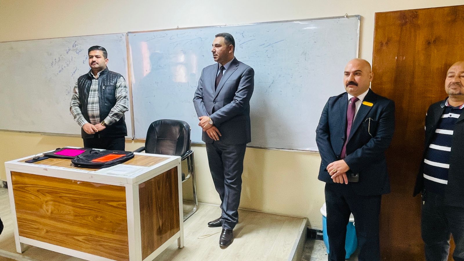 وانطلقت الامتحانات مساء يوم الأحد الموافق 2026/2/15 وسط استعدادات تنظيمية وإدارية متكاملة، حيث أجرى عميد الكلية الأستاذ المساعد الدكتور فؤاد فرحان حسين جولة ميدانية تفقدية في القاعات الامتحانية برفقة معاون العميد للشؤون الإدارية الأستاذ المساعد الدكتور أحمد نوار نصيف، للاطلاع بشكل مباشر على سير الامتحانات ومستوى الانضباط والتنظيم، والتأكد من توفير الأجواء الملائمة التي تساعد الطلبة على أداء امتحاناتهم بانسيابية وطمأنينة.