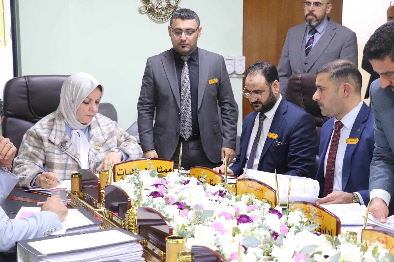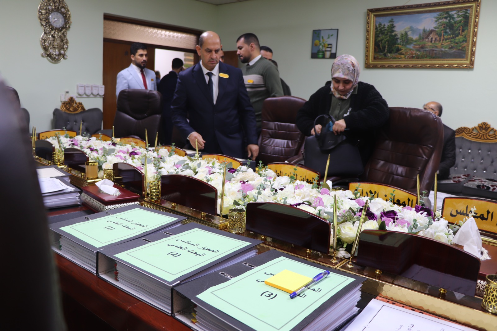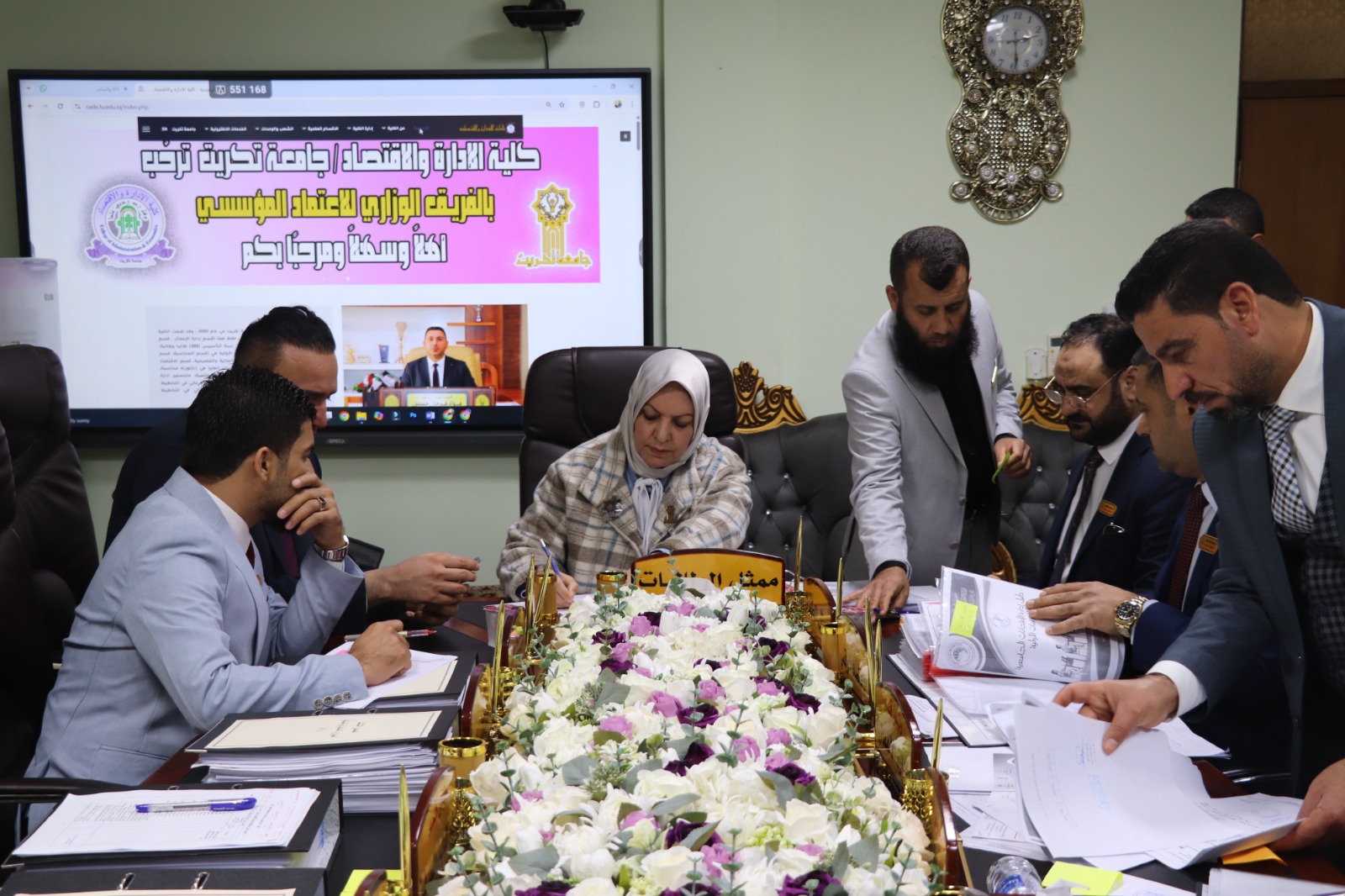 وكان في استقبال الفريق الوزاري الأستاذ المساعد الدكتور فؤاد فرحان حسين عميد كلية الإدارة والاقتصاد، ومعاونوه، إضافة إلى اللجان المختصة المكلفة بمتابعة متطلبات ومعايير الاعتماد لكل محور.