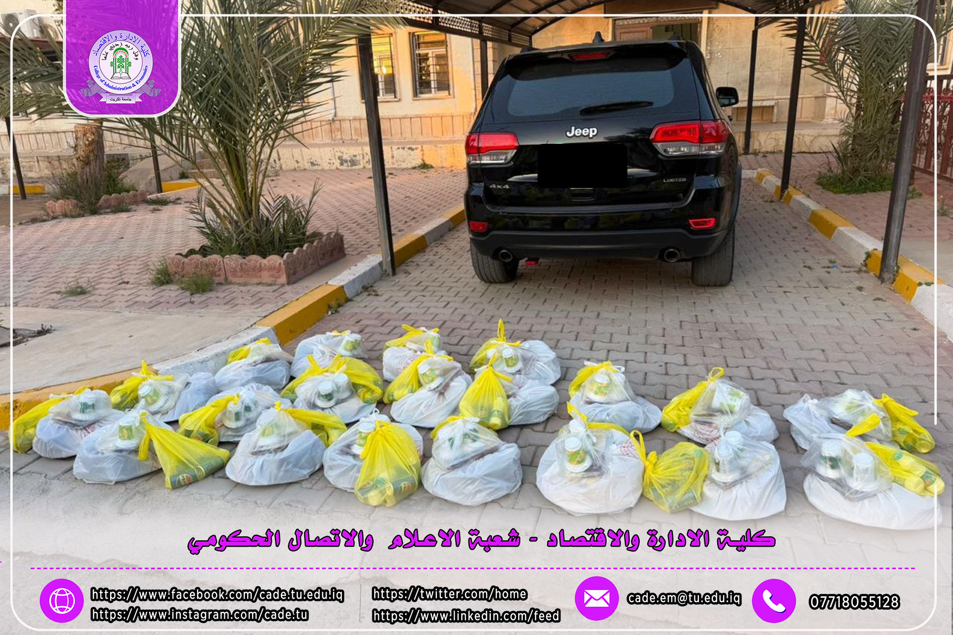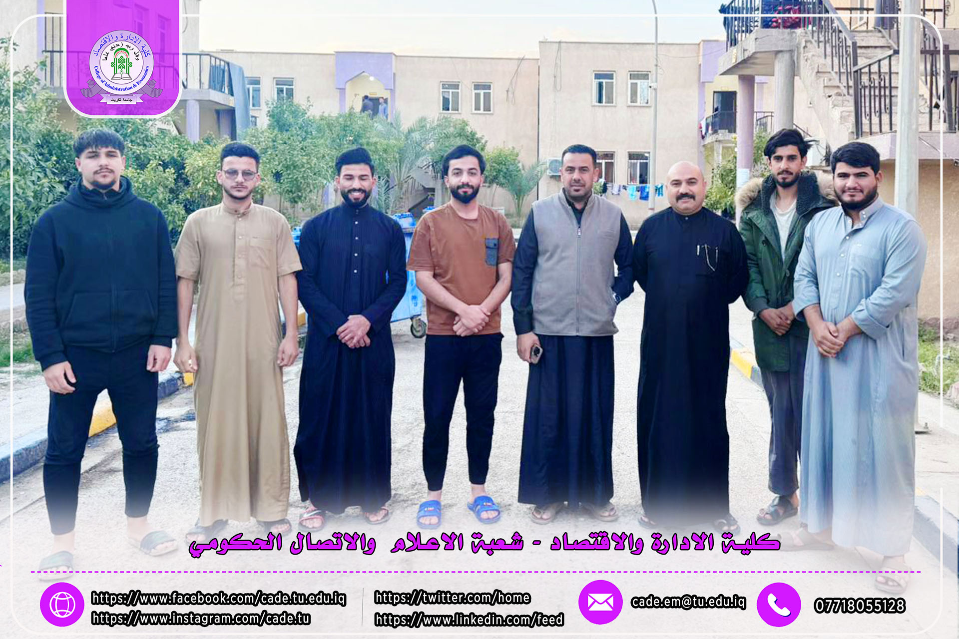 برعاية الأستاذ الدكتور وعد محمود رؤوف، رئيس جامعة تكريت، وبإشراف الأستاذ المساعد الدكتور فؤاد فرحان حسين، عميد كلية الإدارة والاقتصاد، وبمتابعة معاون العميد لشؤون الطلبة الأستاذ المساعد الدكتور قتيبة إبراهيم حمادة ومعاون العميد للشؤون الإدارية والمالية الأستاذ المساعد الدكتور أحمد نوار نصيف، نظّمت كلية الإدارة والاقتصاد يوم الثلاثاء الموافق 10/3/2026 وجبة إفطار جماعية لطلبتها وطالباتها المقيمين في الأقسام الداخلية، وذلك بمناسبة حلول شهر رمضان المبارك.