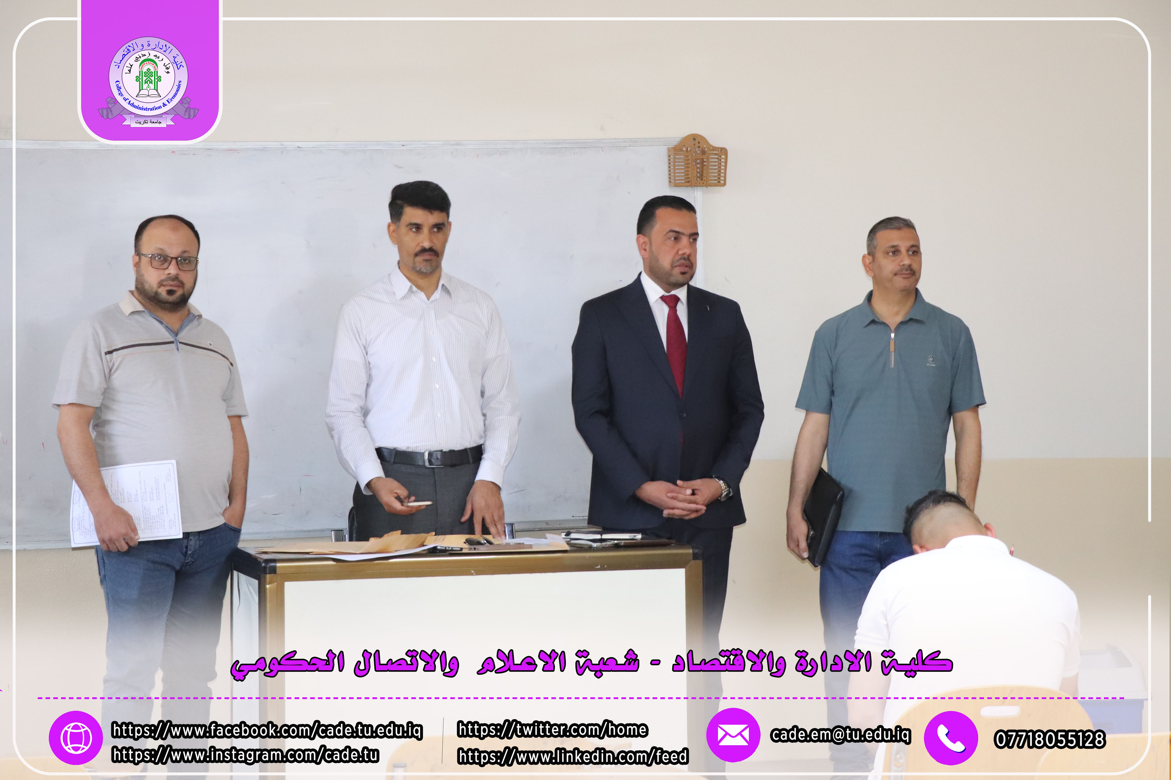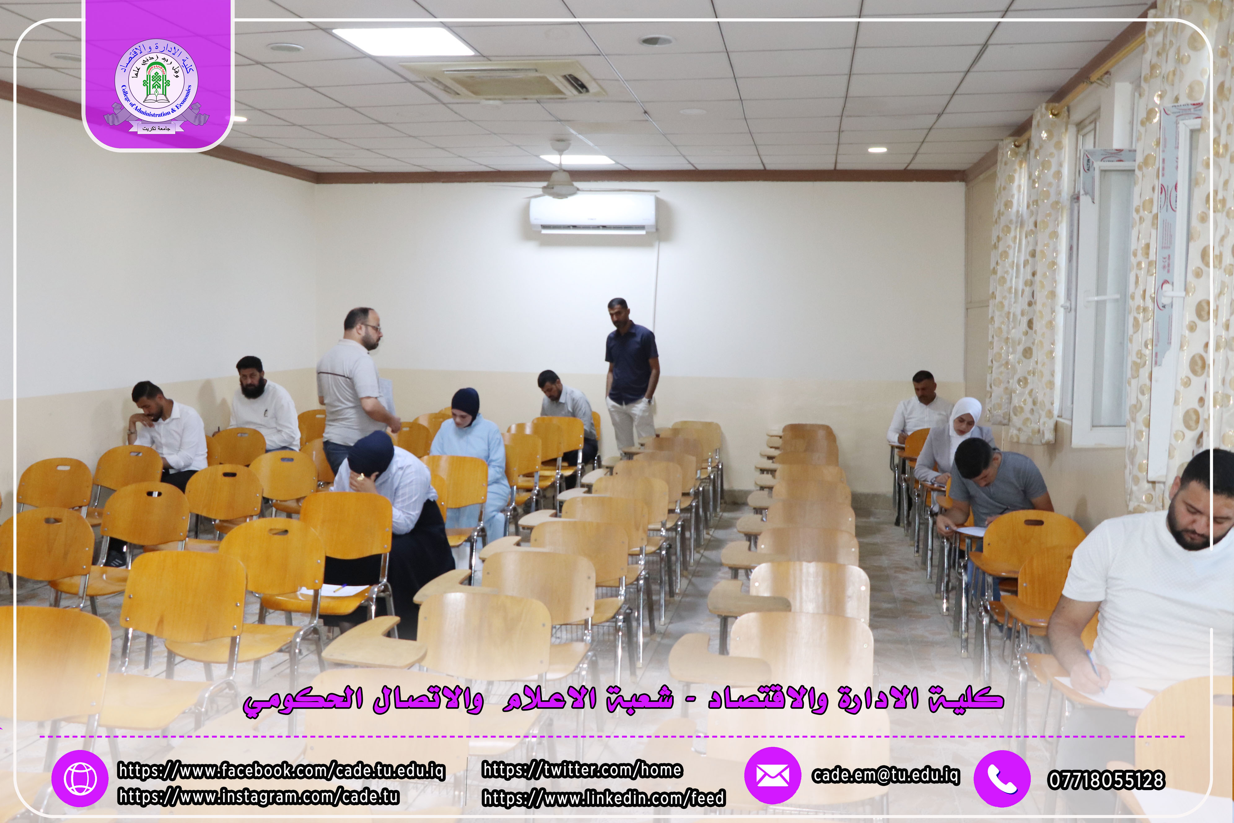 أجرت كلية الإدارة والاقتصاد/ جامعة تكريت الامتحان المشترك لطلبة قسمي المحاسبة وإدارة الأعمال، وذلك بالتعاون مع عدد من الكليات الأهلية، في إطار تعزيز جودة التعليم وتوحيد المعايير الأكاديمية بين المؤسسات التعليمية الحكومية والأهلية.