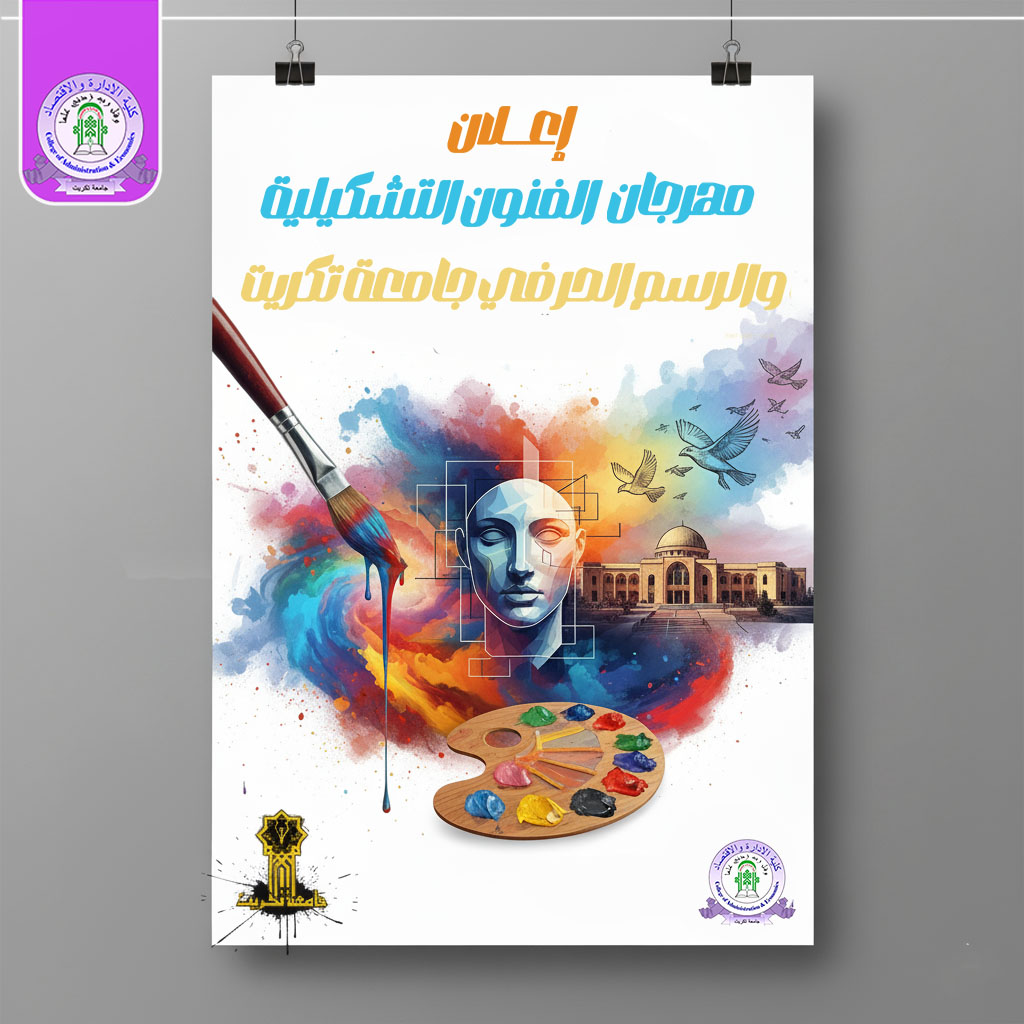 برعاية الأستاذ الدكتور وعد محمود رؤوف، رئيس جامعة تكريت المحترم، وبإشراف الأستاذ المساعد الدكتور فؤاد فرحان حسين، عميد كلية الإدارة والاقتصاد، تُعلن عمادة كلية الإدارة والاقتصاد / شعبة النشاطات الطلابية، عن إقامة مهرجان الفنون التشكيلية والرسم الحر، وذلك استنادًا إلى كتاب جامعة تكريت / قسم النشاطات الطلابية ذي العدد (549) بتاريخ 14 / 10 / 2025، والمتضمن المناهج الداخلية للفصل الأول من العام الدراسي 2025 / 2026.