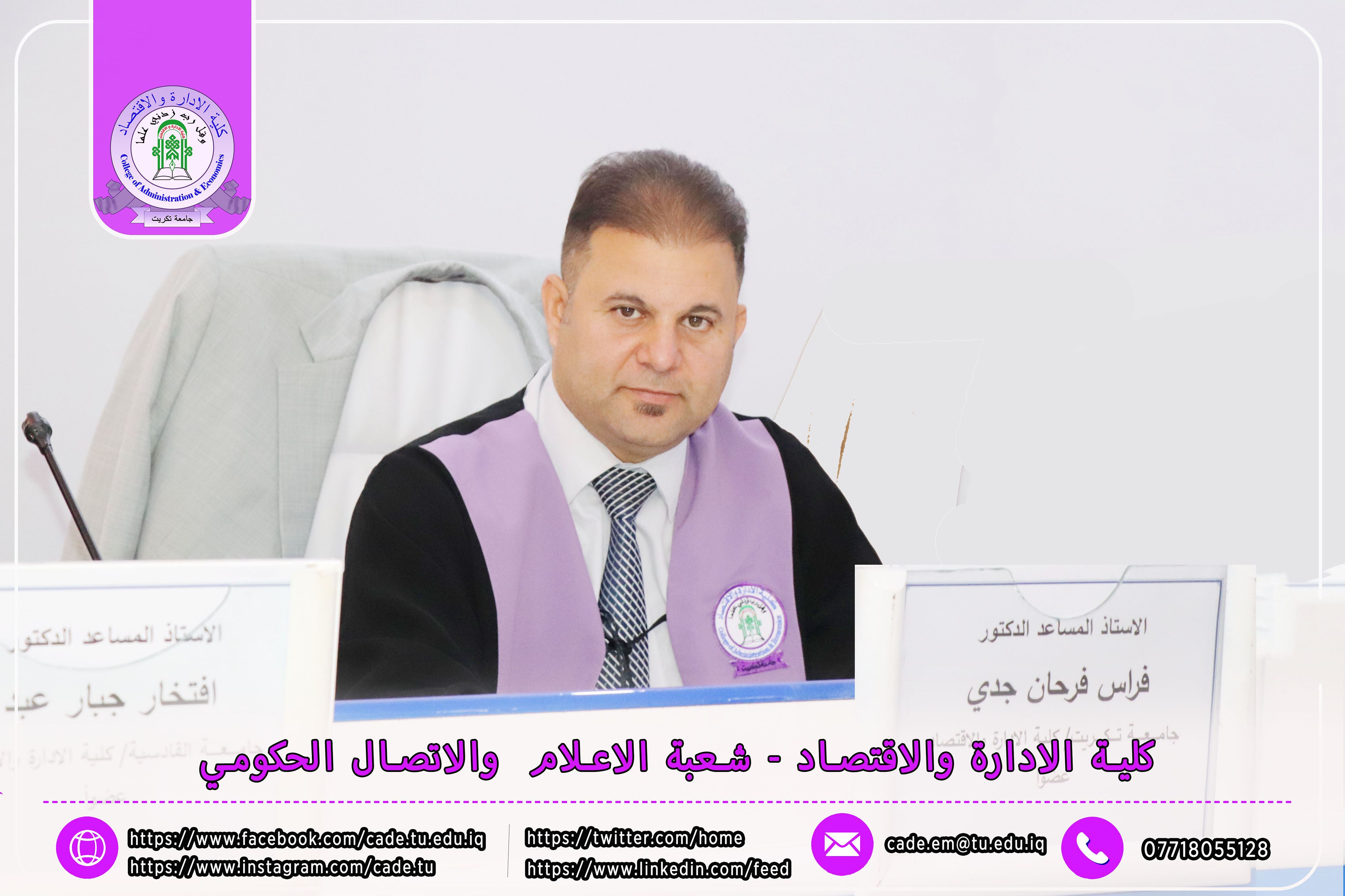 هذا وقد حضر المناقشة عميد كلية الادارة والاقتصاد أ.م.د. فؤاد فرحان حسين، ومعاون العميد للشؤون العلمية وا.م.د. خطاب عمران صالح، ومدير قسم الدراسات والتخطيط في جامعة تكريت ا.د. صالح حسن عبدالله وعدد من السادة التدريسيين وطلبة الدراسات العليا.