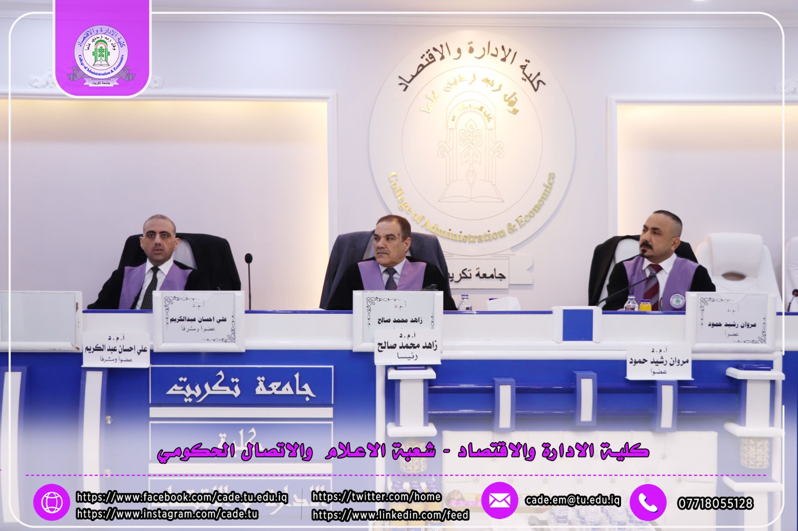 ا.م.د. علي احسان عبدالكريم كلية الإدارة والاقتصاد /جامعة تكريـت/عضواً ومشرفاً