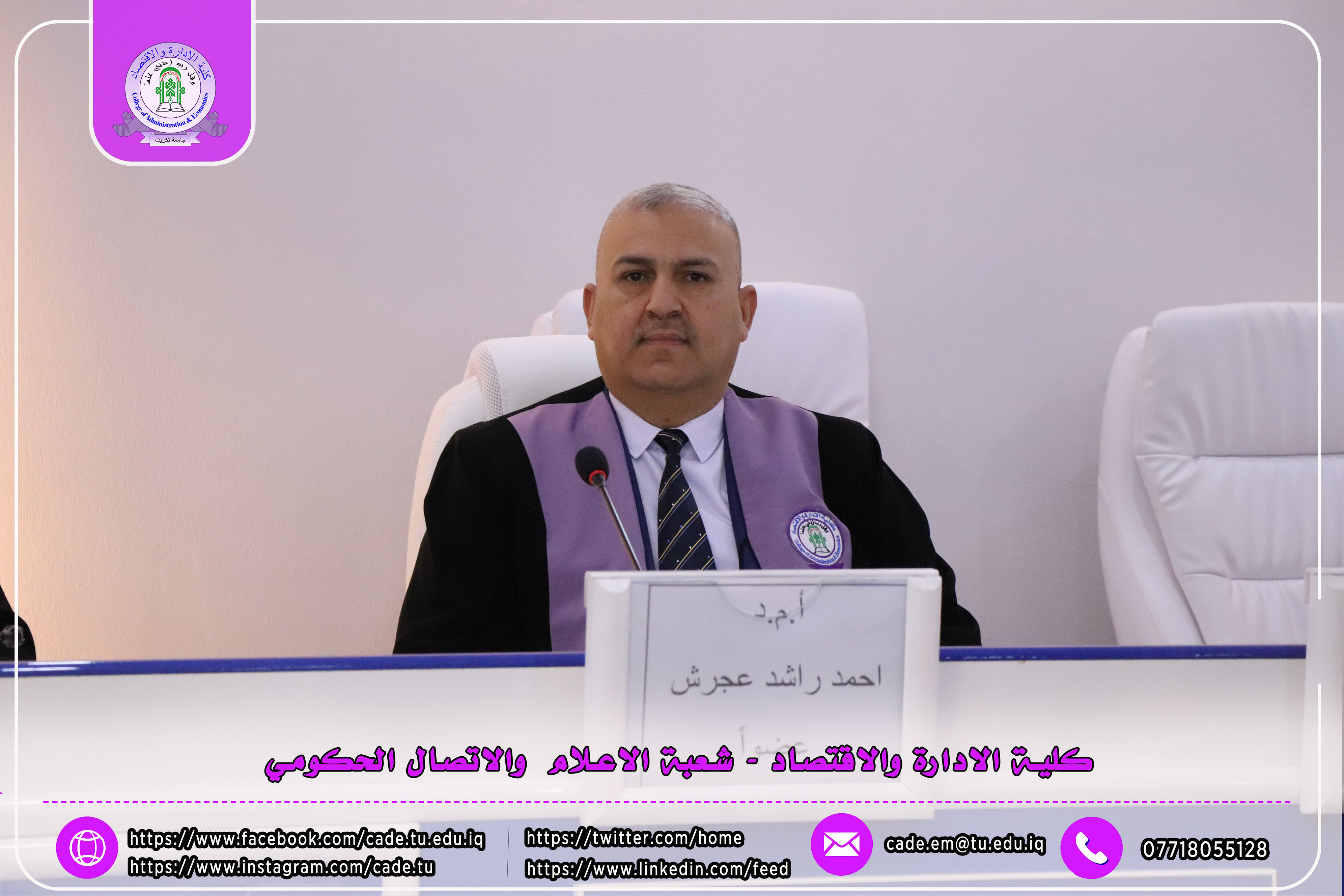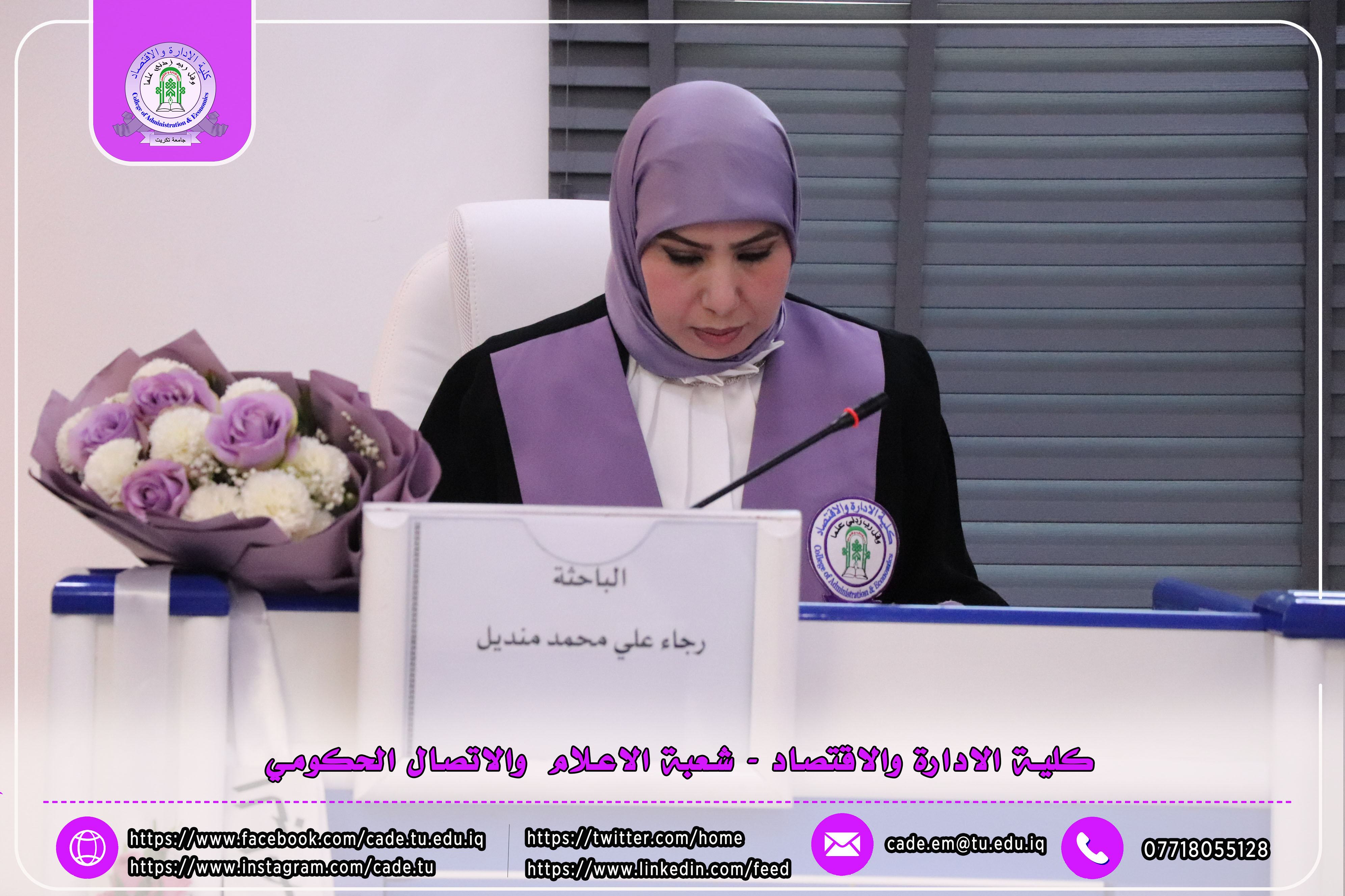 وتألفت لجنة المناقشة من ا.د. عبدالرزاق حمد حسين رئيساً وعضوية كل من ا.م.د. احمد عباس عبدالله، ا.م.د. احمد راشد عجرش، إلى جانب المشرف على الرسالة.