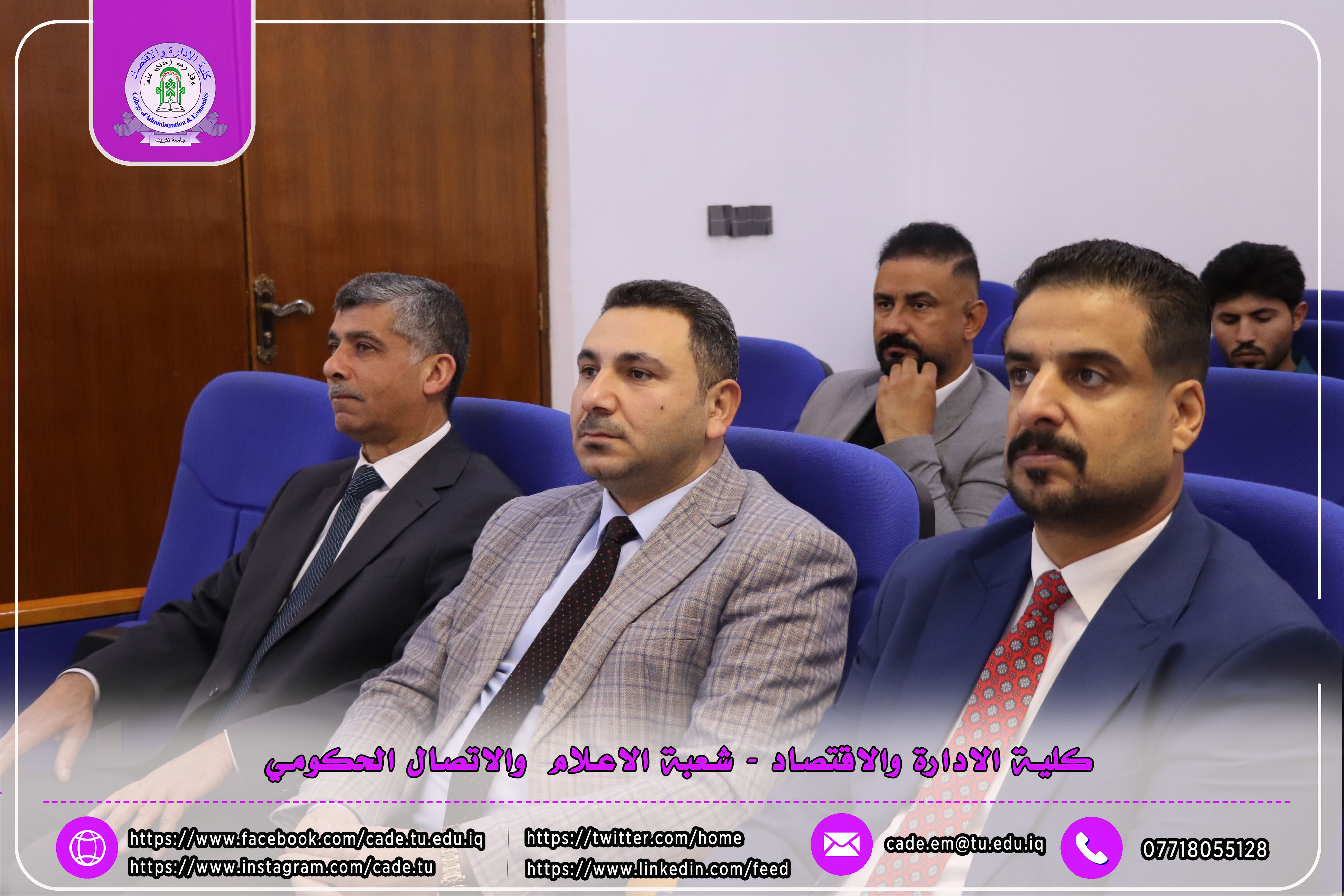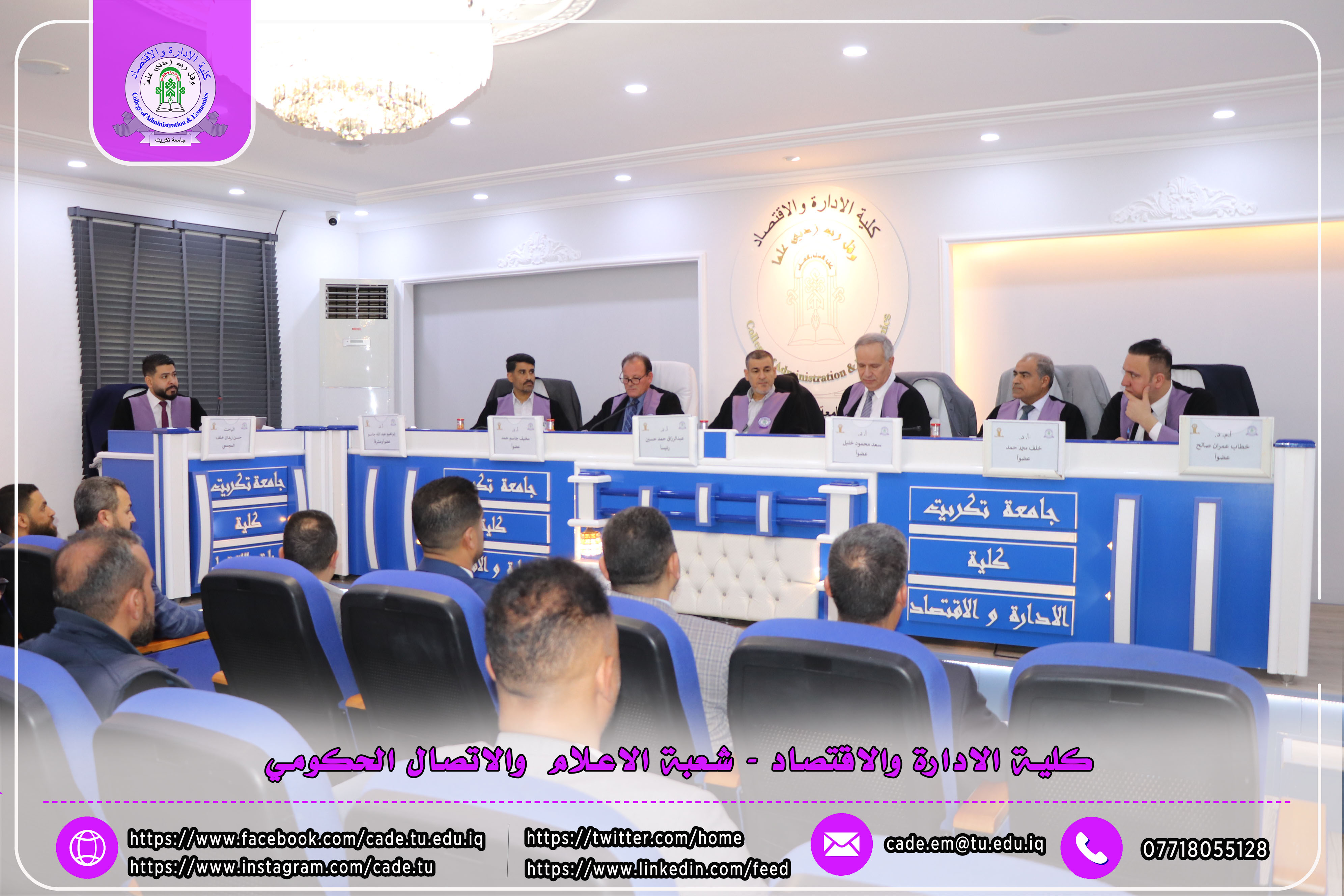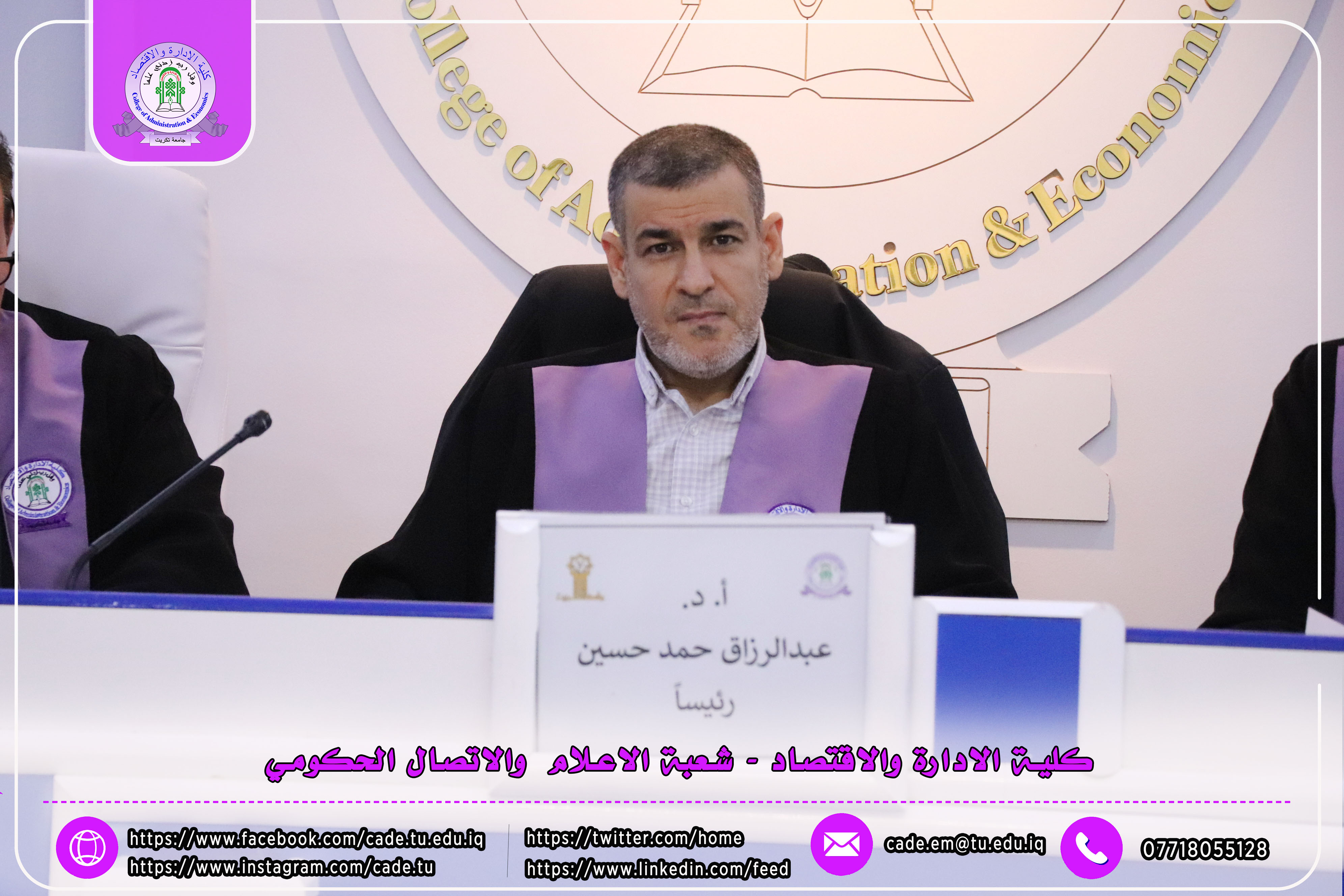هذا وقد شهدت المناقشة حضور الاستاذ المساعد الدكتور فؤاد فرحان حسين عميد كلية الادارة والاقتصاد وعدد من السادة التدريسيين وطلبة الدراسات العليا.