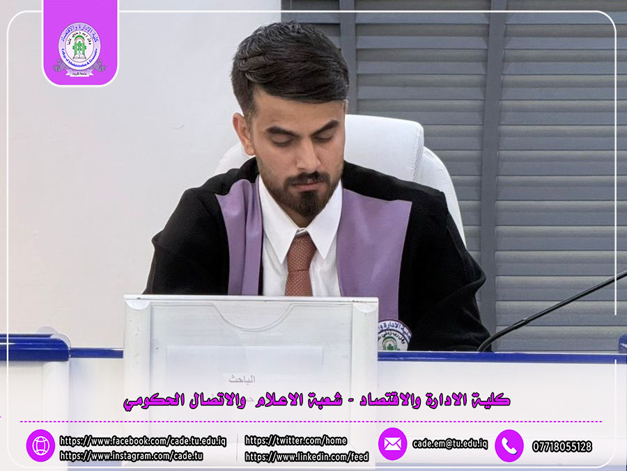 وقد شهدت المناقشة حضور الأستاذ المساعد الدكتور خطاب عمران صالح معاون العميد للشؤون العلمية، والأستاذ المساعد الدكتور احمد معاون العميد للشؤون الادارية إلى جانب عدد من السادة التدريسيين وطلبة الدراسات العليا.