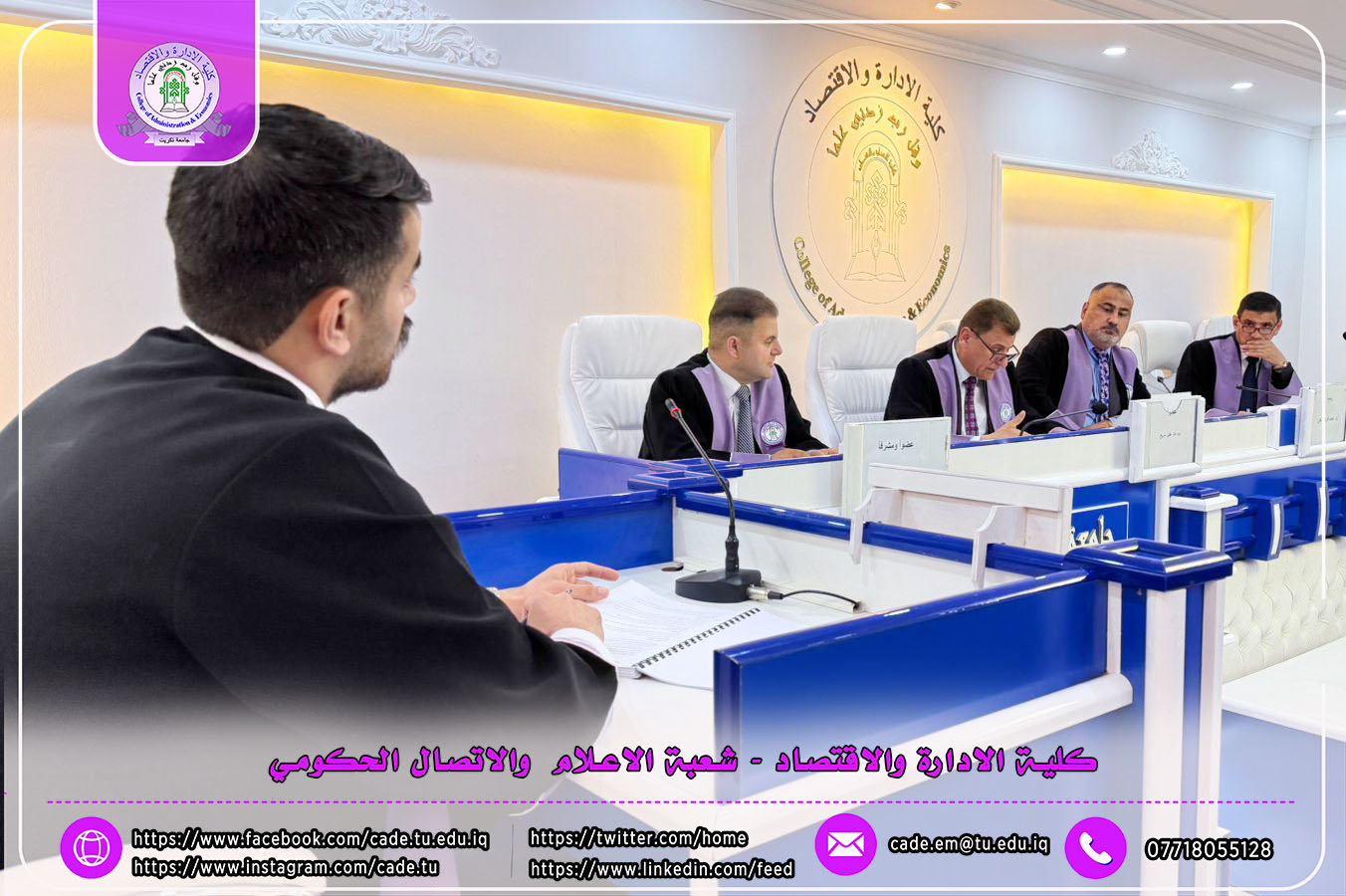 وتألفت لجنة المناقشة من ا.د. احمد فريد ناجي رئيساً وعضوية كل من ا.م.د. فائز هليل سريع، ا.م.د. مازن نعمان عبدالله، إلى جانب المشرف على الرسالة.