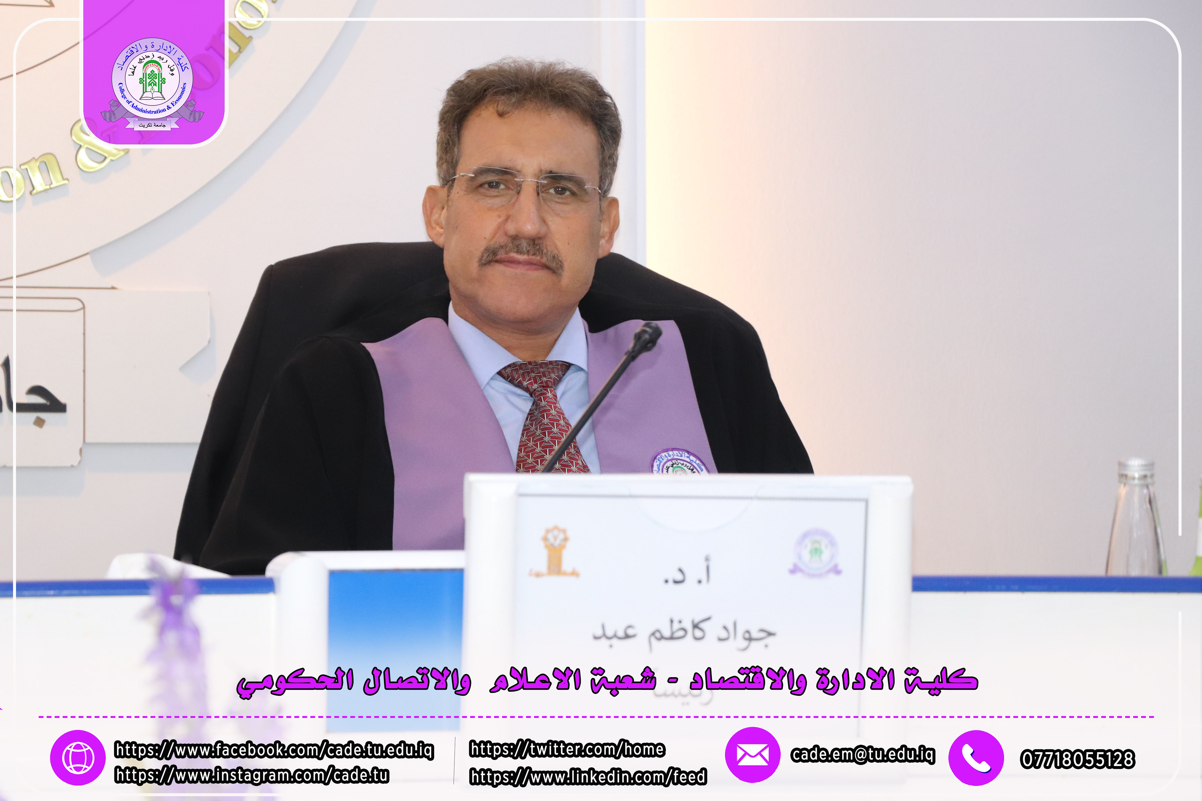 شهدت المناقشة حضور السيد عميد كلية الإدارة والاقتصاد الأستاذ المساعد الدكتور فؤاد فرحان حسين، معاون العميد للشؤون العلمية أ.م.د. خطاب عمران صالح إلى جانب عدد من السادة التدريسيين وعدد من طلبة الدراسات العليا.