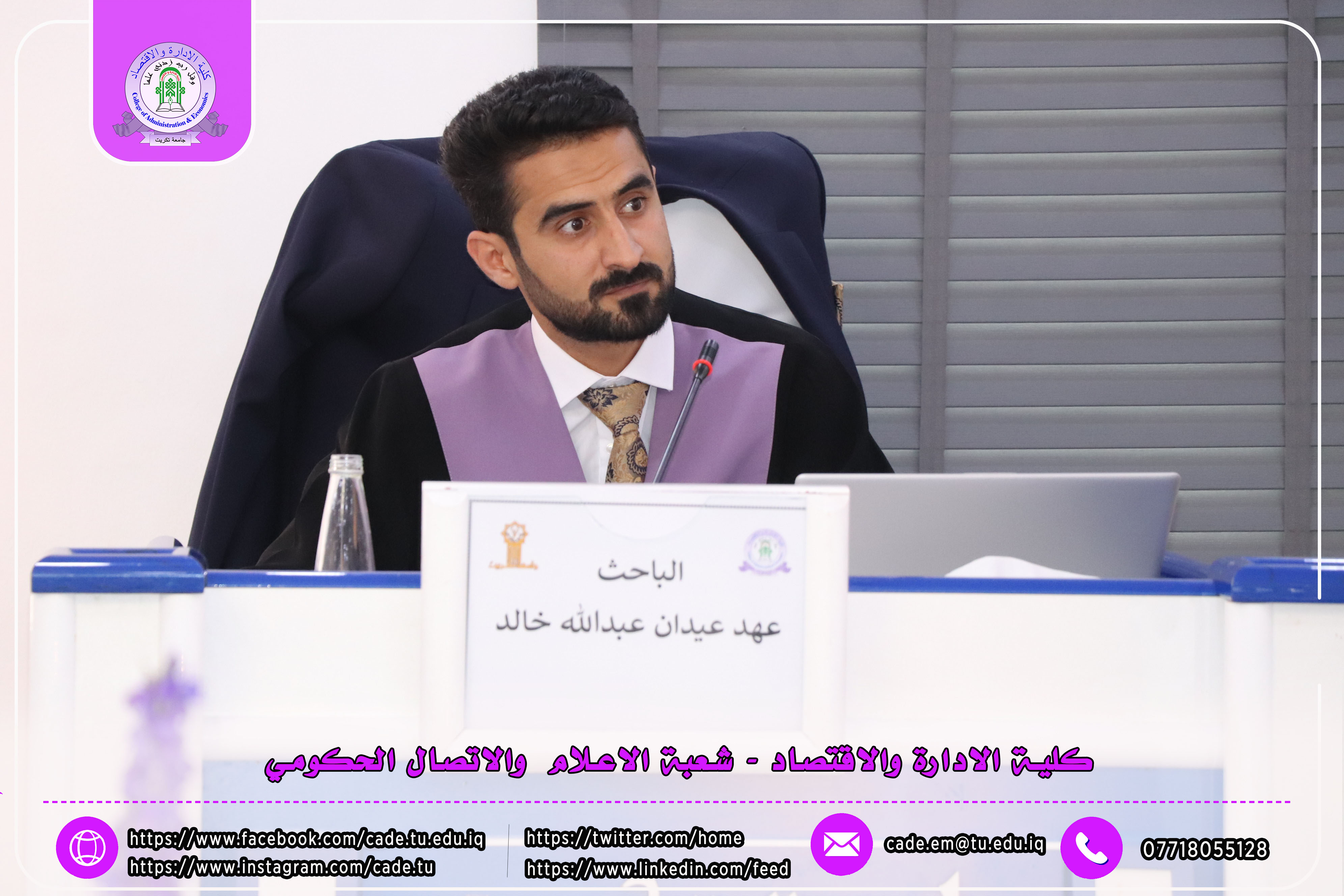 نوقشت في كلية الإدارة والاقتصاد / قسم الاقتصاد رسالة الماجستير للطالب عهد عيدان عبدالله والموسومة (ثر مديونية القطاع العائلي وقطاع الشركات في جودة الموجودات المصرفية في العراق) وذلك بإشراف الأستاذ المساعد الدكتور عمر عبدالله محمد.