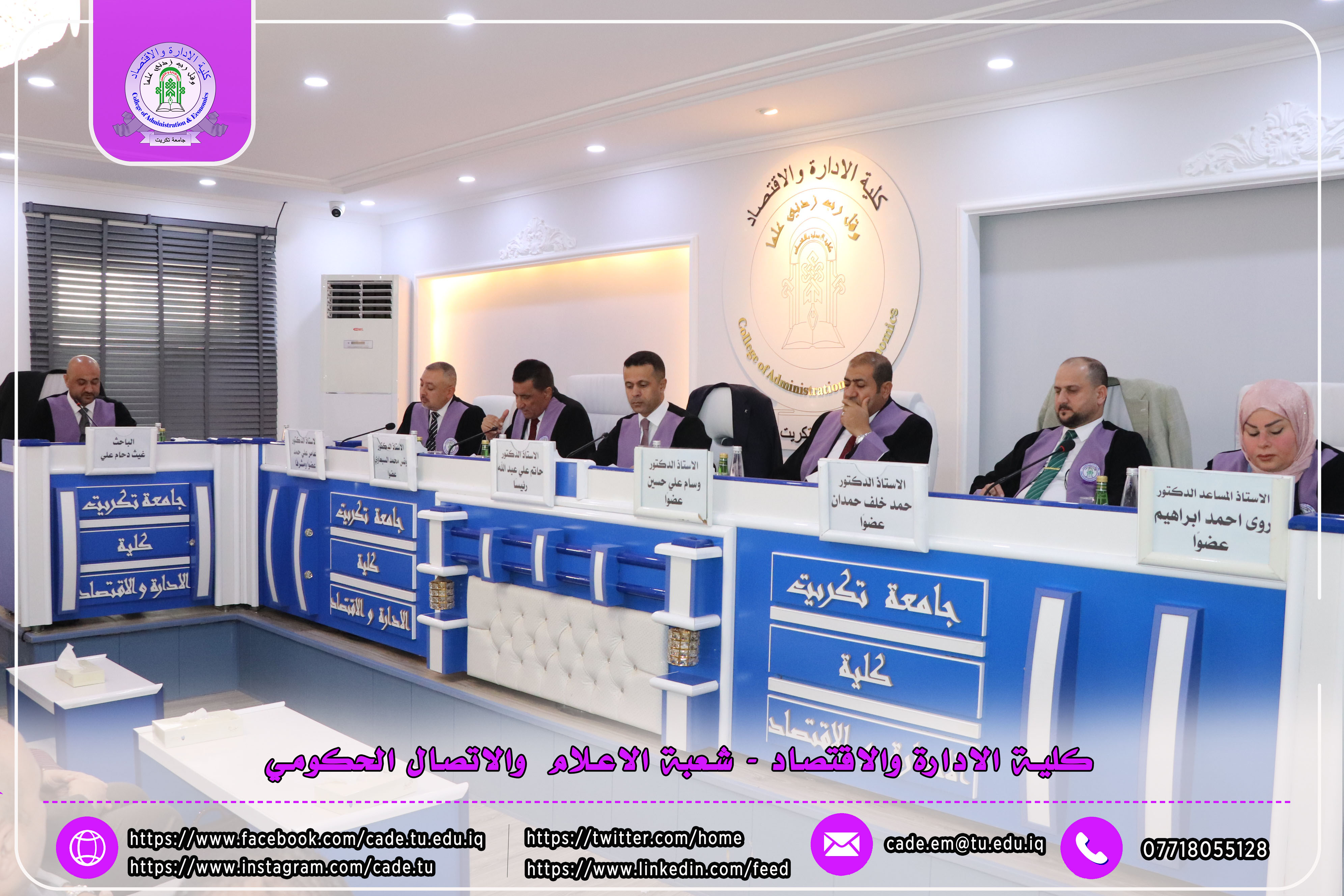 نوقشت في كلية الإدارة والاقتصاد / قسم إدارة الأعمال أطروحة الدكتوراه للطالب غيث دحام علي والموسومة: (دور المهارات الناعمة في تعزيز استراتيجية التحول الرقمي من خلال ممارسات إدارة الموارد البشرية الرقمية: دراسة تحليلية لآراء عينة من العاملين في شركات الاتصالات العراقية – آسيا سيل وزين العراق) وذلك بإشراف الأستاذ الدكتور عامر علي حمد.
