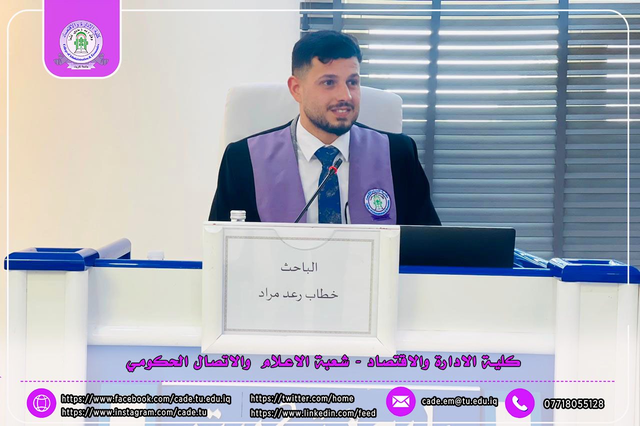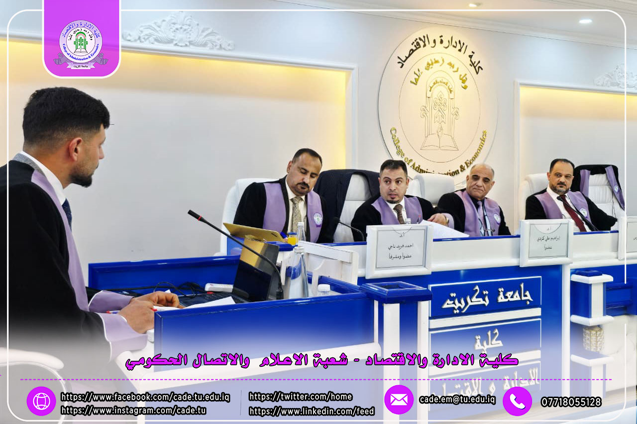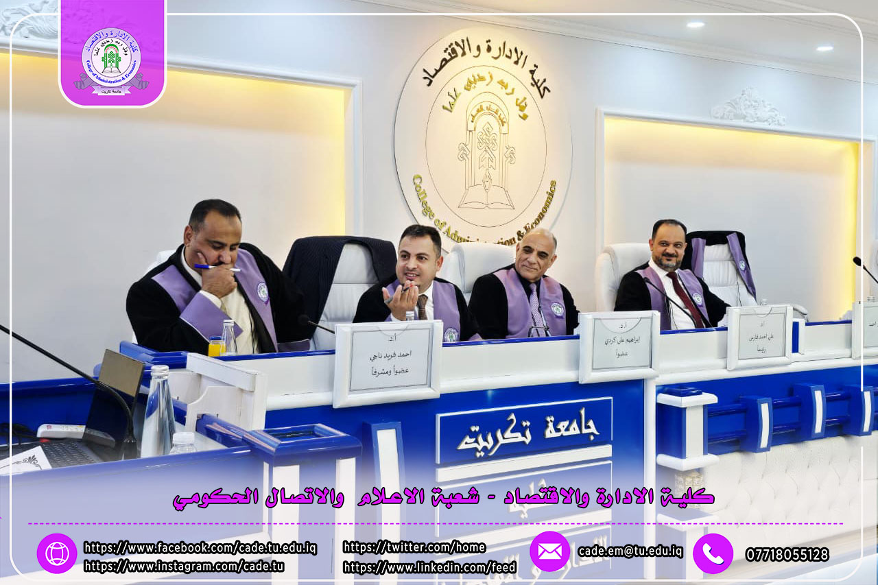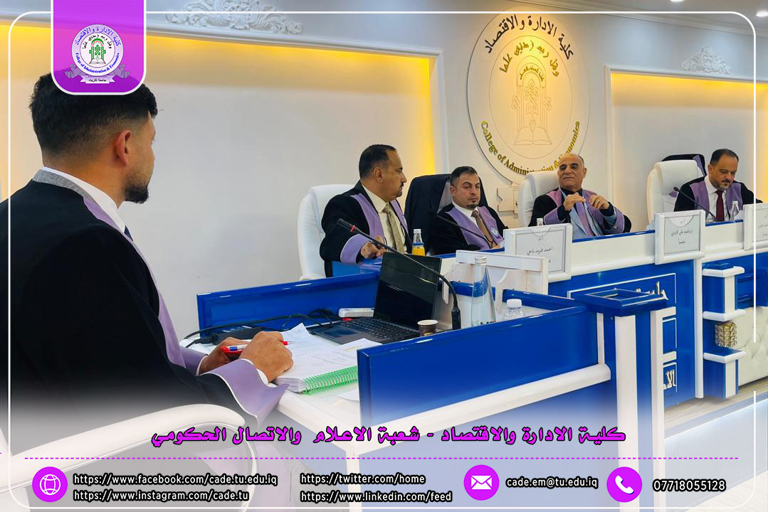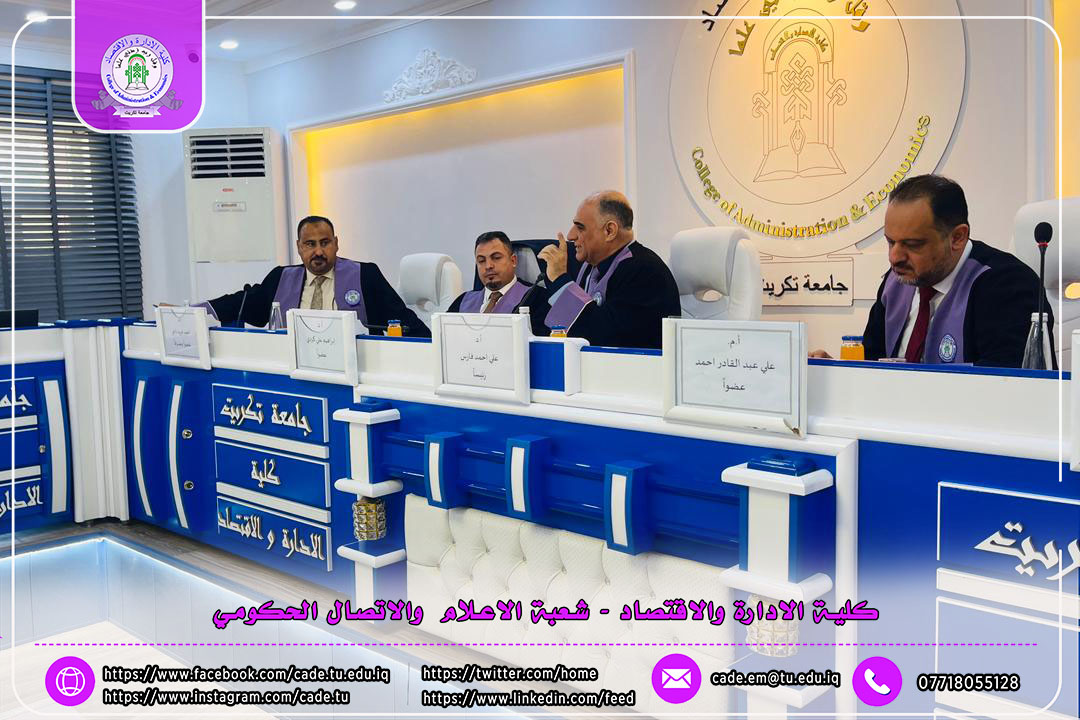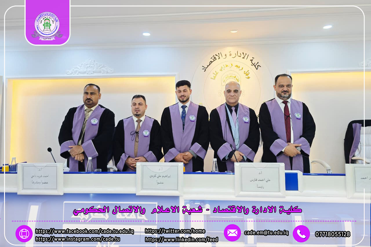 شهدت المناقشة حضور السيد معاون العميد للشؤون العلمية أ.م.د. خطاب عمران صالح إلى جانب عدد من السادة التدريسيين وعدد من طلبة الدراسات العليا.
