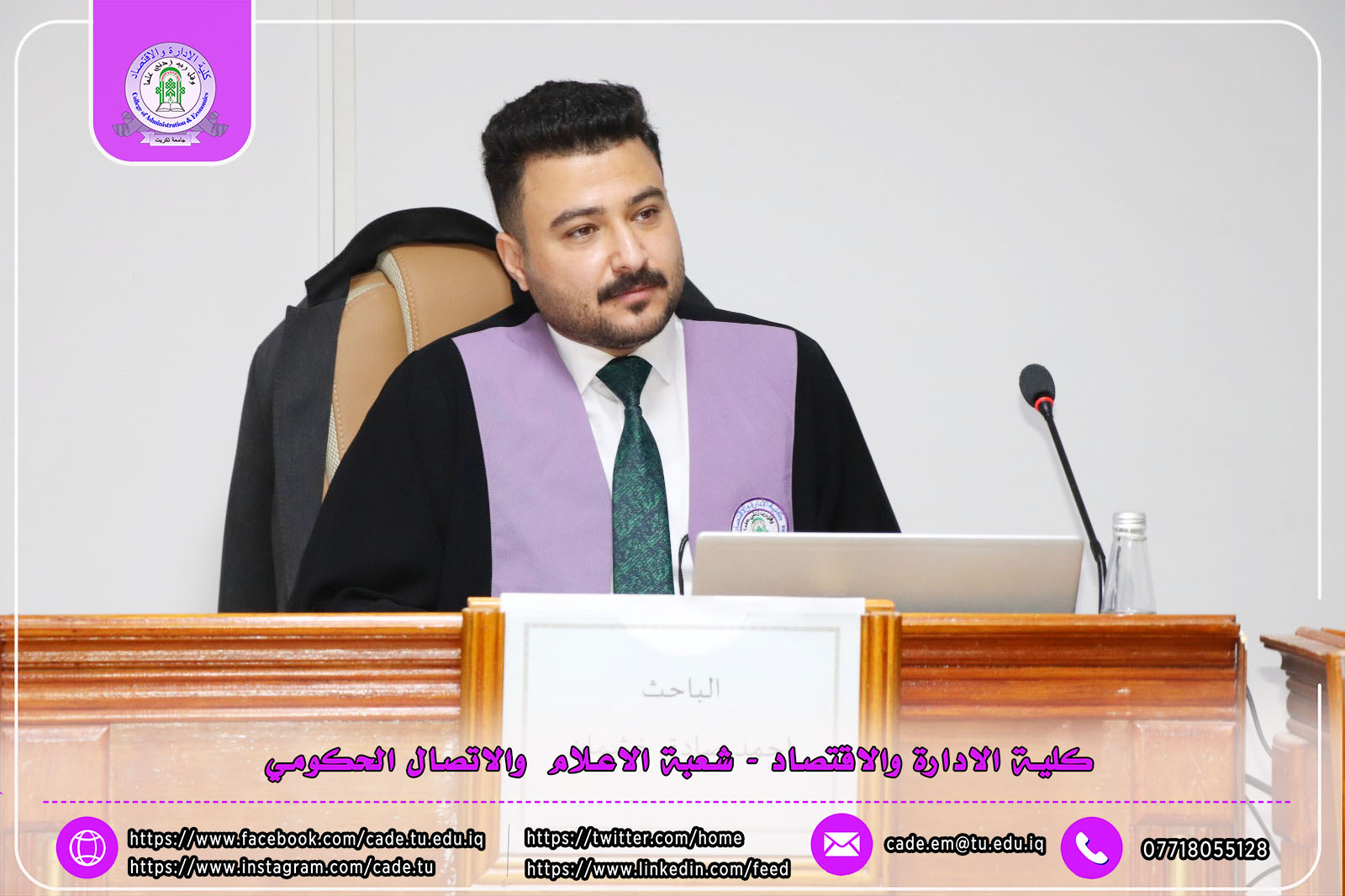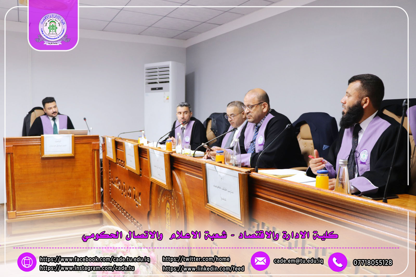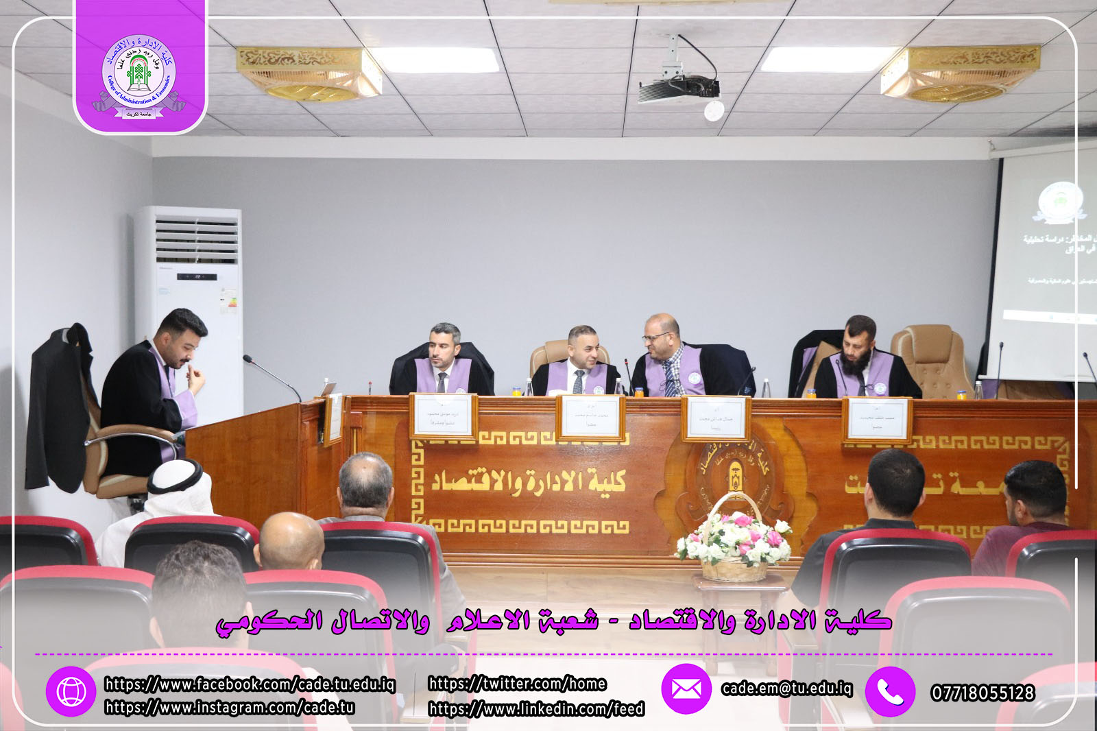 شهدت المناقشة حضور السيد معاون العميد للشؤون العلمية أ.م.د. خطاب عمران صالح إلى جانب عدد من السادة التدريسيين وعدد من طلبة الدراسات العليا.