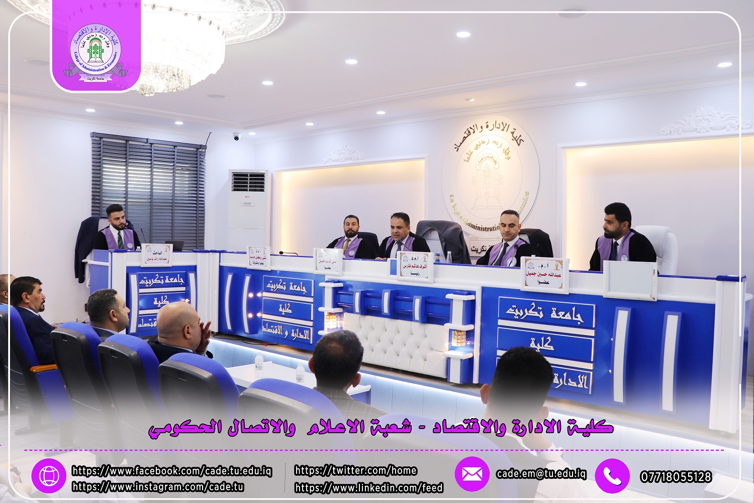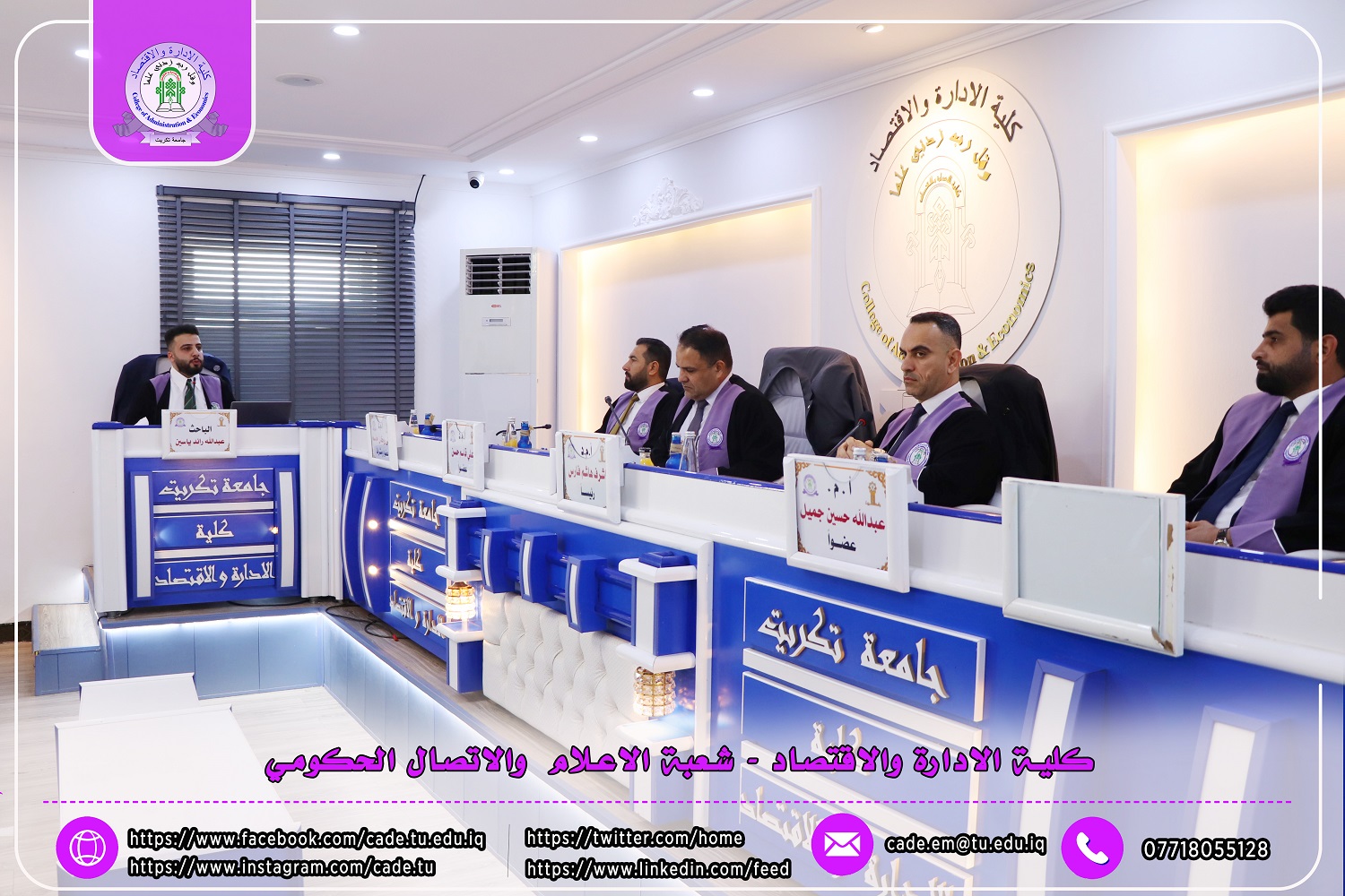 هذا وقد شهدت المناقشة حضور الاستاذ المساعد الدكتور فؤاد فرحان حسين عميد كلية الادارة والاقتصاد والاستاذ المساعد الدكتور احمد نوار نصيف معاون العميد للشؤون الاداريةوالى جانب عدد من طلبة الدراسات العليا.