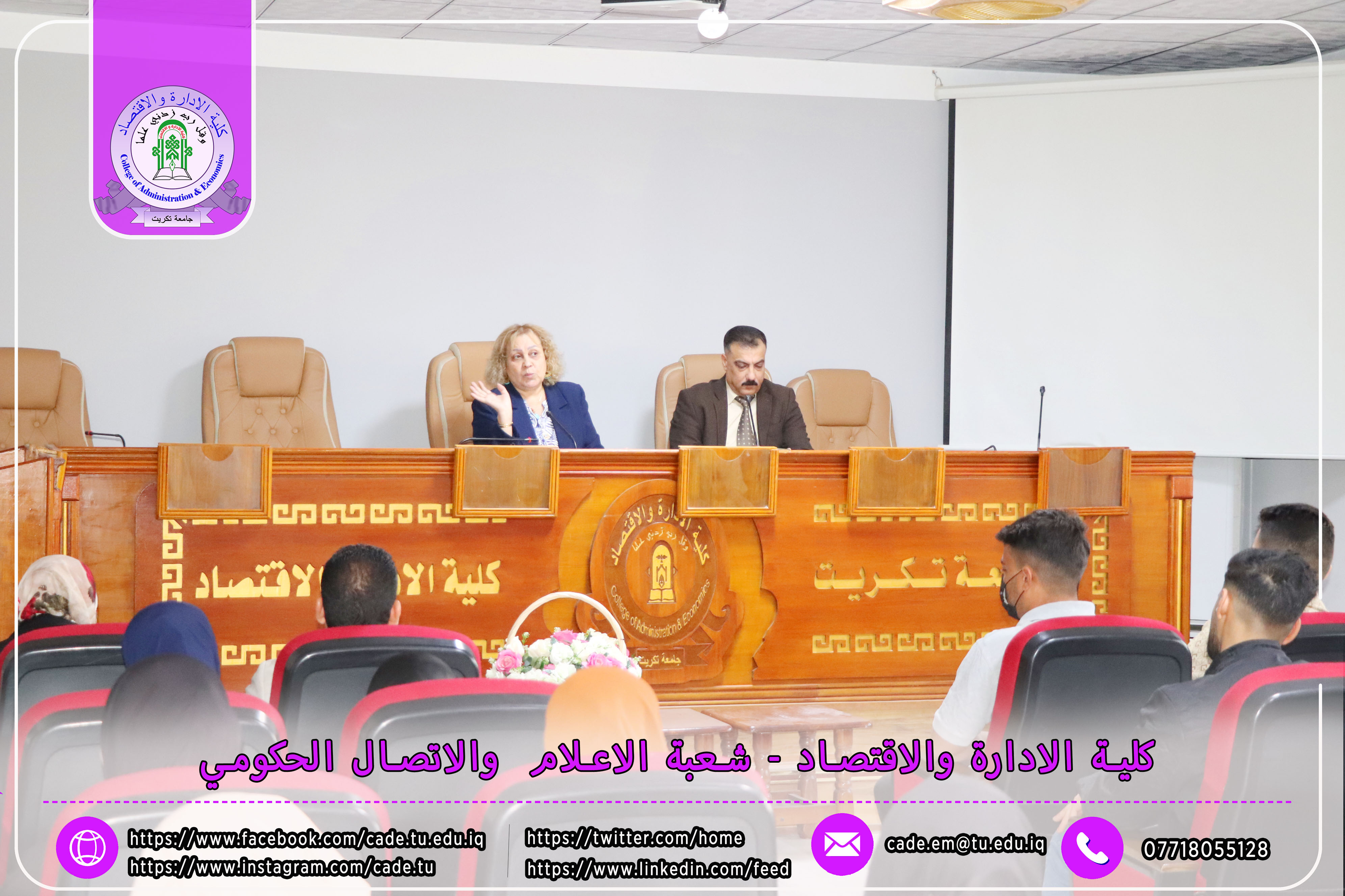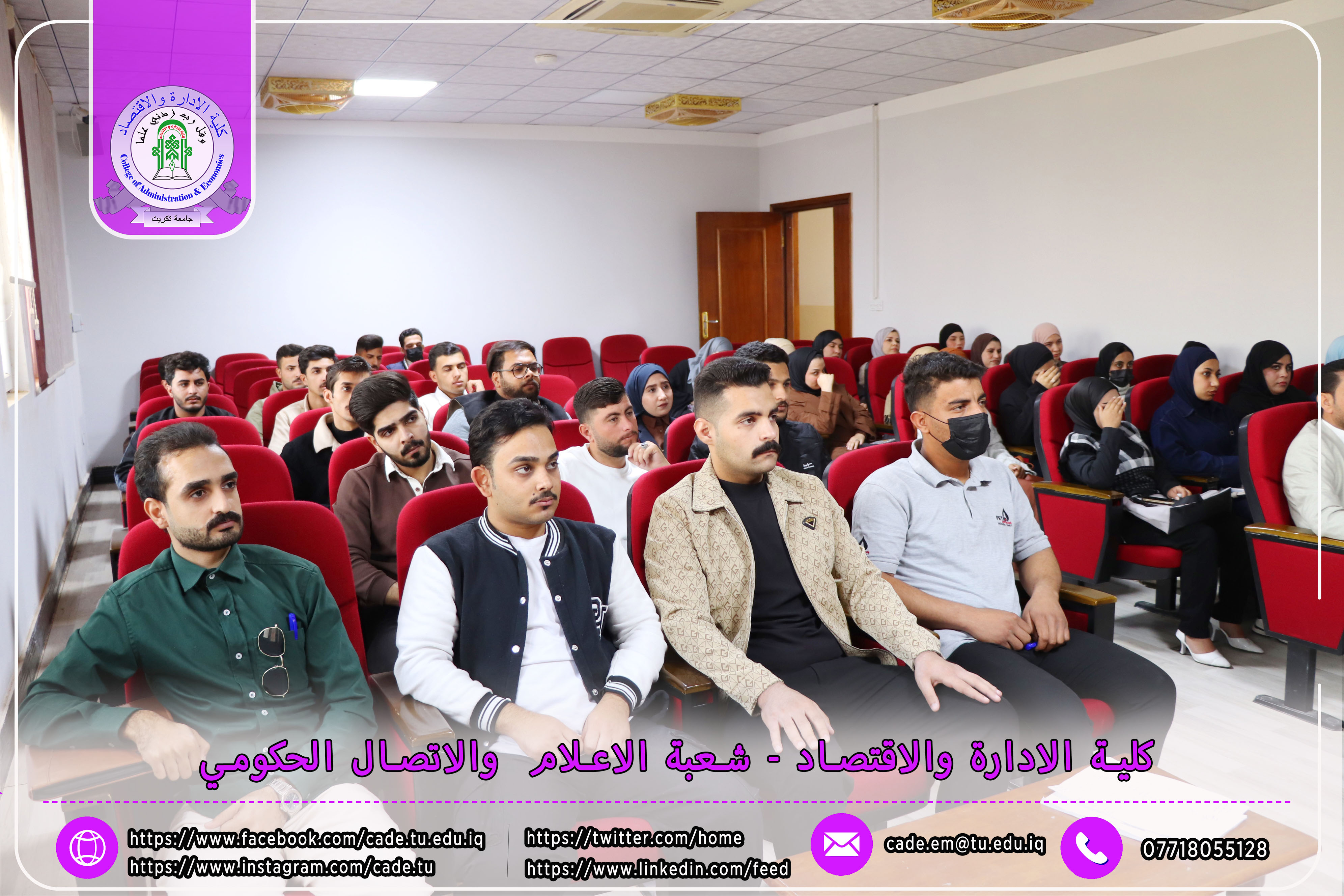 برعاية الأستاذ الدكتور وعد محمود رؤوف رئيس جامعة تكريت، وبإشراف الأستاذ المساعد الدكتور فؤاد فرحان حسين عميد كلية الإدارة والاقتصاد، نظّم قسم إدارة التسويق صباح يوم الثلاثاء الموافق 25/11/2025 ندوة علمية حملت عنوان "الكايزن في المؤسسات التعليمية"، وذلك في تمام الساعة العاشرة صباحًا على قاعة قسم إدارة الأعمال.