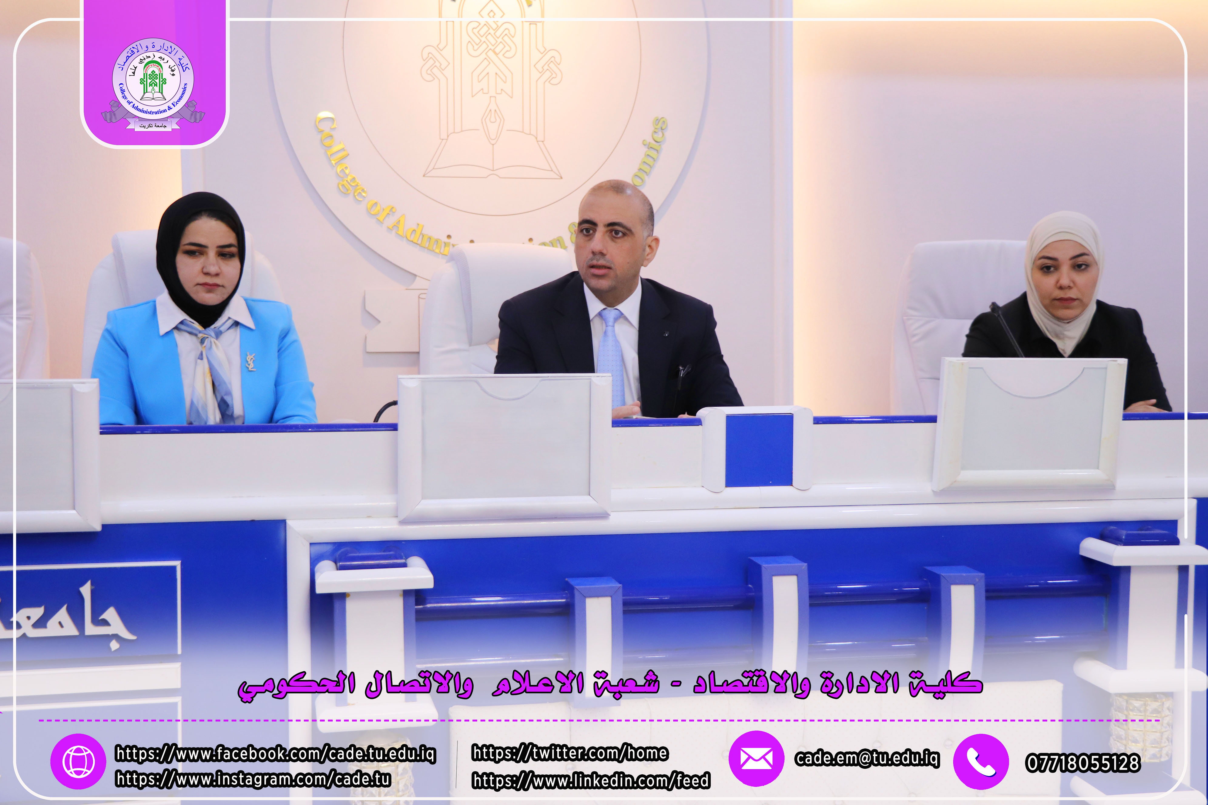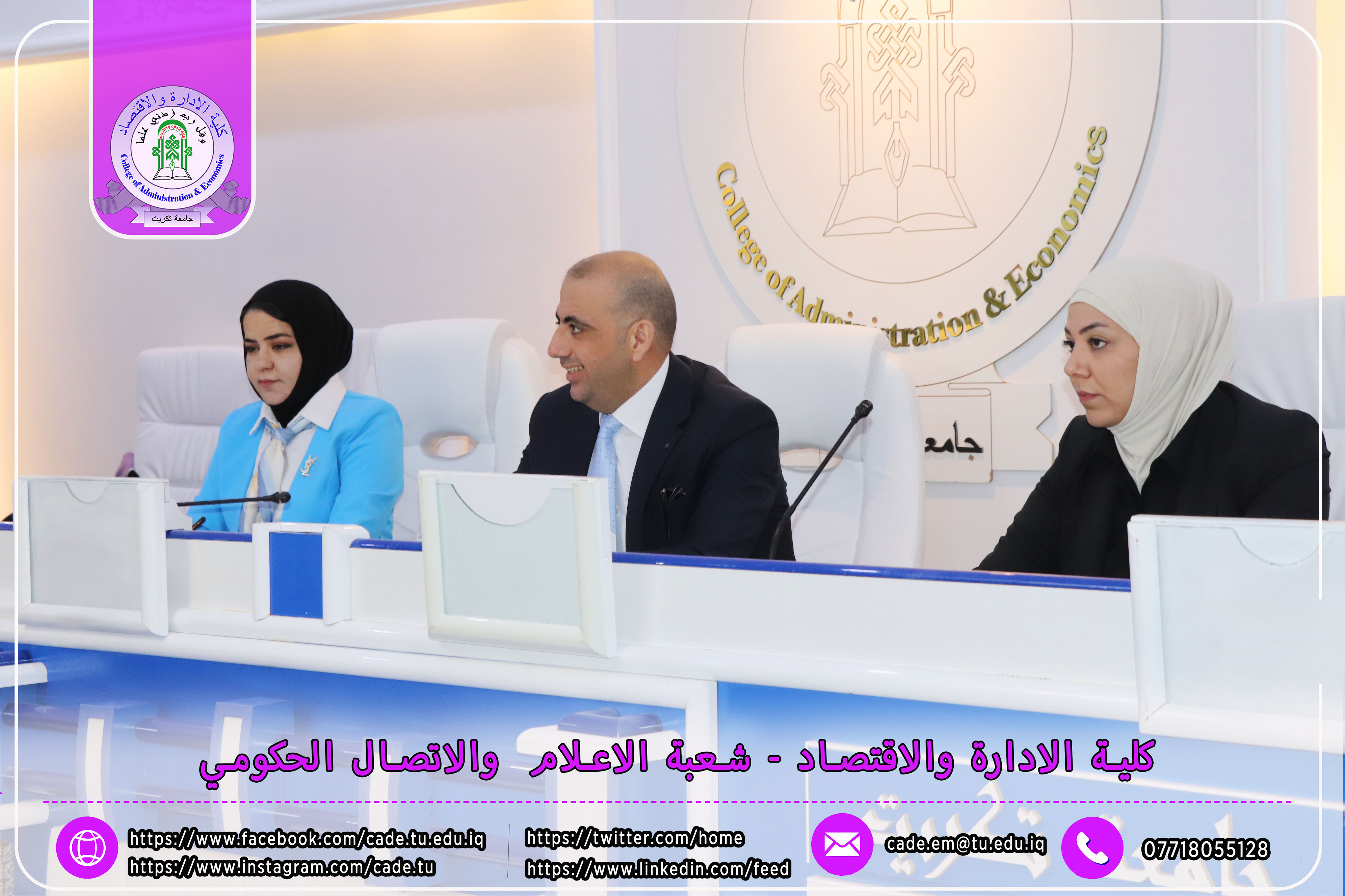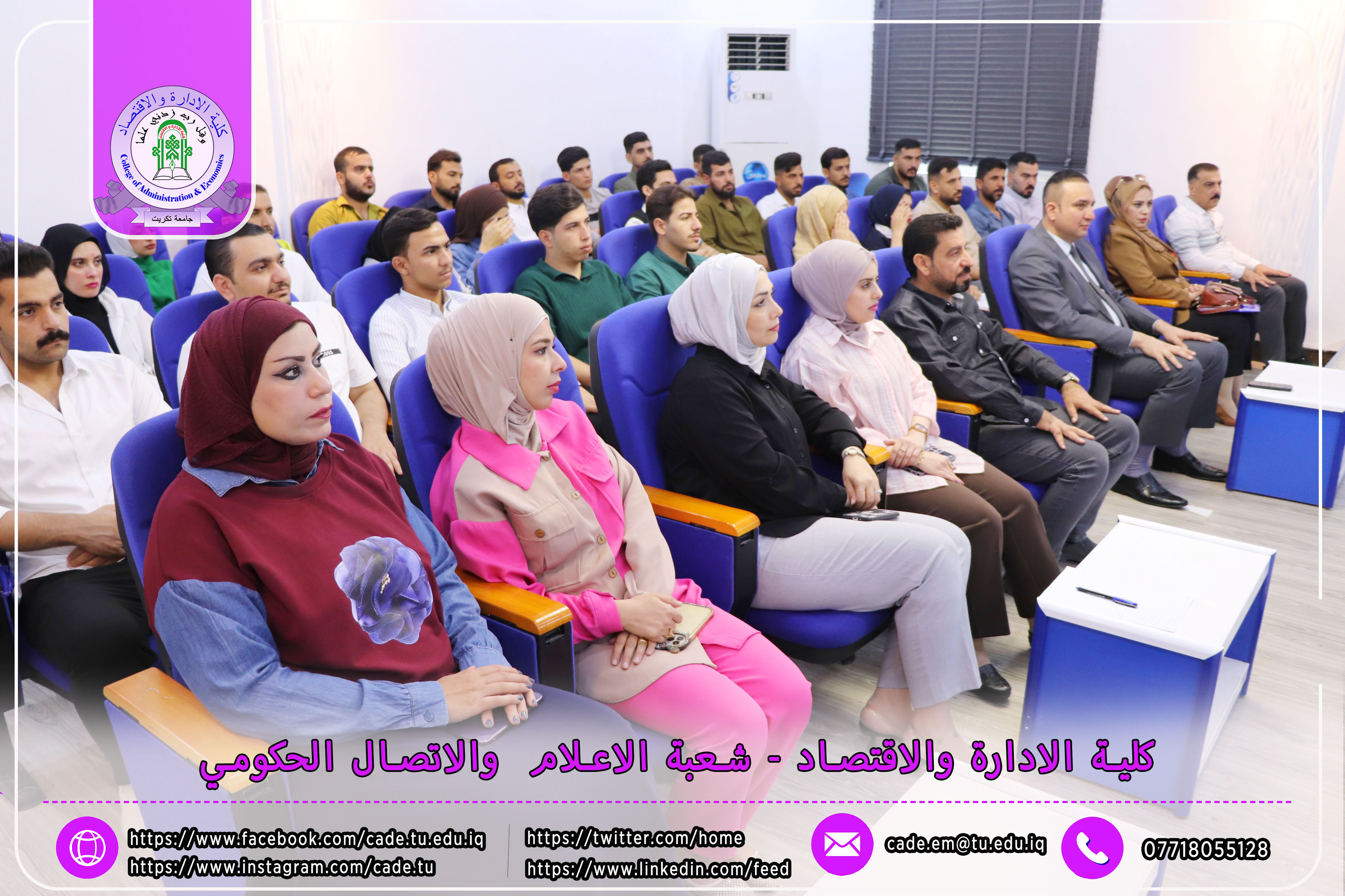 برعاية الأستاذ الدكتور وعد محمود رؤوف، رئيس جامعة تكريت، وبإشراف الأستاذ المساعد الدكتور فؤاد فرحان حسين، عميد كلية الإدارة والاقتصاد، نظّمت الكلية بالتعاون مع مركز التعليم المستمر ندوةً علميةً بعنوان "دور الذكاء الاصطناعي في تحديد سلوكيات الشراء لدى المستهلك"، وذلك يوم الثلاثاء الموافق 2025/10/21، في تمام الساعة العاشرة صباحًا على قاعة الدكتور محمد بدع.