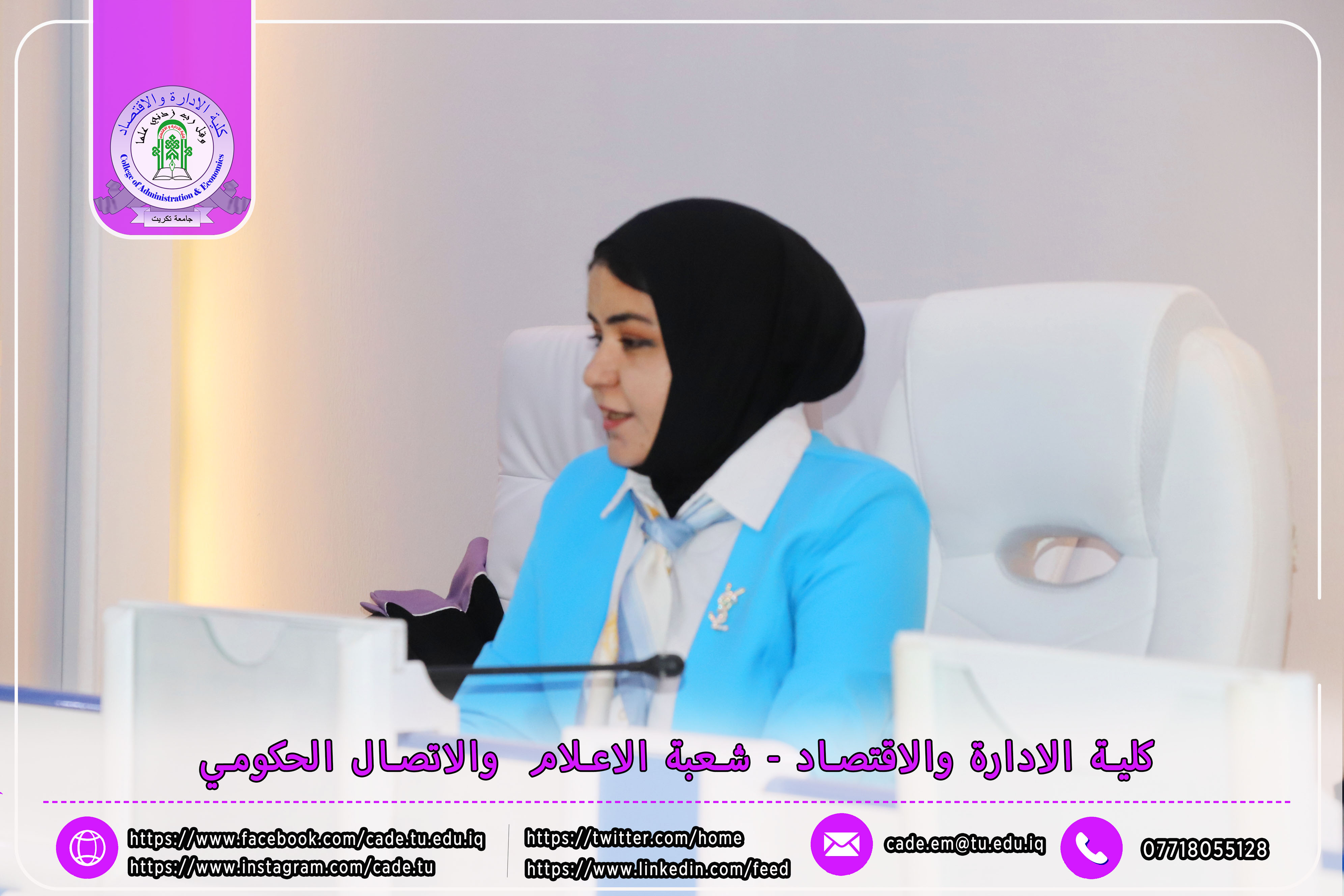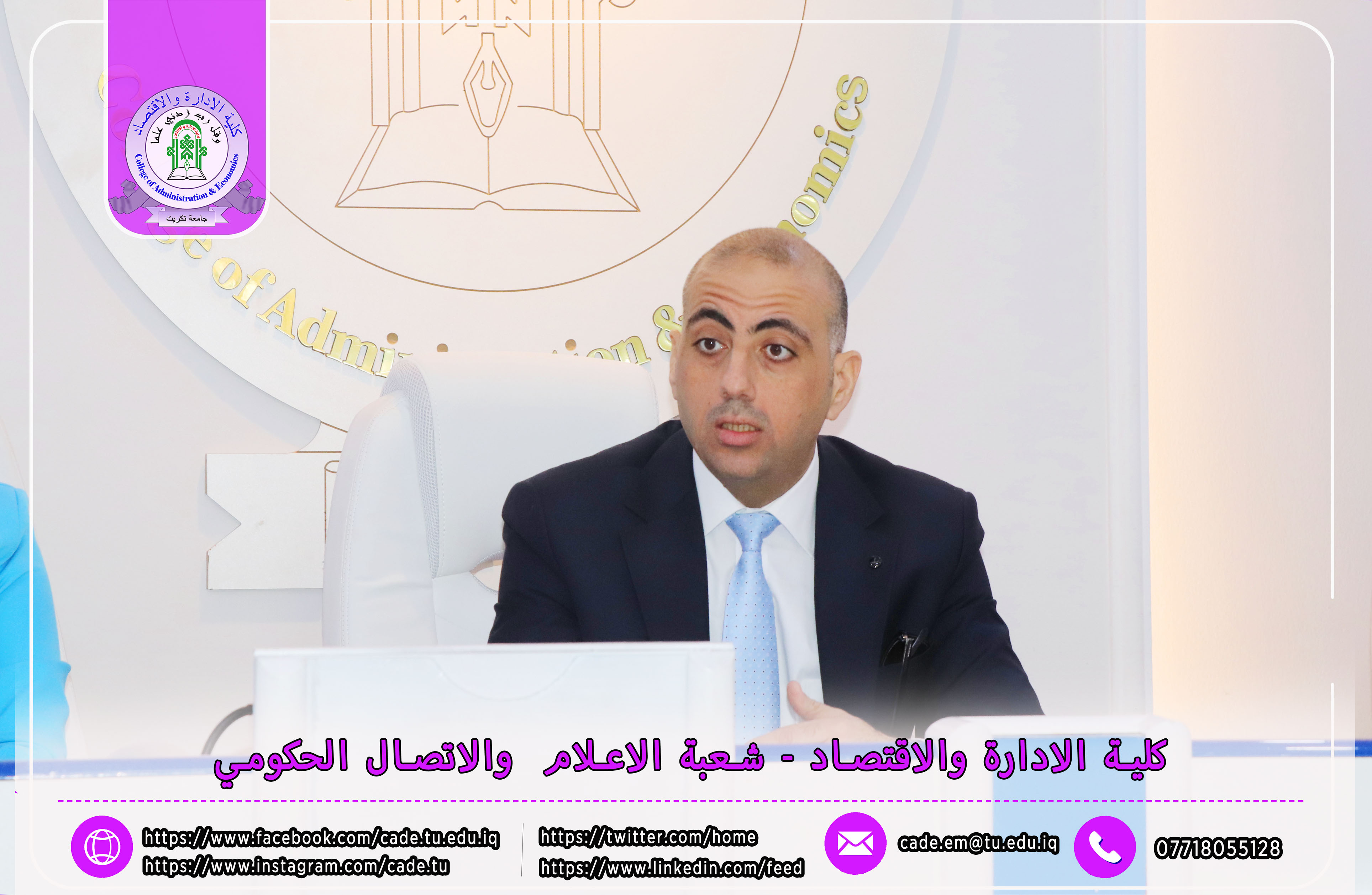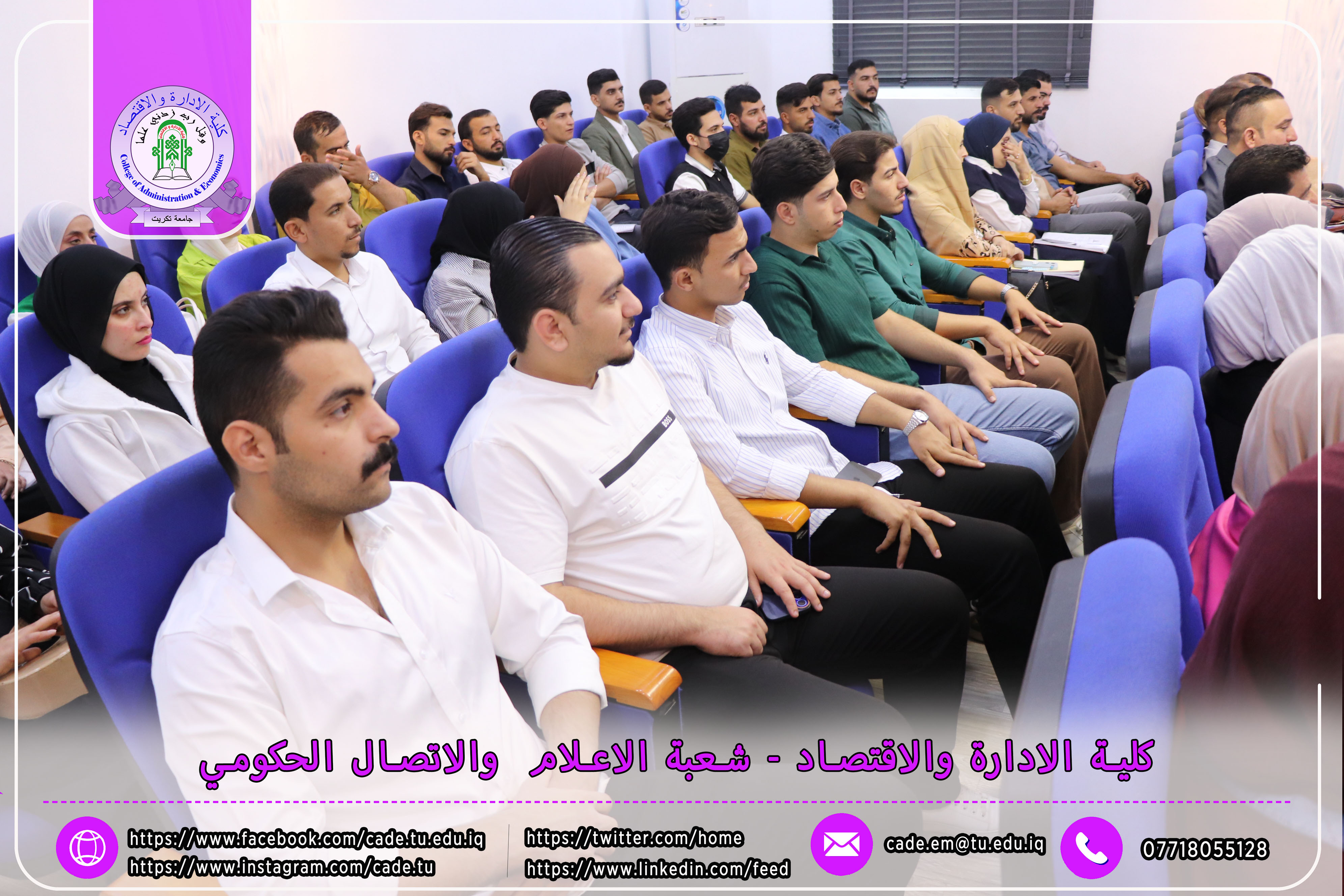 برعاية الأستاذ الدكتور وعد محمود رؤوف، رئيس جامعة تكريت، وبإشراف الأستاذ المساعد الدكتور فؤاد فرحان حسين، عميد كلية الإدارة والاقتصاد، نظّمت الكلية بالتعاون مع مركز التعليم المستمر ندوةً علميةً بعنوان "دور الذكاء الاصطناعي في تحديد سلوكيات الشراء لدى المستهلك"، وذلك يوم الثلاثاء الموافق 2025/10/21، في تمام الساعة العاشرة صباحًا على قاعة الدكتور محمد بدع.