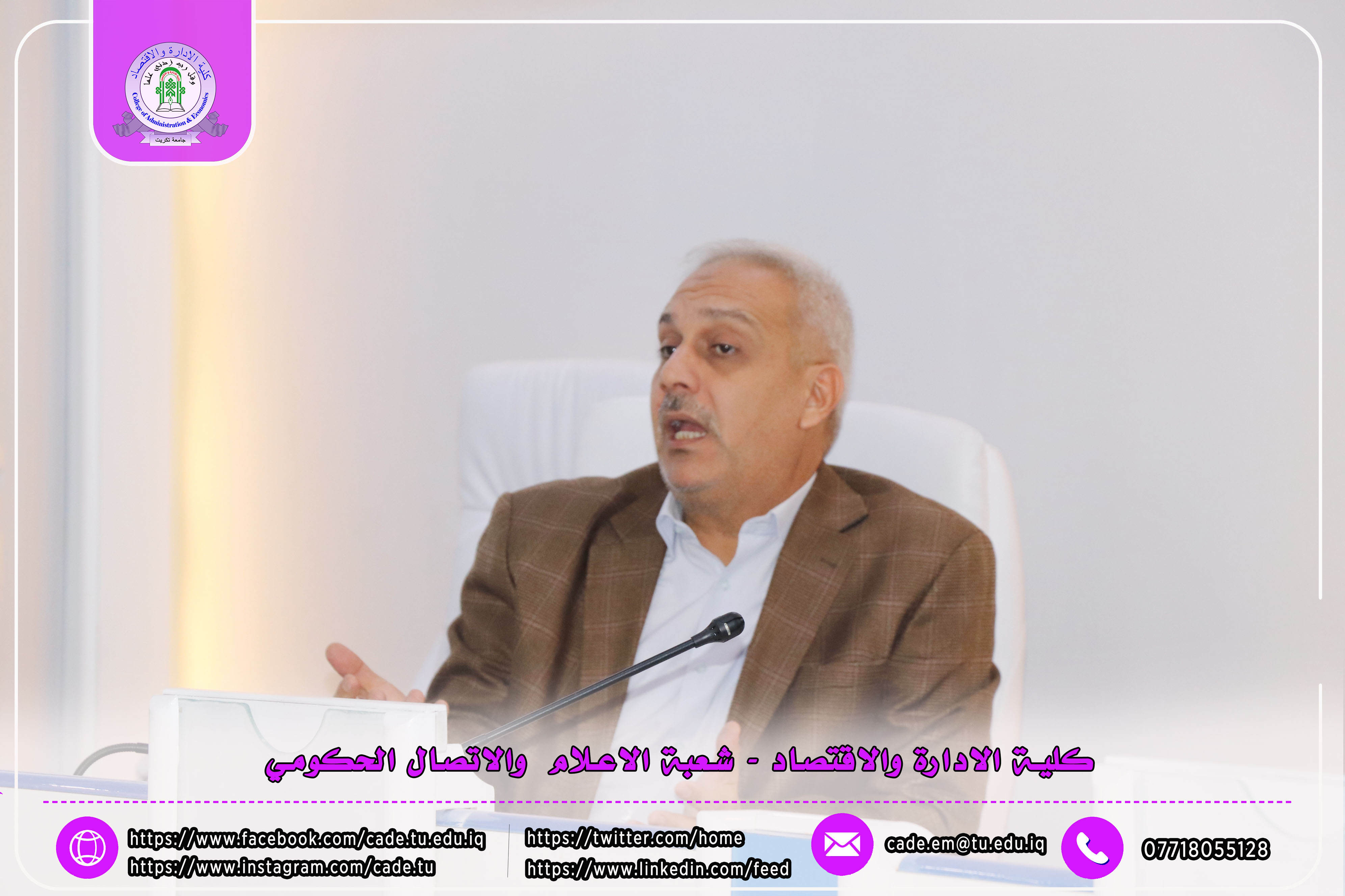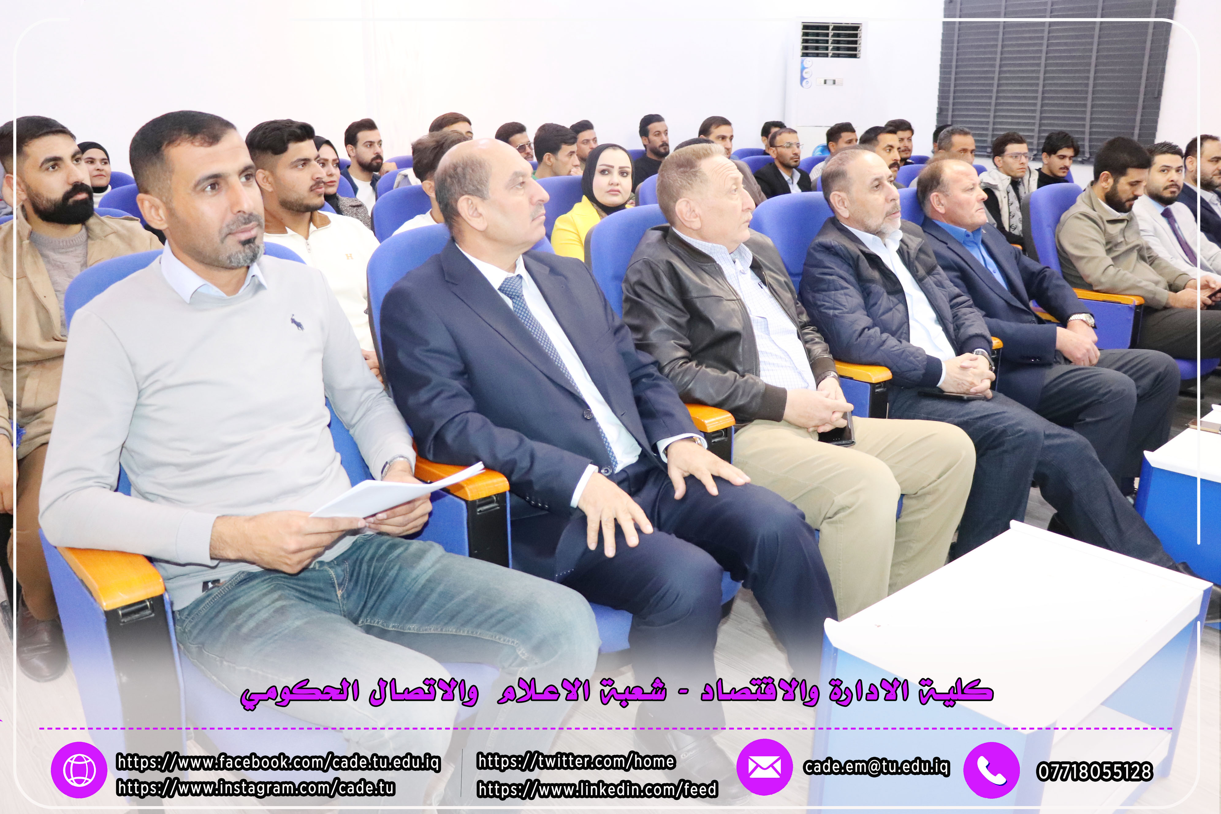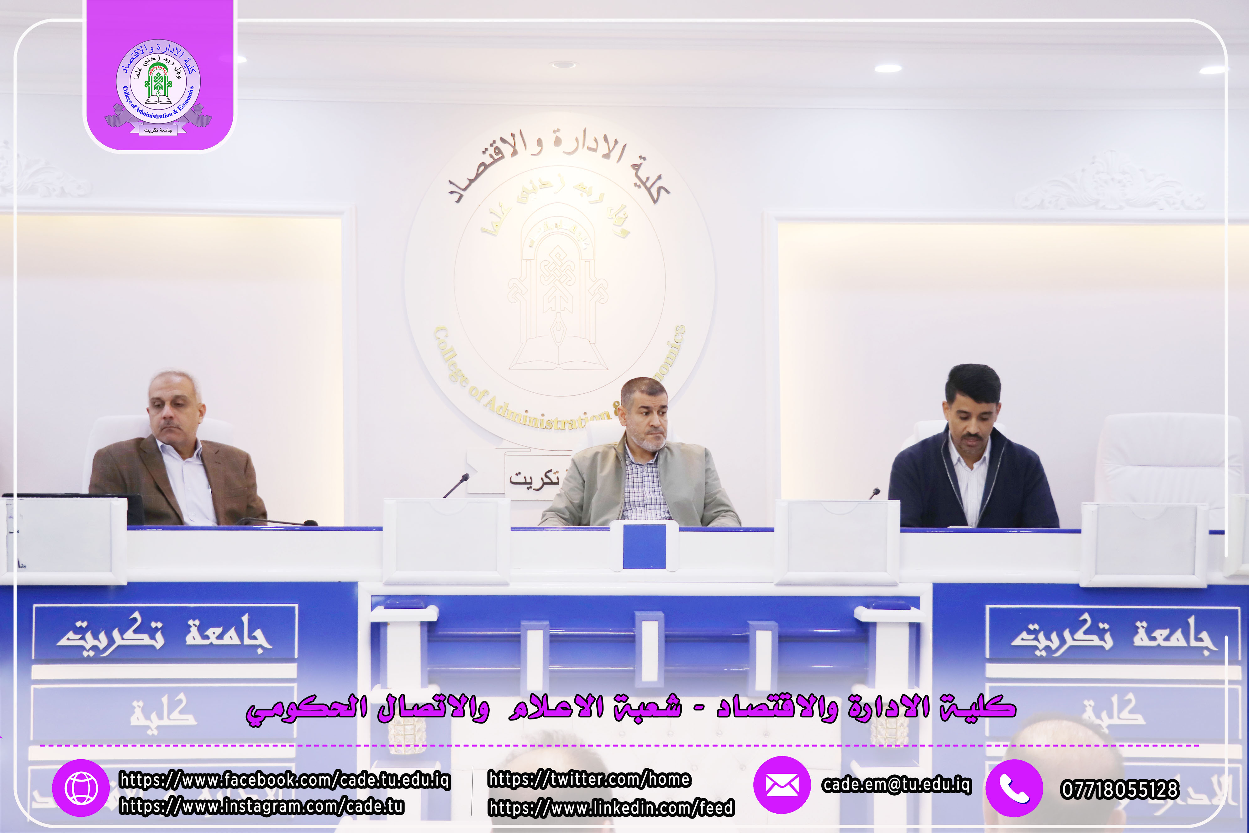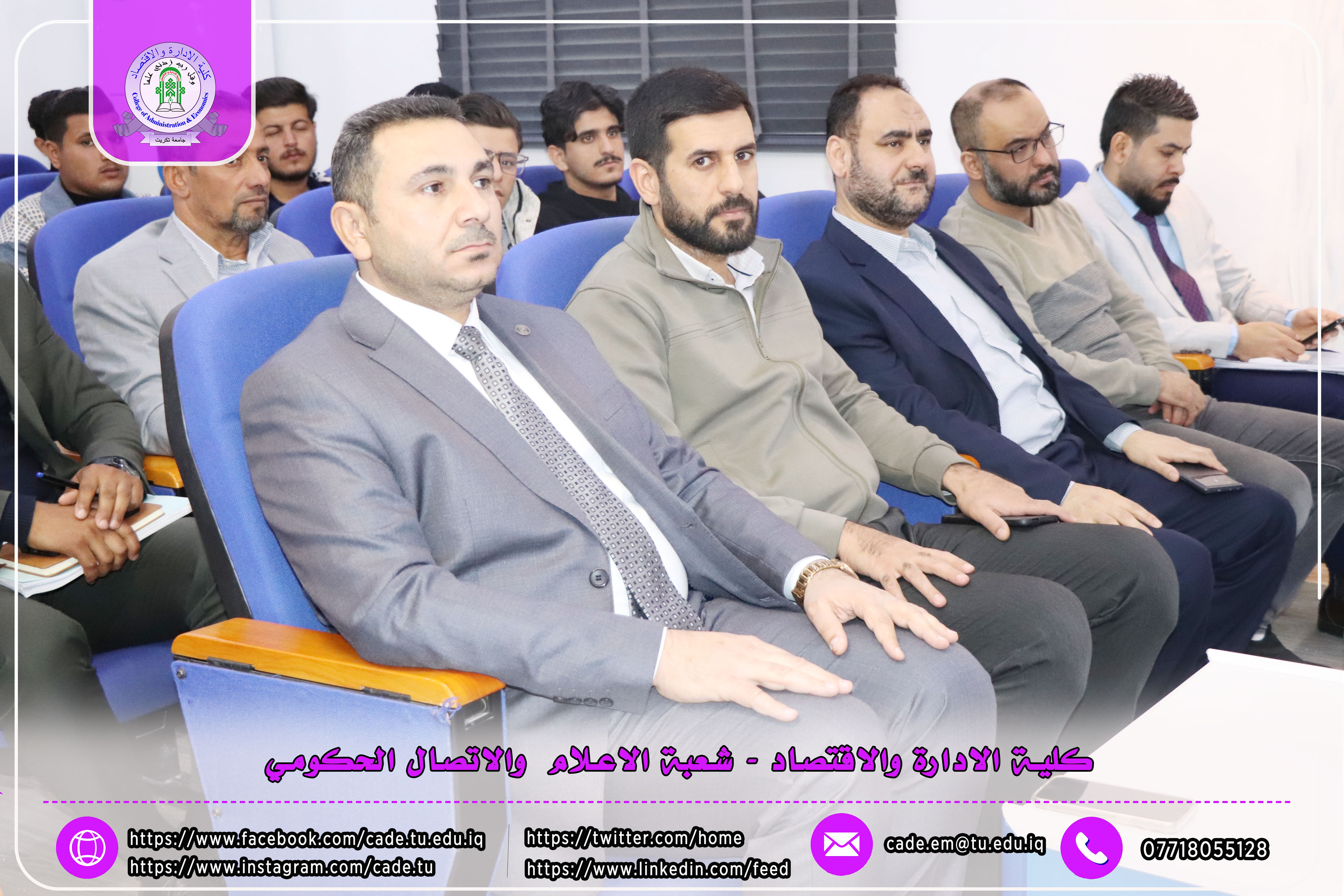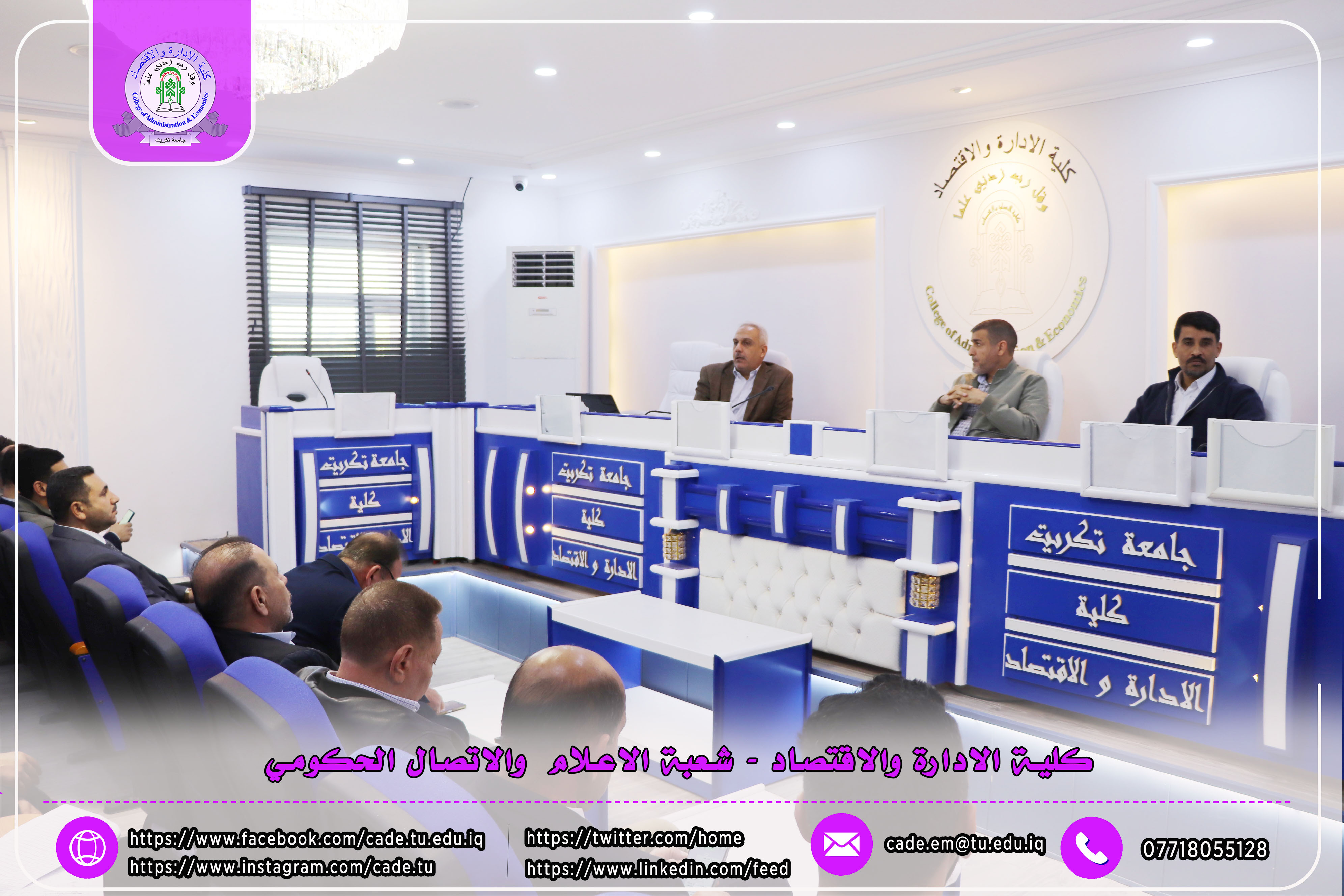 برعاية الأستاذ الدكتور وعد محمود رؤوف رئيس جامعة تكريت، وبإشراف كلٍّ من الأستاذ المساعد الدكتور فؤاد فرحان حسين عميد كلية الإدارة والاقتصاد، والأستاذ المساعد الدكتور سياف عبد حسين مدير مركز التعليم المستمر، نظّمت عمادة الكلية وبالتعاون مع مركز التعليم المستمر أعمال دورة علمية حضورية بعنوان ( الاقتصاد السلوكي وصناعة السياسات العامة في العصر الرقمي )، وذلك يوم الأربعاء الموافق 4/12/2025، في تمام الساعة العاشرة صباحاً، على قاعة الدكتور محمد بدع.