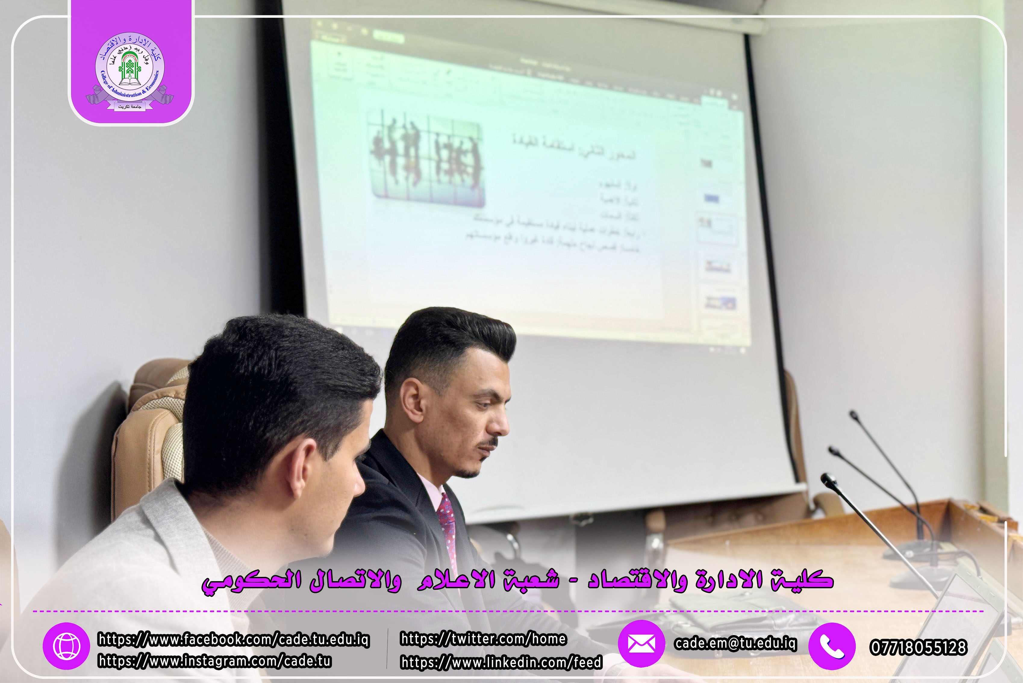 برعاية الأستاذ الدكتور وعد محمود رؤوف رئيس الجامعة، وبإشراف الأستاذ المساعد الدكتور فؤاد فرحان حسين عميد الكلية، والأستاذ المساعد الدكتور سياف عبد حسين مدير مركز التعليم المستمر. أقامت كلية الإدارة والاقتصاد / وحدة التعليم المستمر، وبالتعاون مع مركز التعليم المستمر، فعاليات الدورة يومي الأربعاء والخميس الموافق 26-25 /2026/2دورة علمية بعنوان "دور استقامة القيادة في الحد من استنزاف الموارد البشرية"،