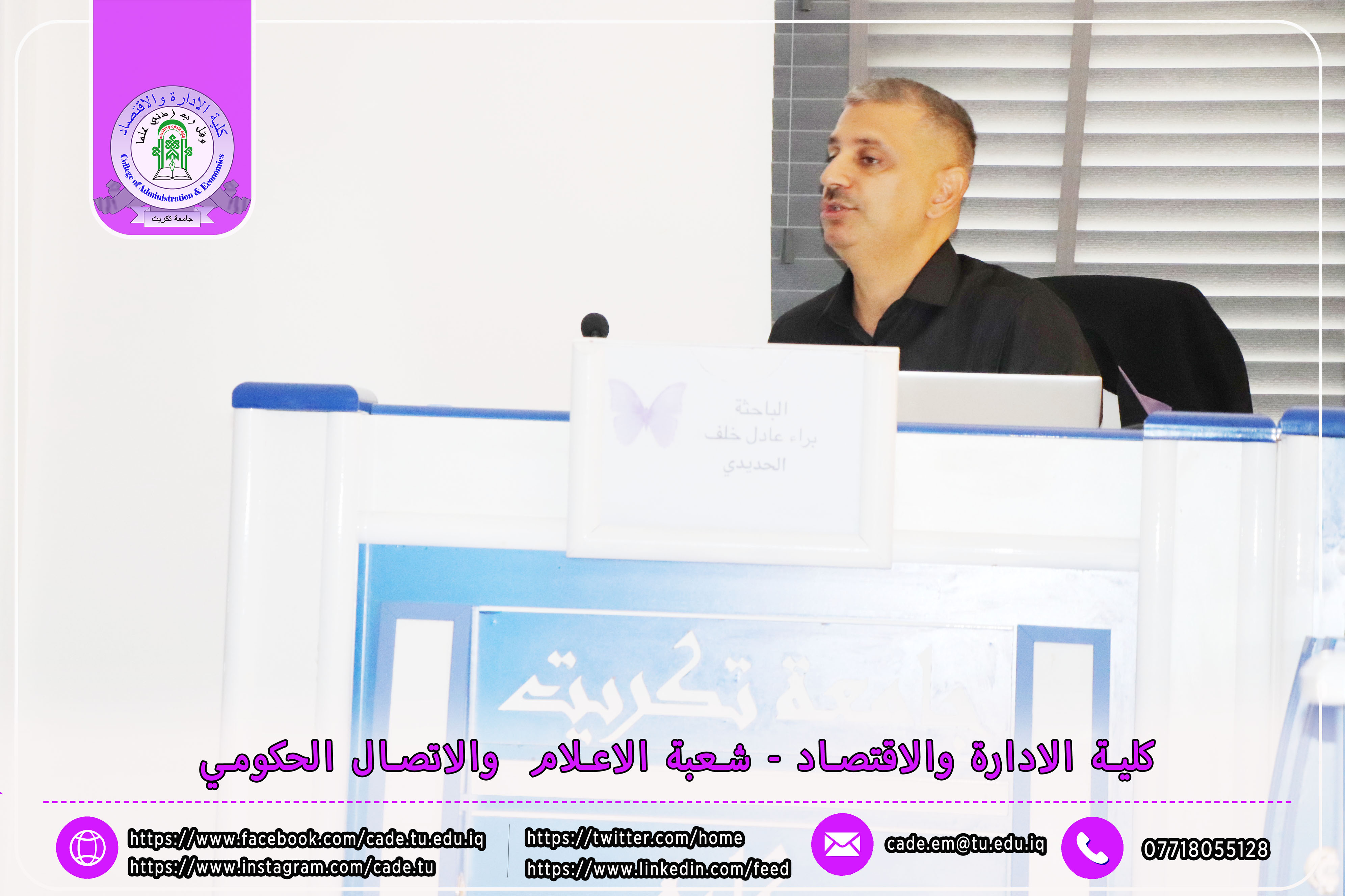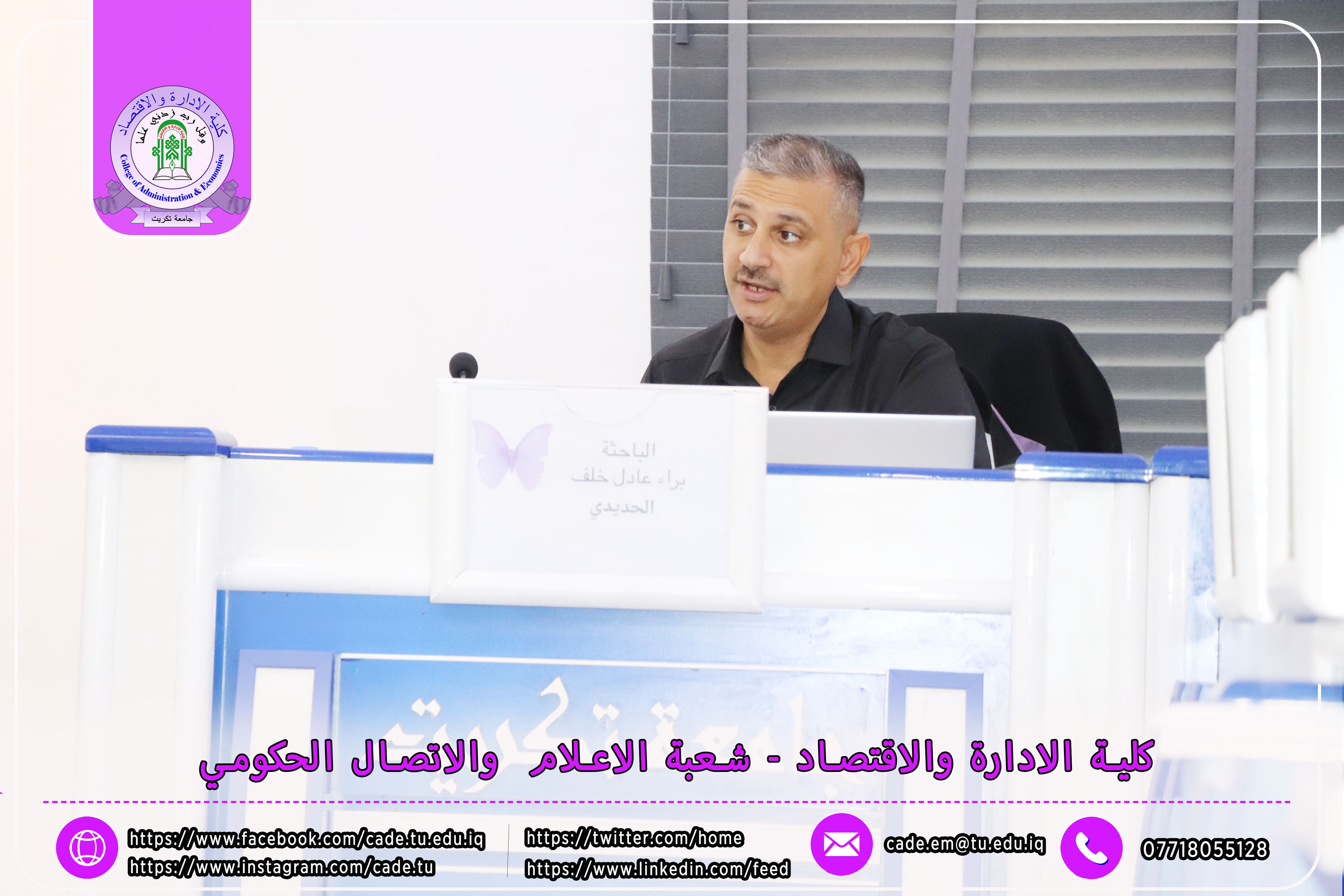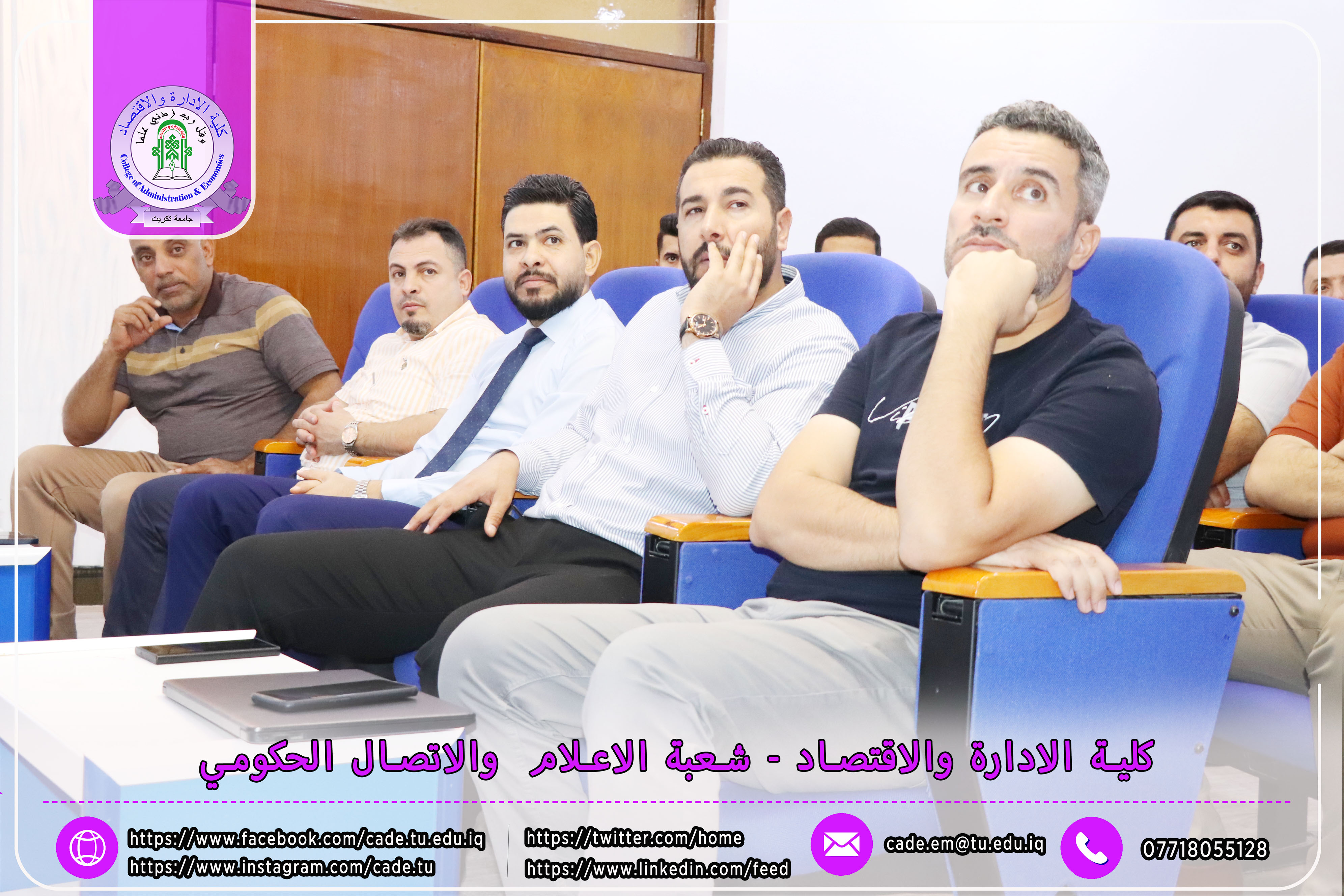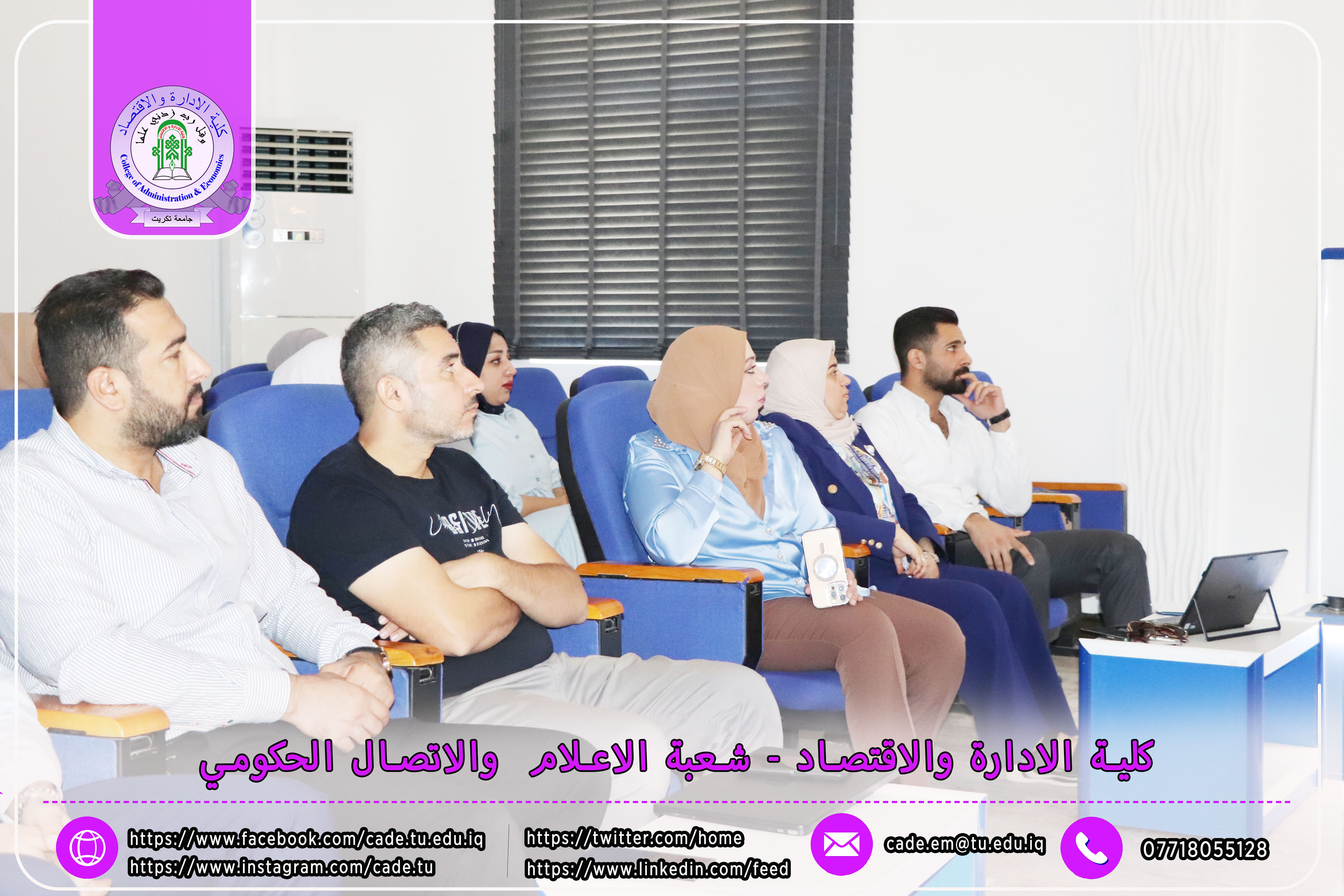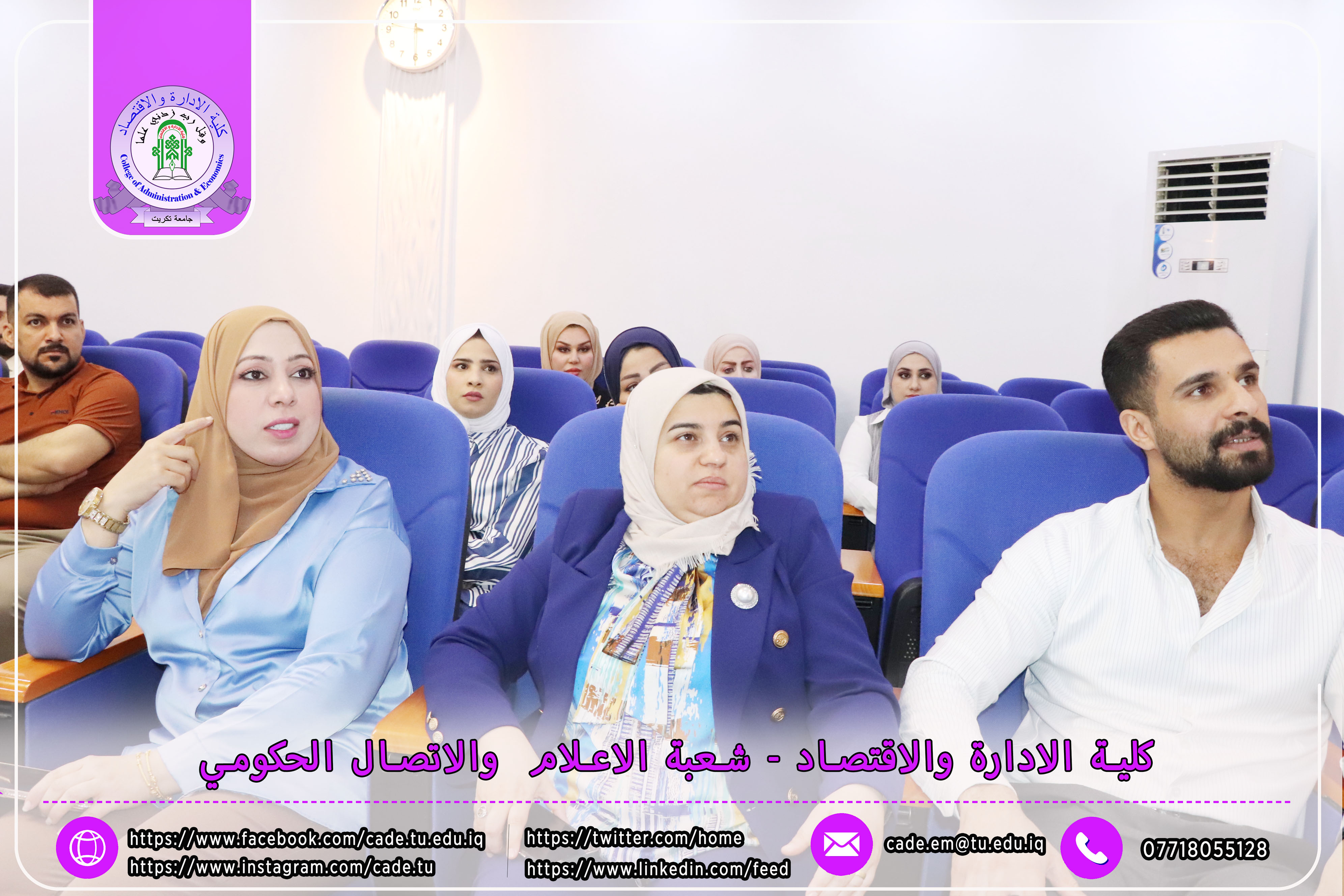 برعاية الأستاذ الدكتور وعد محمود رؤوف، رئيس جامعة تكريت، وبإشراف الأستاذ المساعد الدكتور فؤاد فرحان حسين، عميد كلية الإدارة والاقتصاد، نظّمت وحدة التأهيل والتوظيف والمتابعة في الكلية دورة تطويرية بعنوان "متطلبات وثائق الجودة في المؤسسات التعليمية"، وذلك يوم الثلاثاء الموافق 6 / 5 / 2025، على قاعة الدكتور محمد بدع.