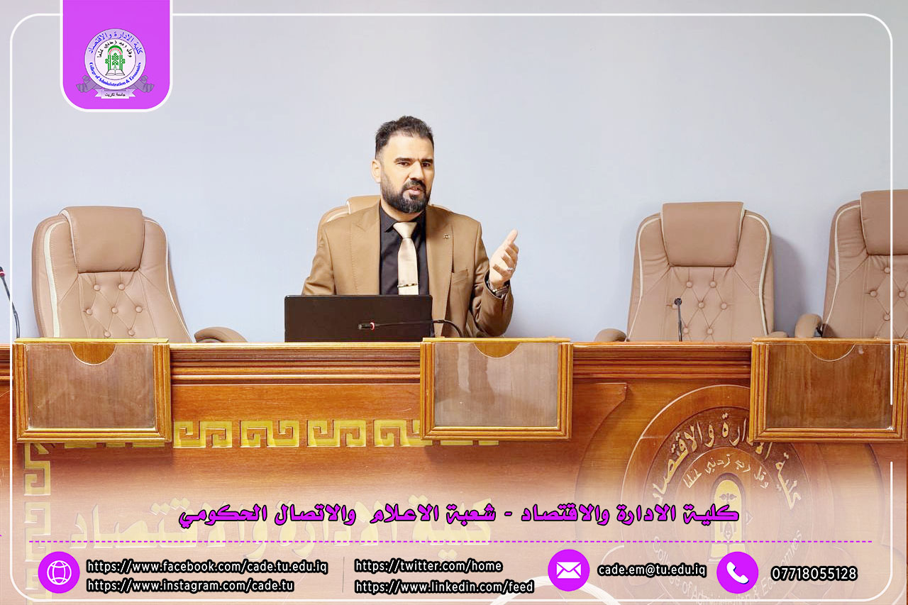 برعاية الأستاذ الدكتور وعد محمود رؤوف، رئيس جامعة تكريت، وإشراف الأستاذ المساعد الدكتور فؤاد فرحان حسين، عميد كلية الإدارة والاقتصاد وبمناسبة فعاليات الأسبوع العالمي لريادة الأعمال للعام الدراسي 2025/2026 نظمت وحدة الحاضنة التكنولوجية، ندوة علمية حضورية بعنوان ( التكامل بين ريادة الاعمال والتنمية الاقتصادية )، انعقدت الندوة على قاعة قسم ادارة الاعمال، وتم تقديم الندوة من قبل ا.م.د. زياد عزالدين طه.