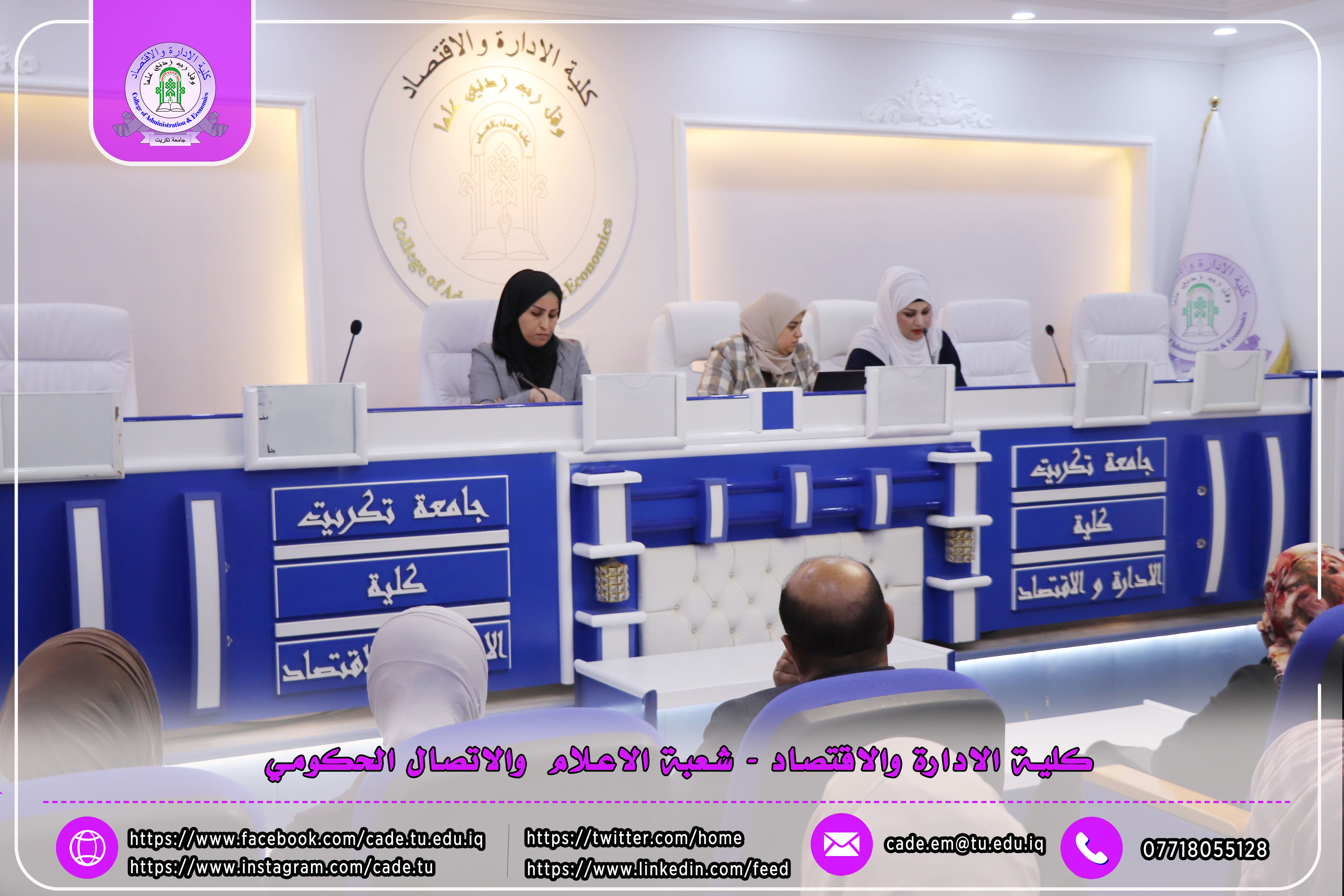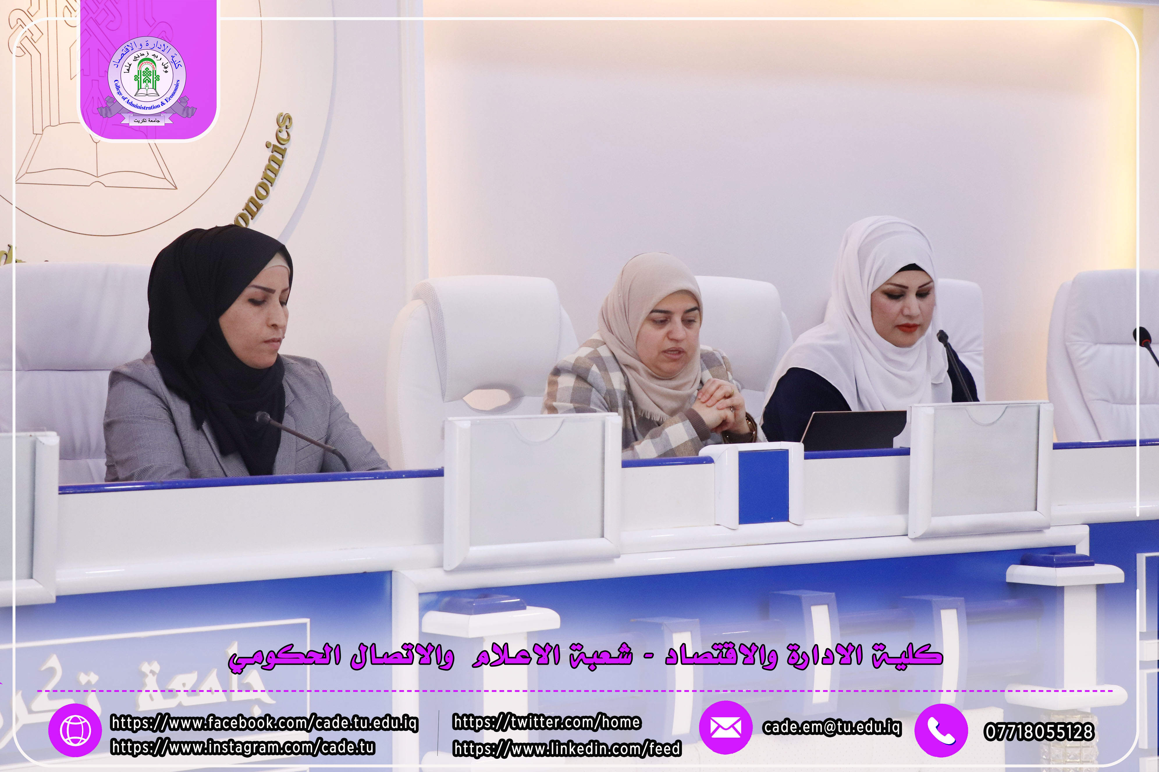 برعاية الأستاذ الدكتور وعد محمود رؤوف، رئيس جامعة تكريت، وبإشراف الأستاذ المساعد الدكتور فؤاد فرحان حسين عميد الكلية، نظّمت كلية الإدارة والاقتصاد / وحدة شؤون المرأة ضمن الخطة التنفيذية للاستراتيجية الوطنية للمرأة العراقية لعام (2026)، ندوة علمية حضورية بعنوان ( معوّقات تمويل المشاريع الصغيرة ودخول المرأة إلى سوق العمل في العراق)، وذلك يوم الخميس الموافق 2025/02/05، على قاعة الدكتور محمد بدع.